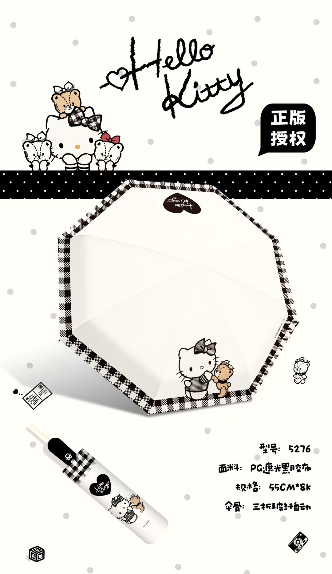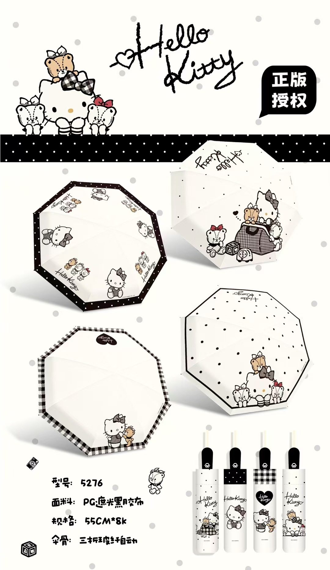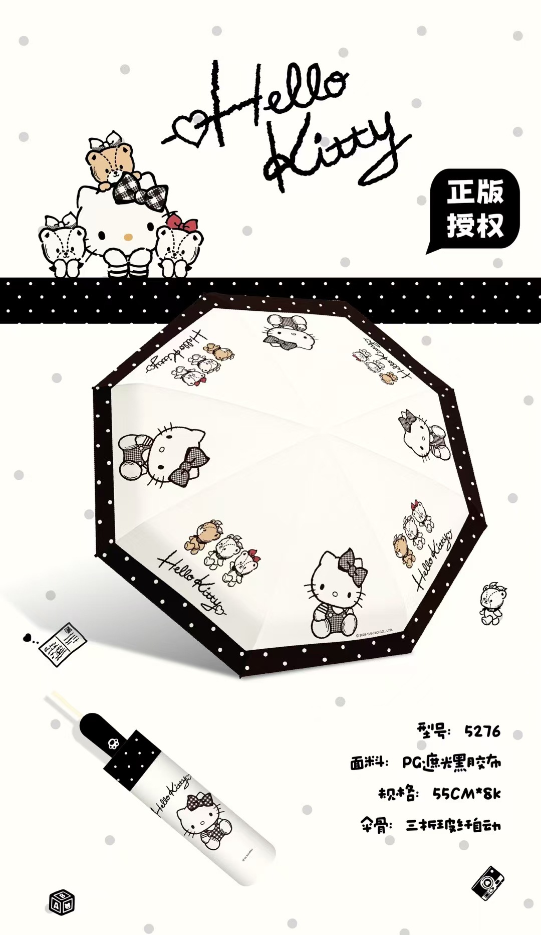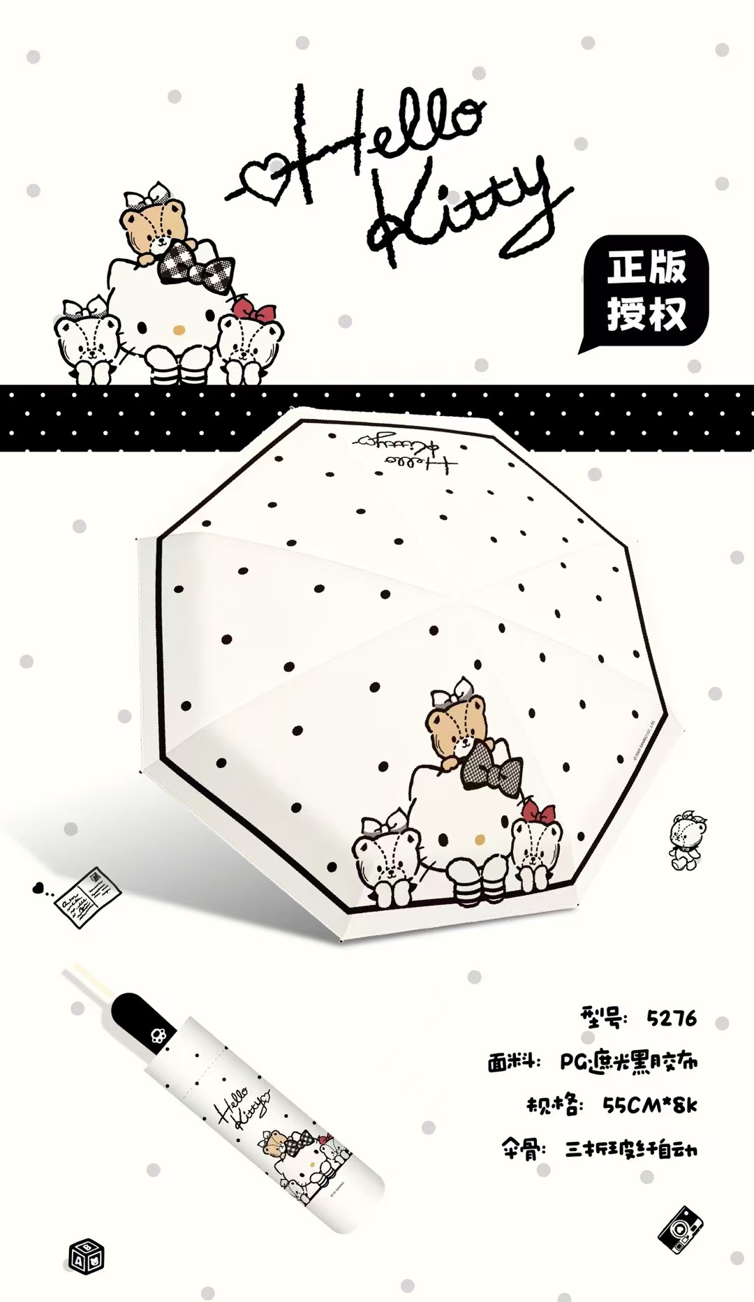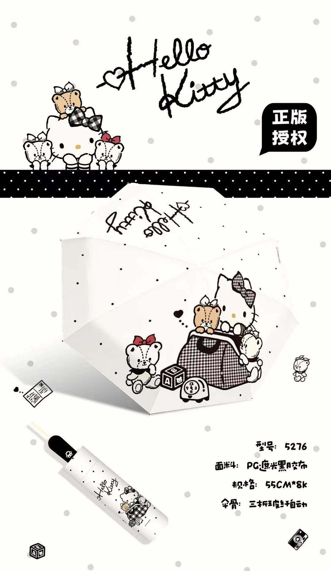 Sanrio 정품 헬로 키티 햅번 흑백 자동 우산 귀여운 만화 여름 태양 보호 우산스토어 가기