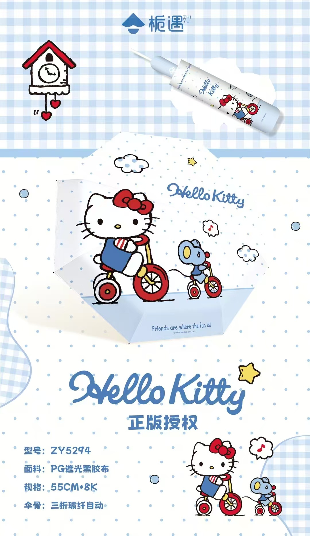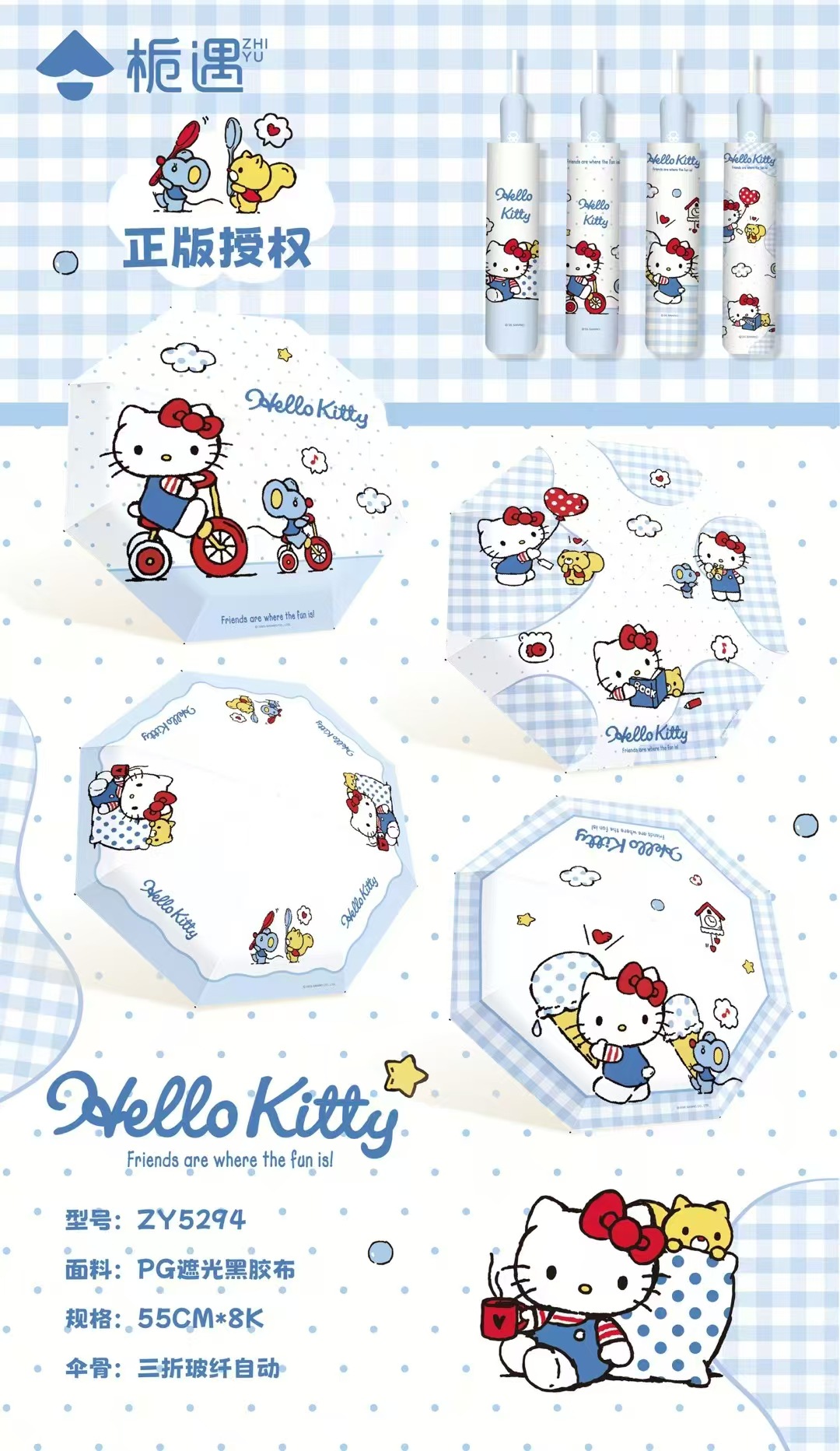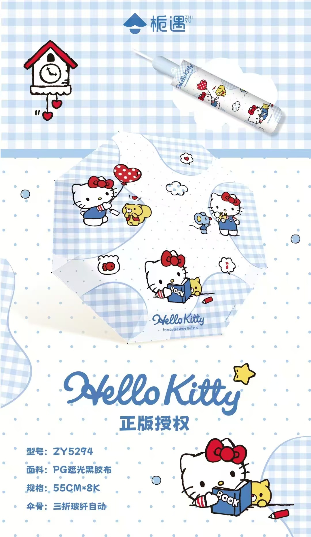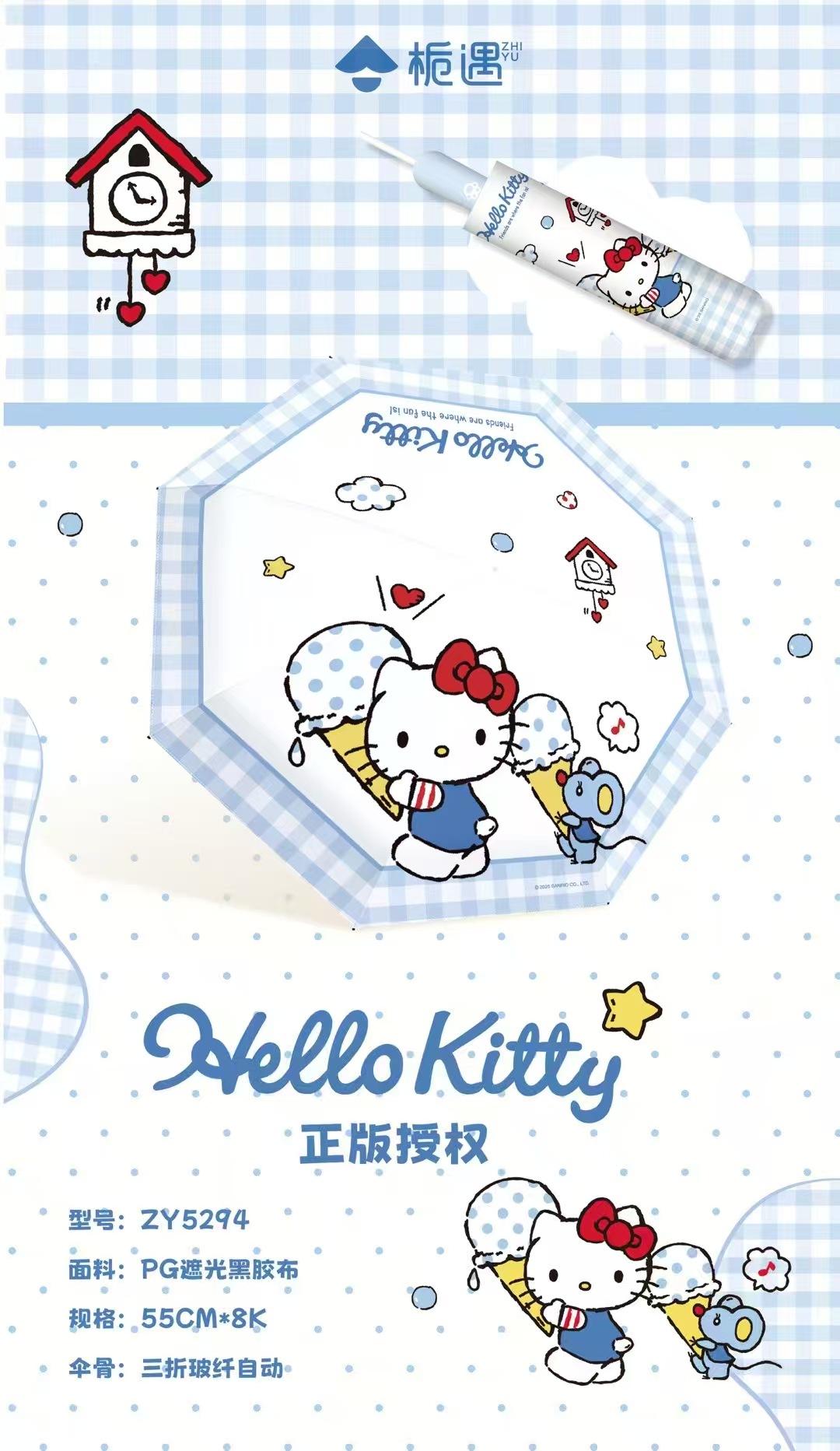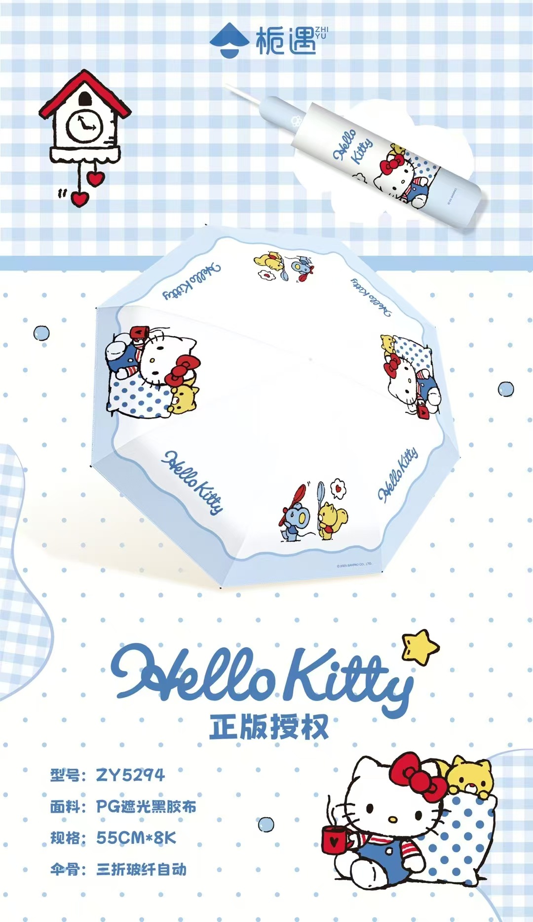 Sanrio 정품 헬로 키티 블루 자동 우산 귀여운 만화 여름 태양 보호 우산 비닐