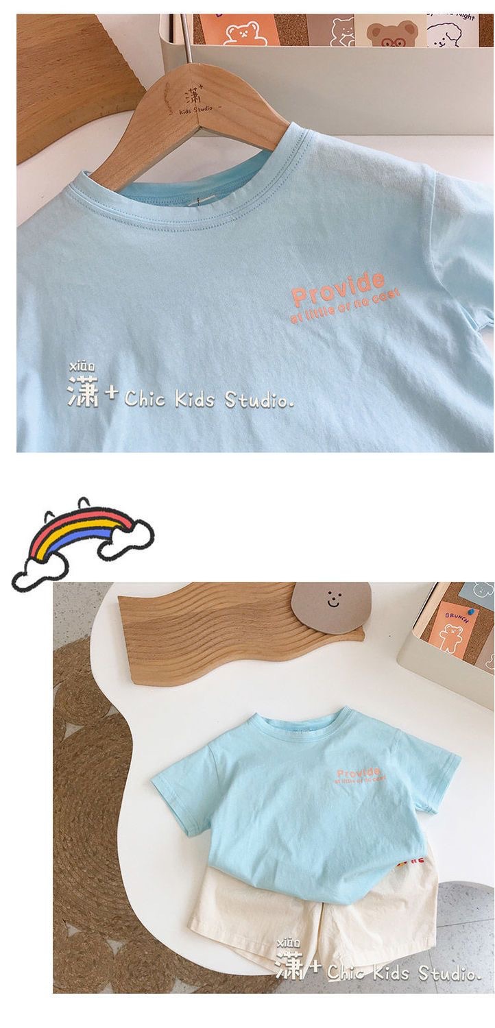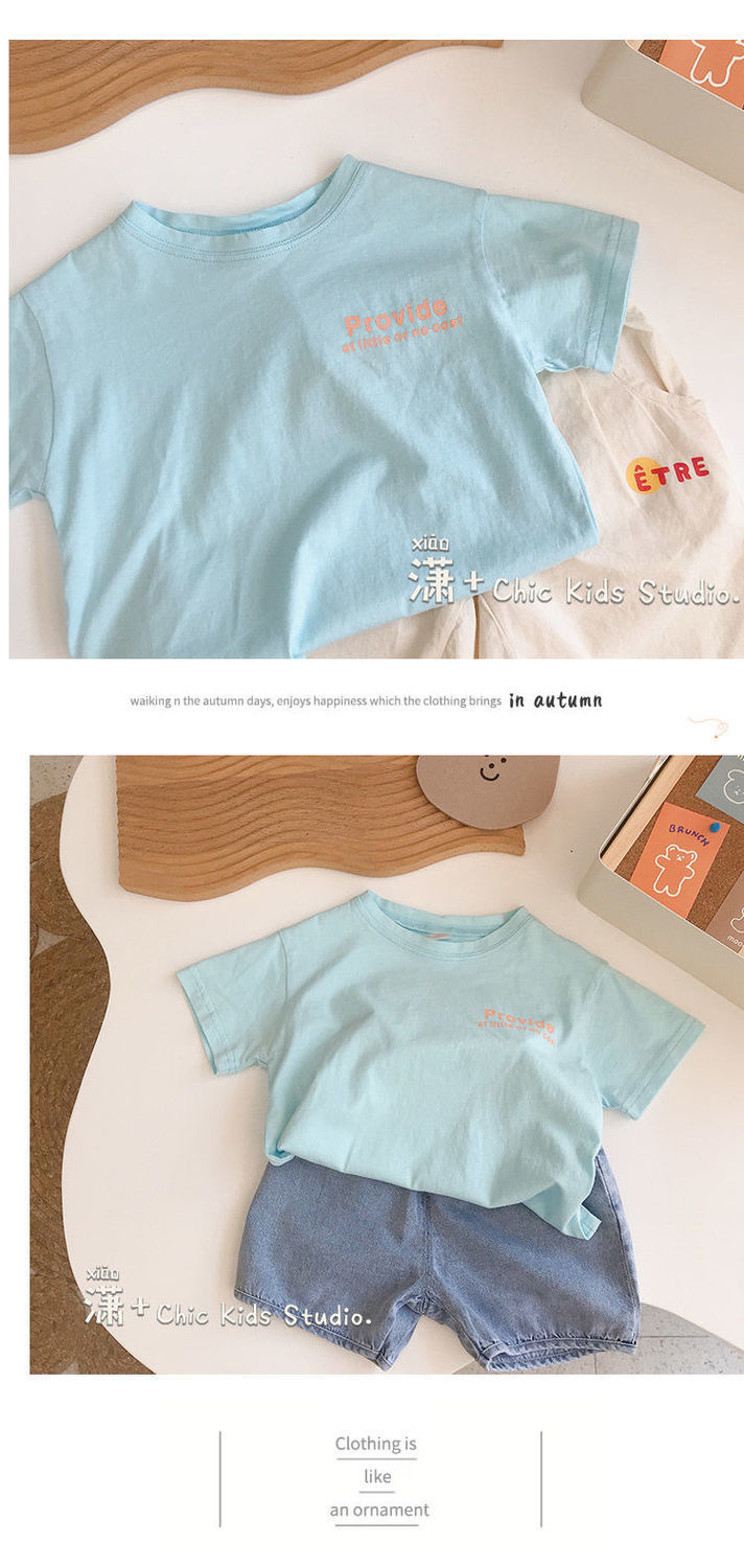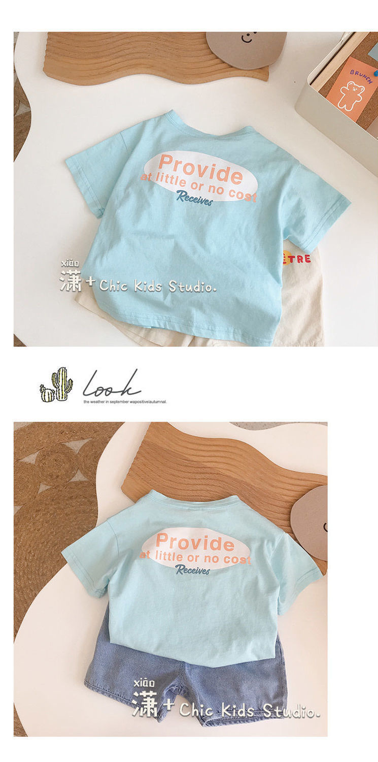 순수 코튼 여름 새 스타일 어린이 반팔 귀여운 티셔츠 소년과 소녀 베이비 라운드 넥 반팔 베이비 얇은 탑스토어 가기