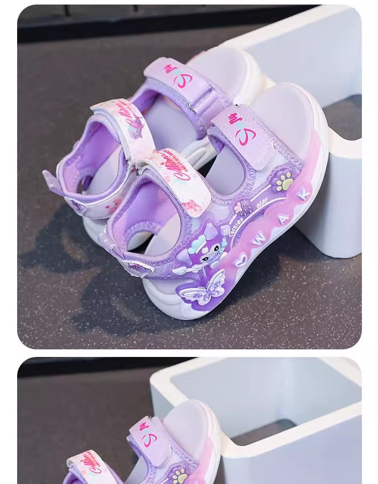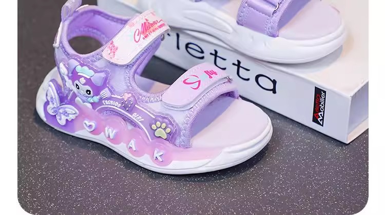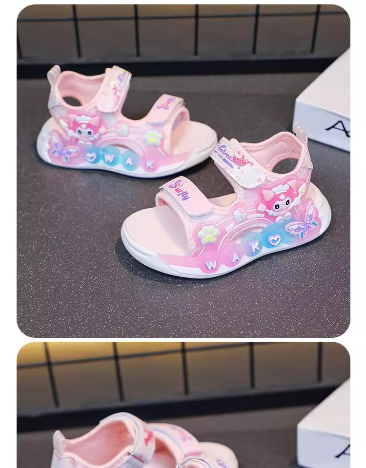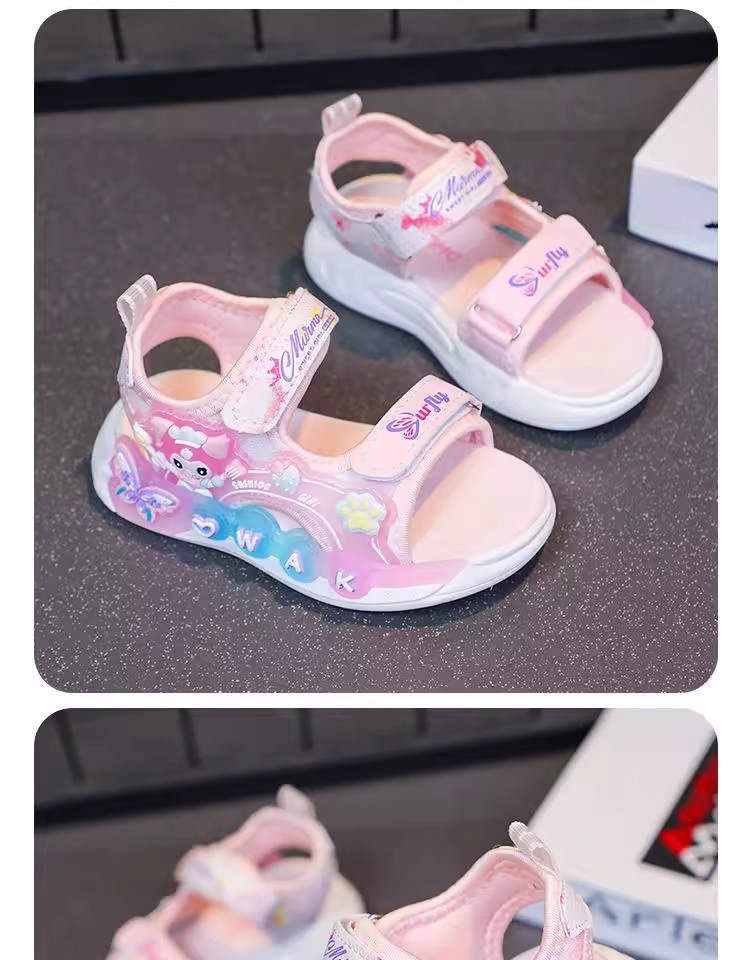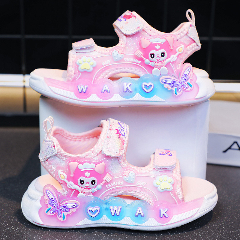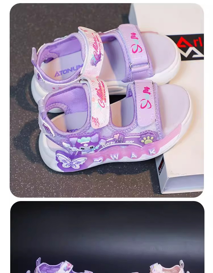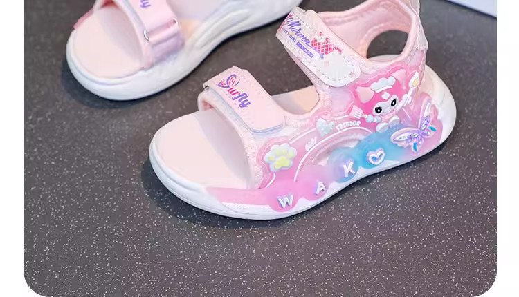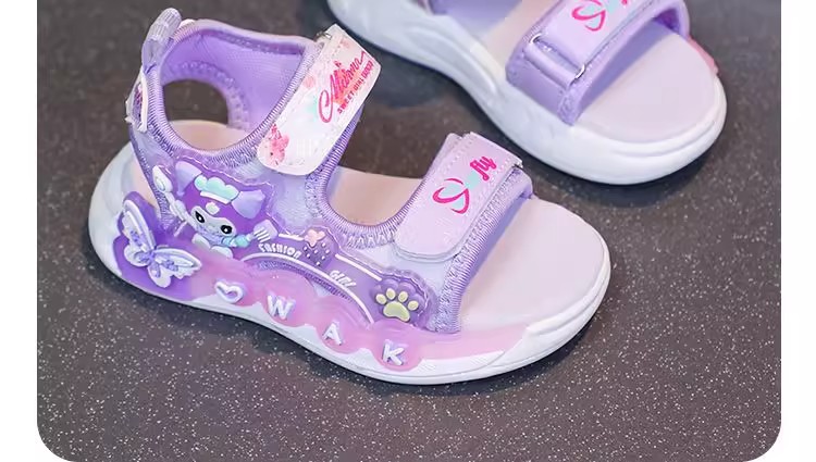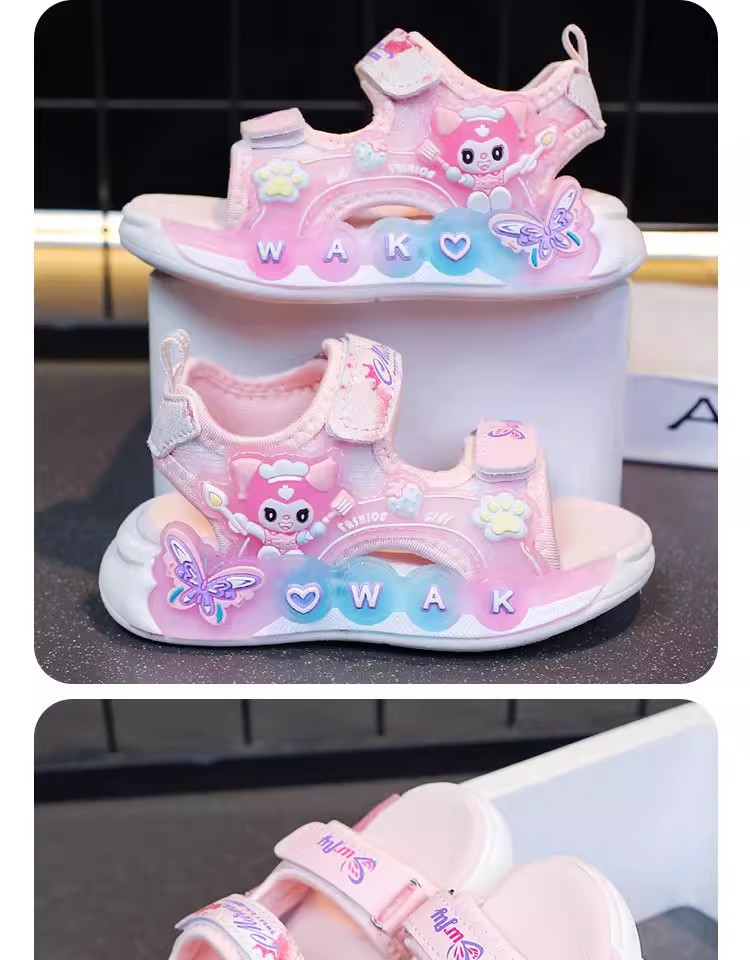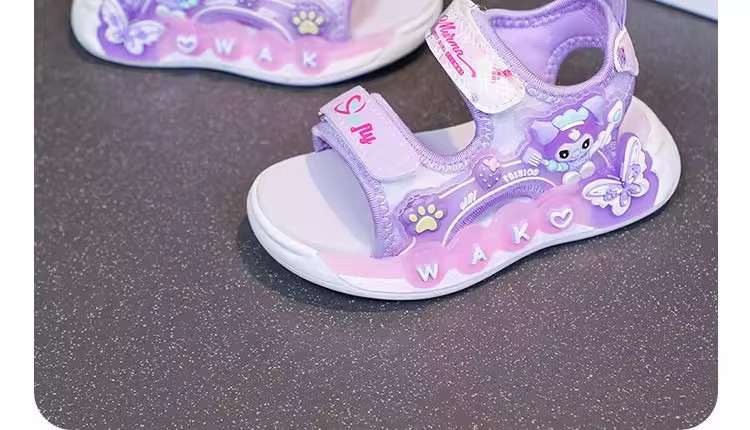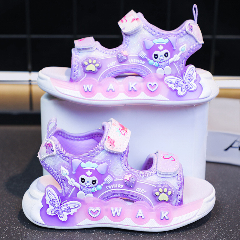 Kuromi 소녀 샌들 여름 2025 새로운 스타일 어린이 공주 신발 미끄럼 방지 어린 소녀 스포츠 비치 신발스토어 가기