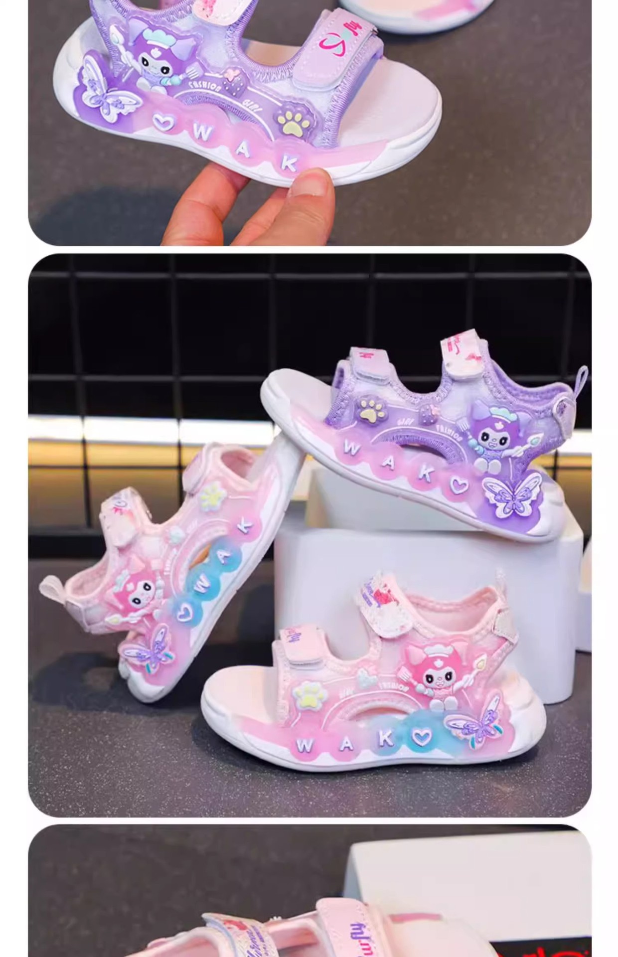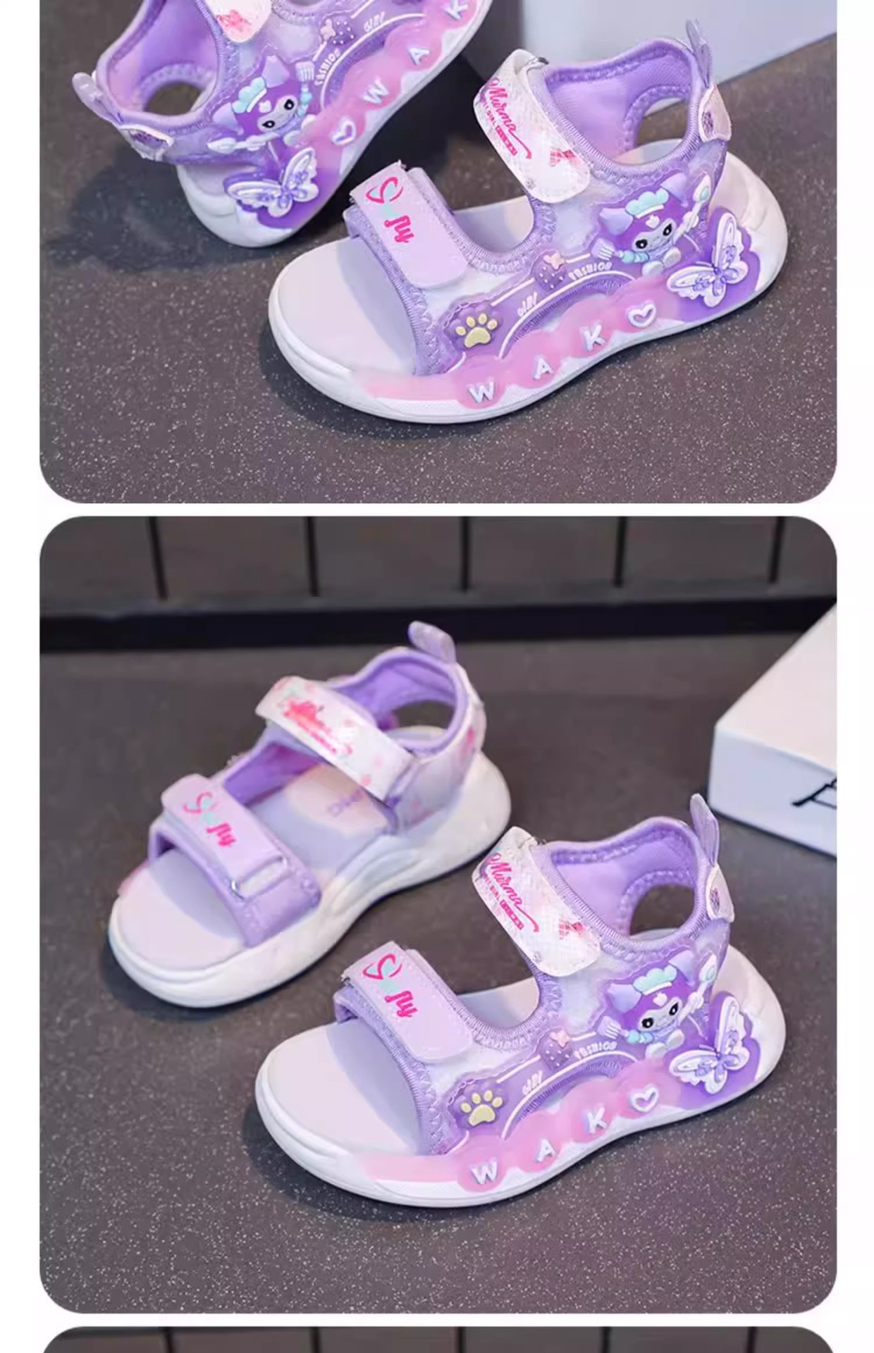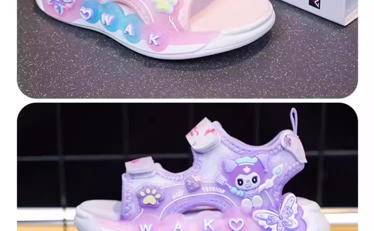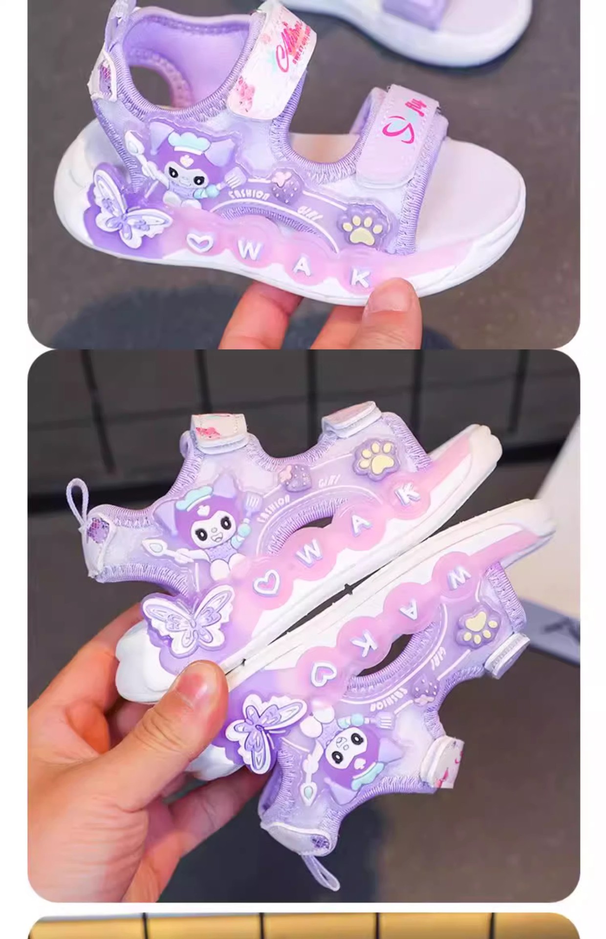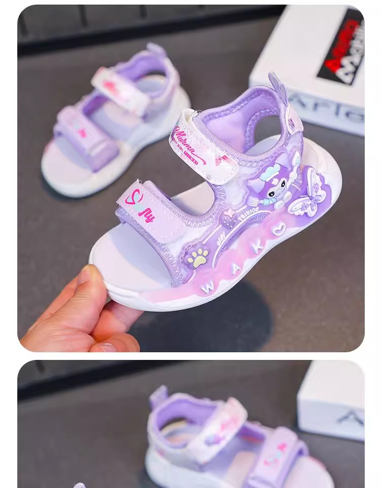 Kuromi 소녀 샌들 여름 2025 새로운 스타일 어린이 공주 신발 미끄럼 방지 어린 소녀 스포츠 비치 신발스토어 가기