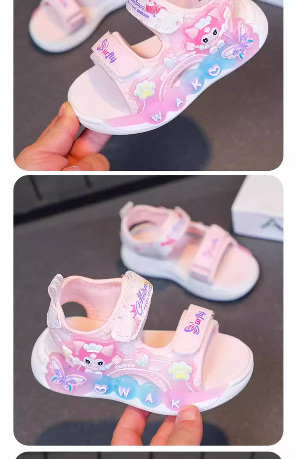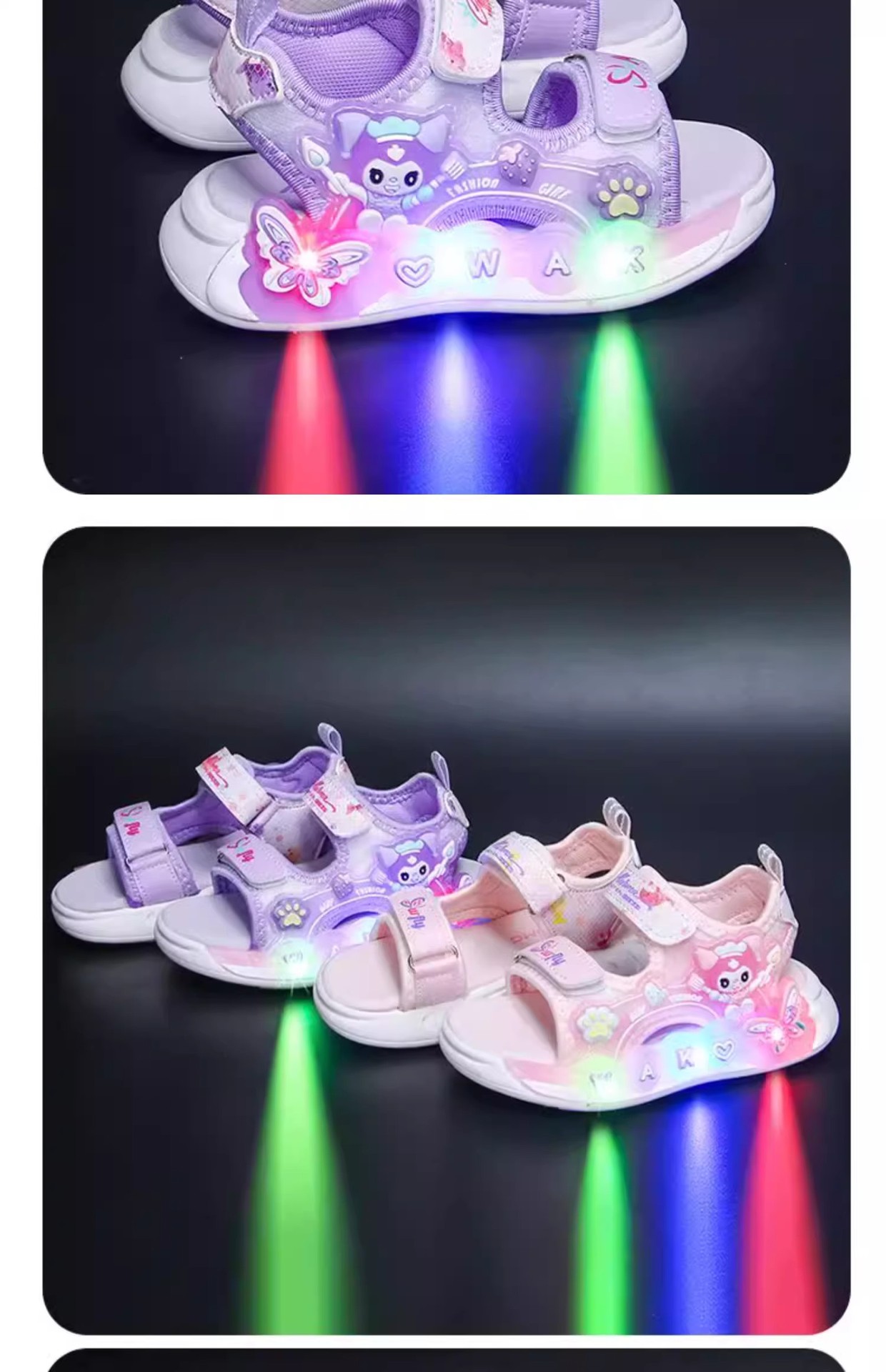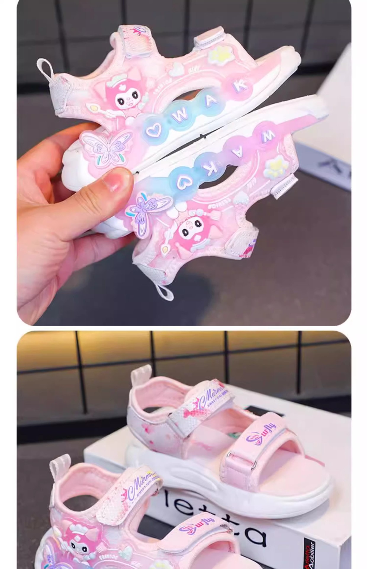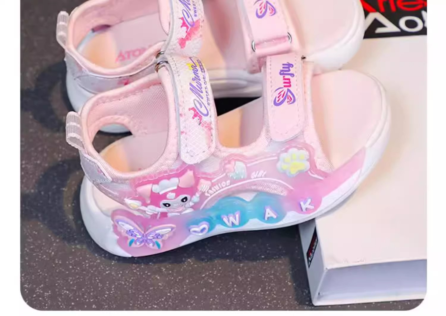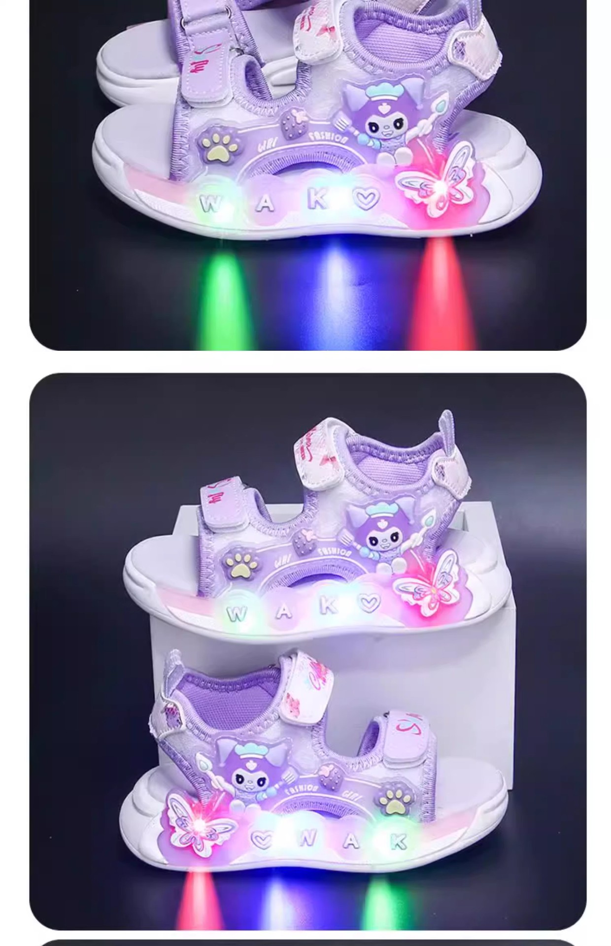 Kuromi 소녀 샌들 여름 2025 새로운 스타일 어린이 공주 신발 미끄럼 방지 어린 소녀 스포츠 비치 신발스토어 가기
