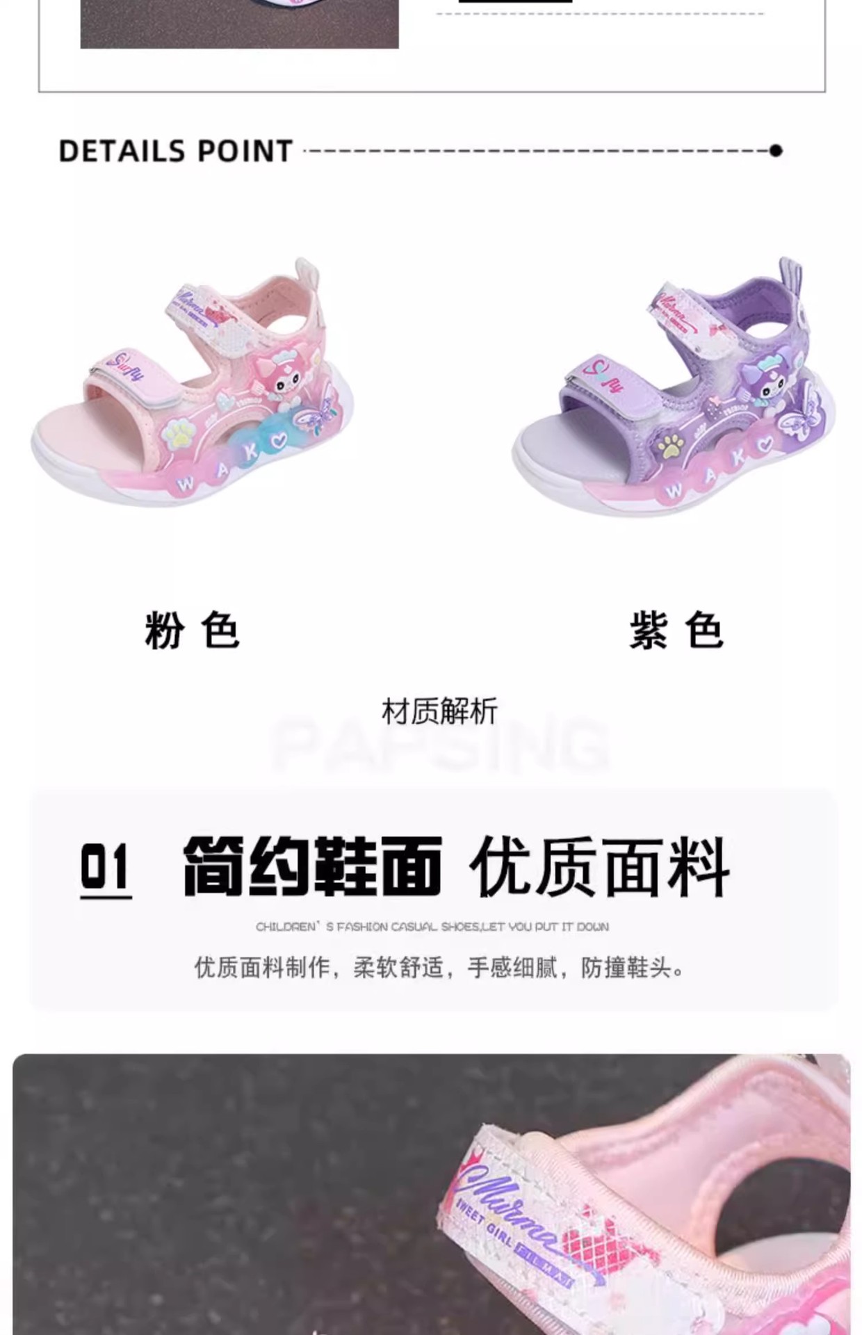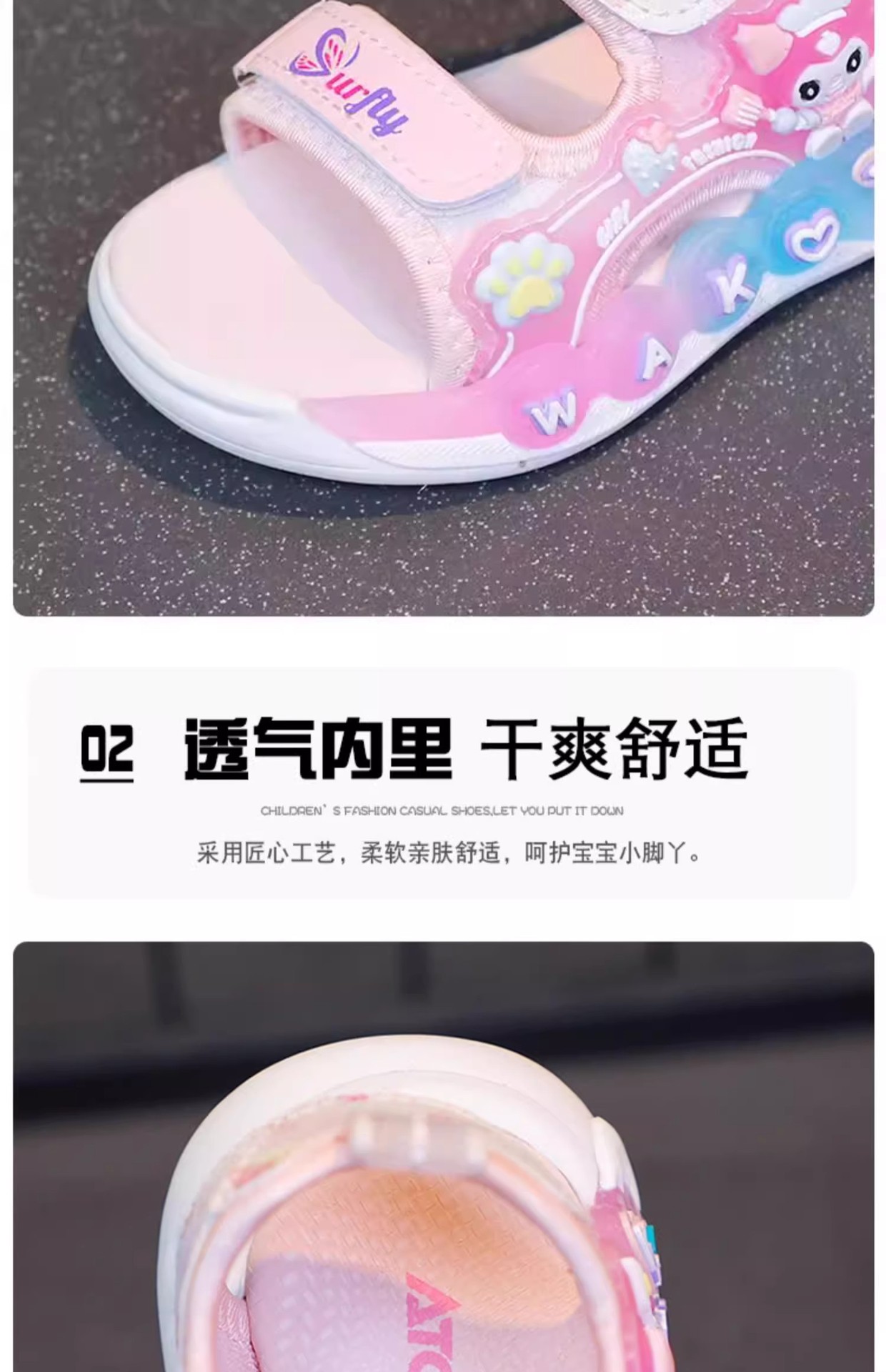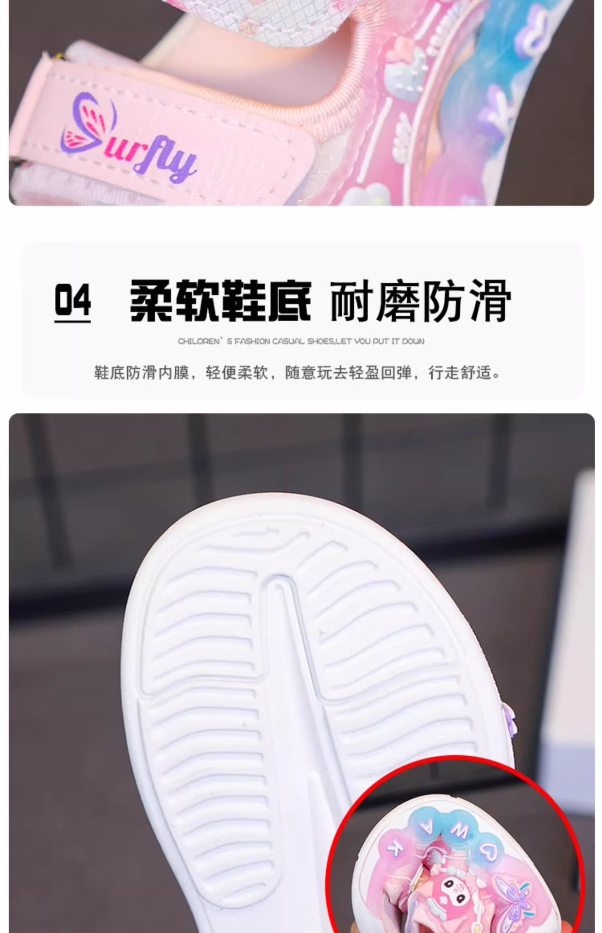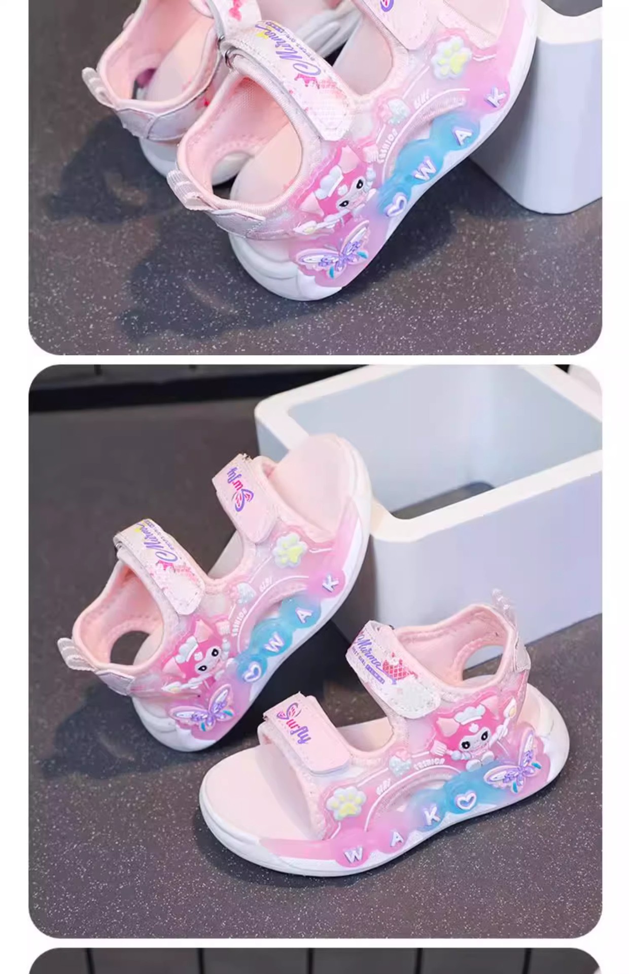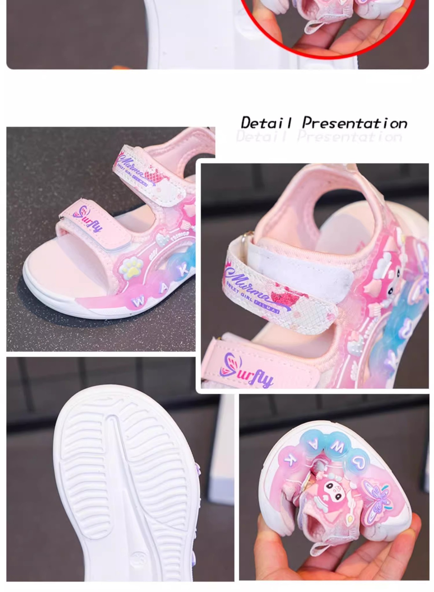 Kuromi 소녀 샌들 여름 2025 새로운 스타일 어린이 공주 신발 미끄럼 방지 어린 소녀 스포츠 비치 신발스토어 가기