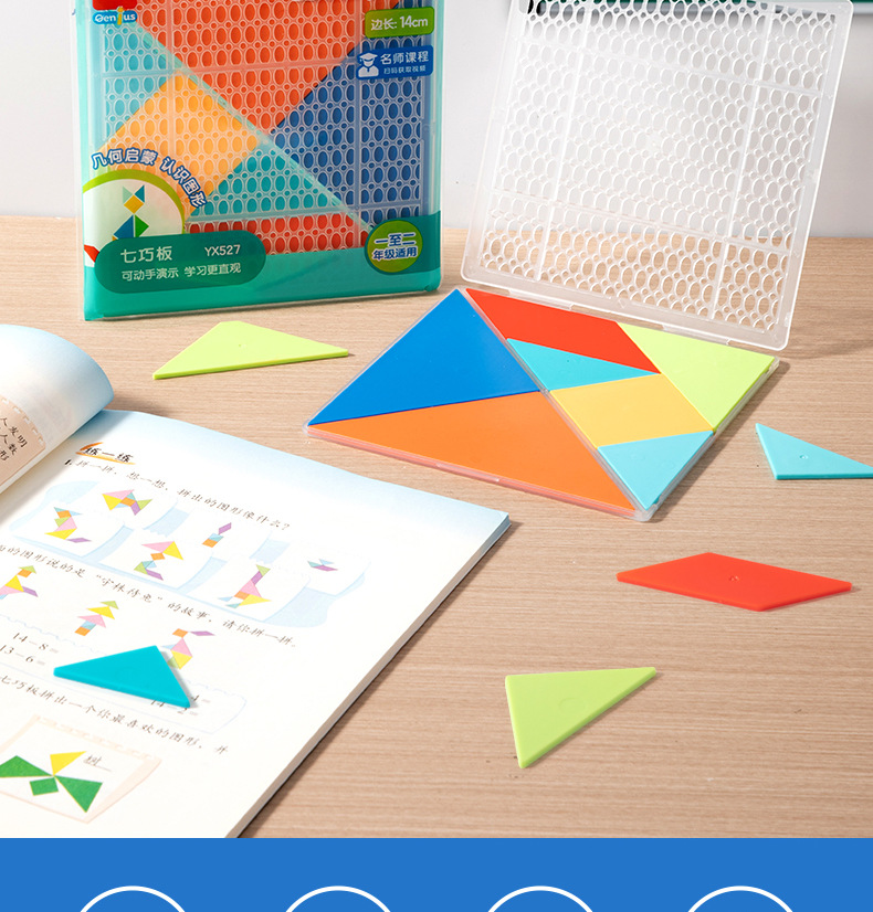 PP 보관 상자가있는 델리 tangram 1 학년 초등학생 지적 퍼즐 어린이 유치원 플라스틱 장난감스토어 가기