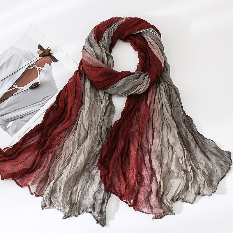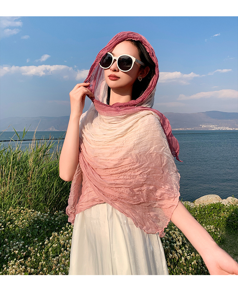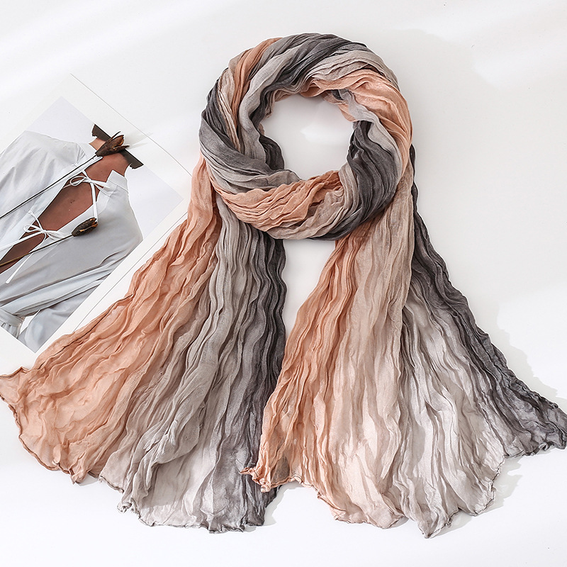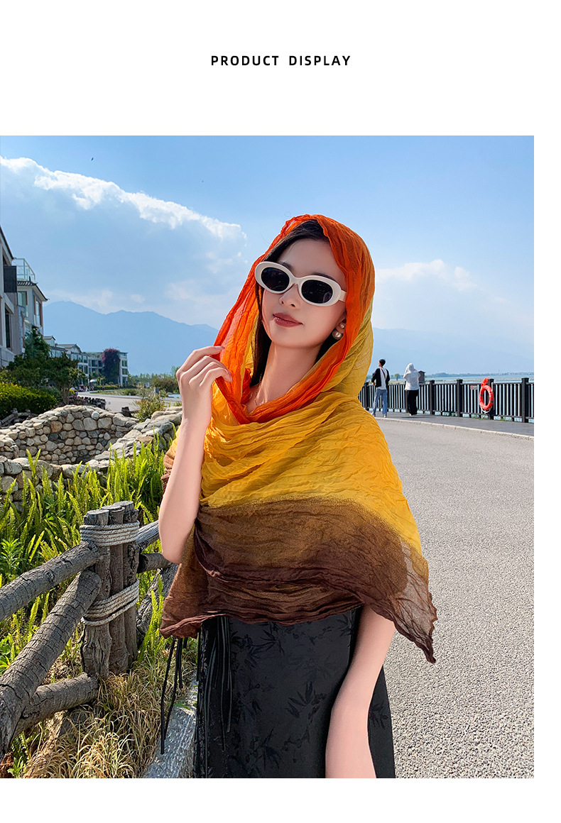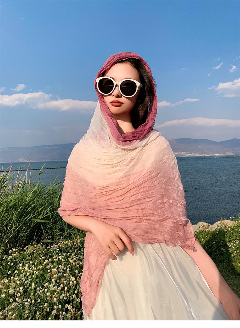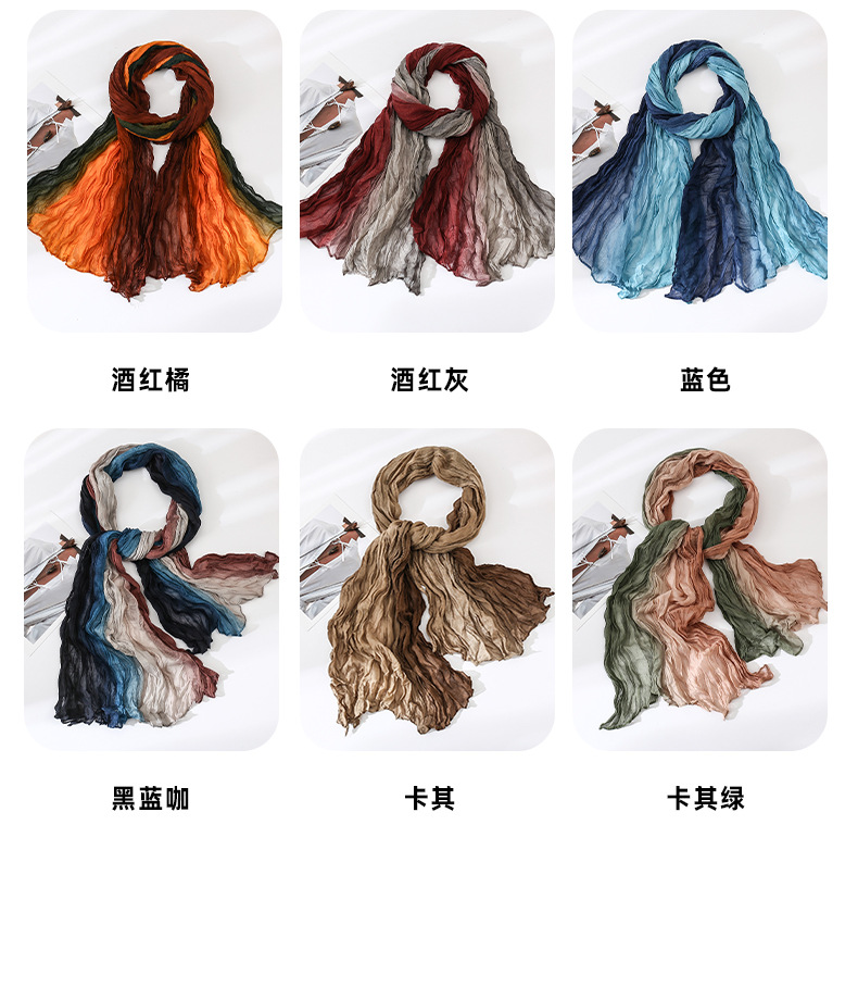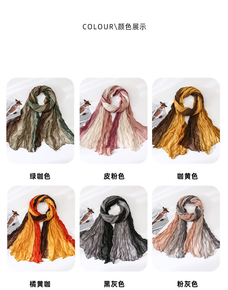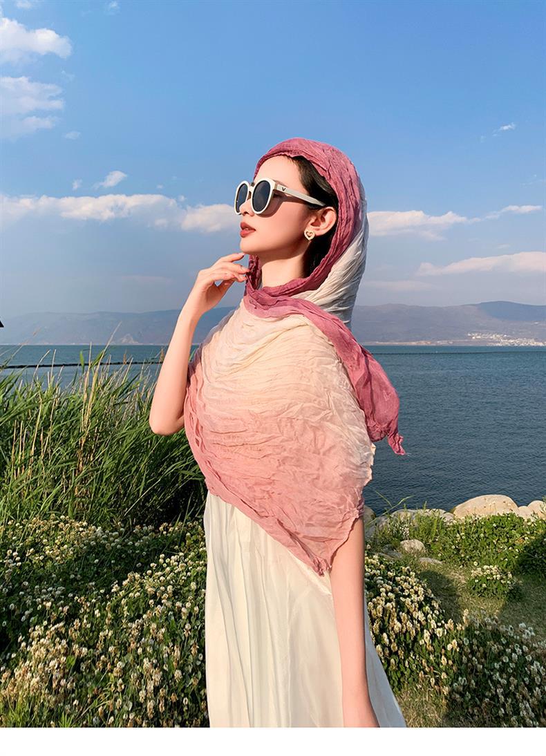 국경 간 복고풍 주름 그라데이션 컬러 스카프 얇은 거즈 스카프 여성 문학 실크 스카프 여행 목도리 사막 터번스토어 가기