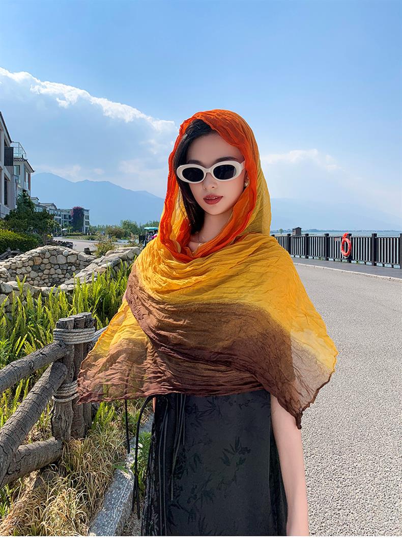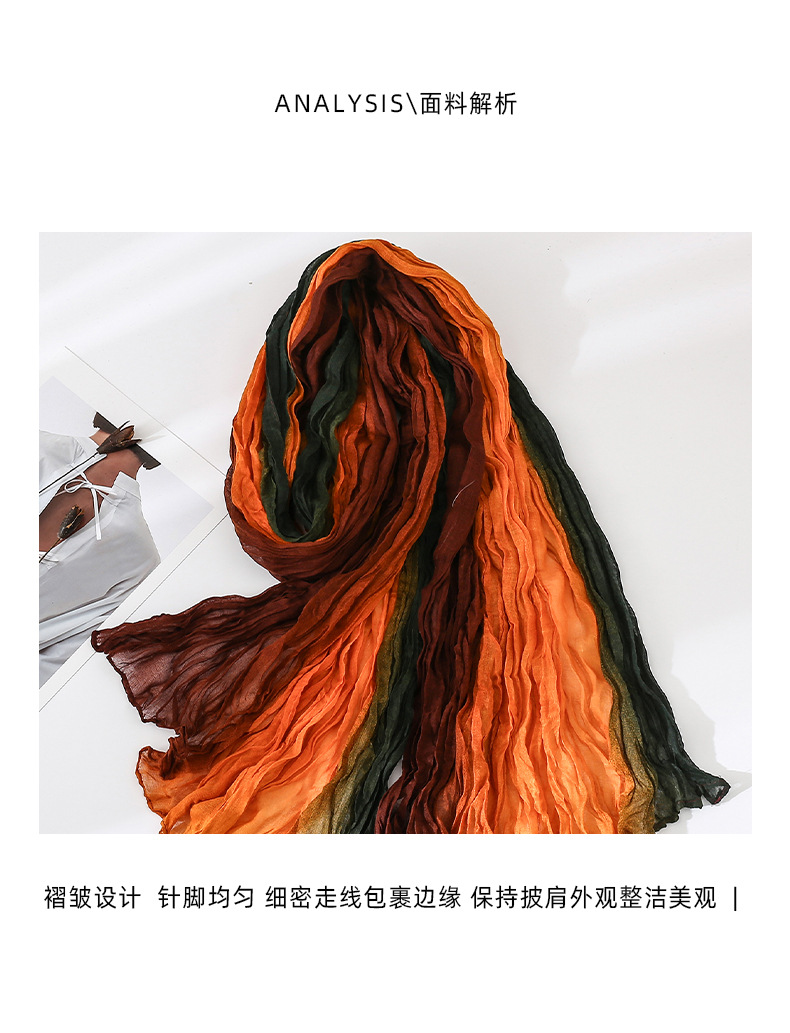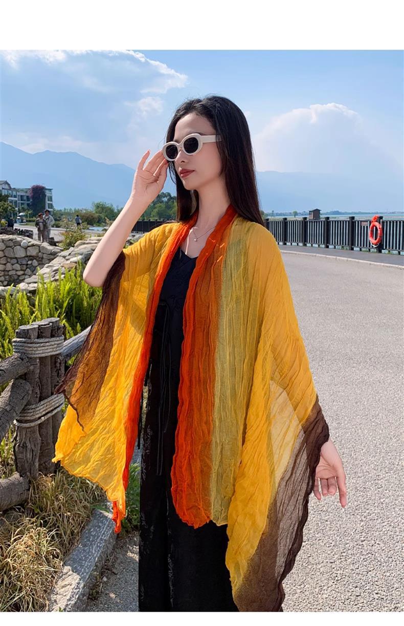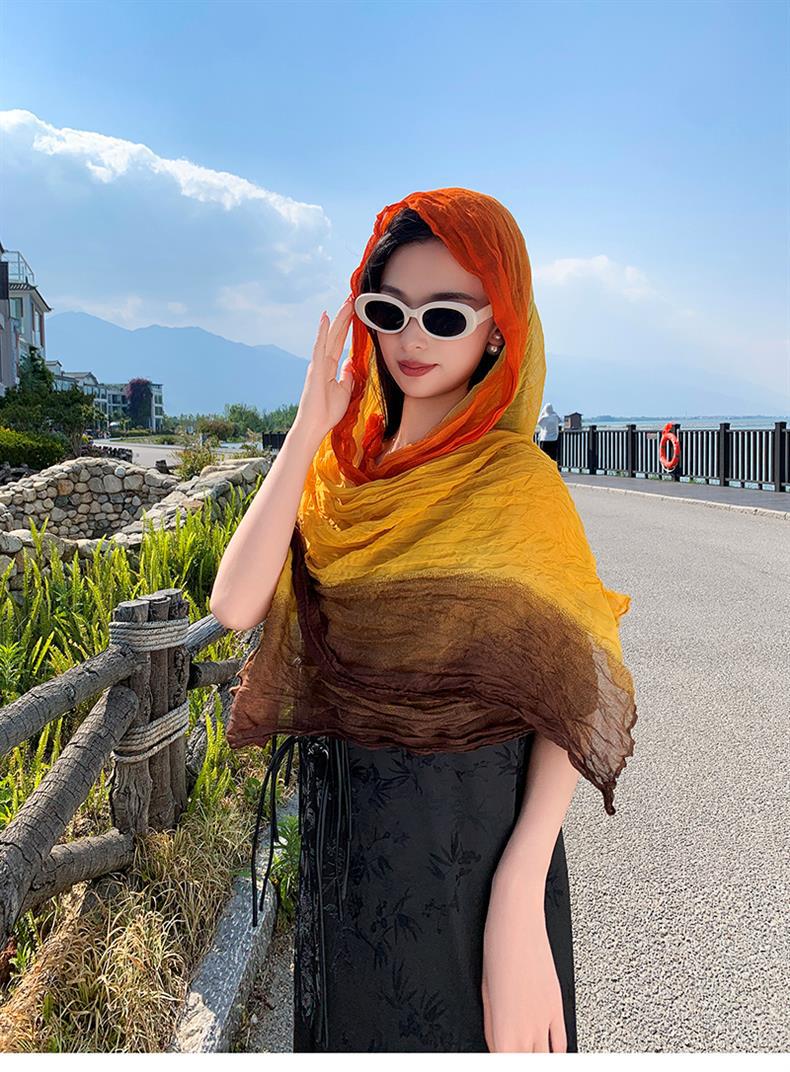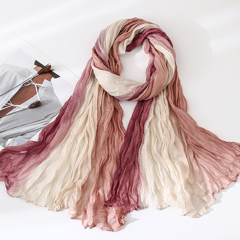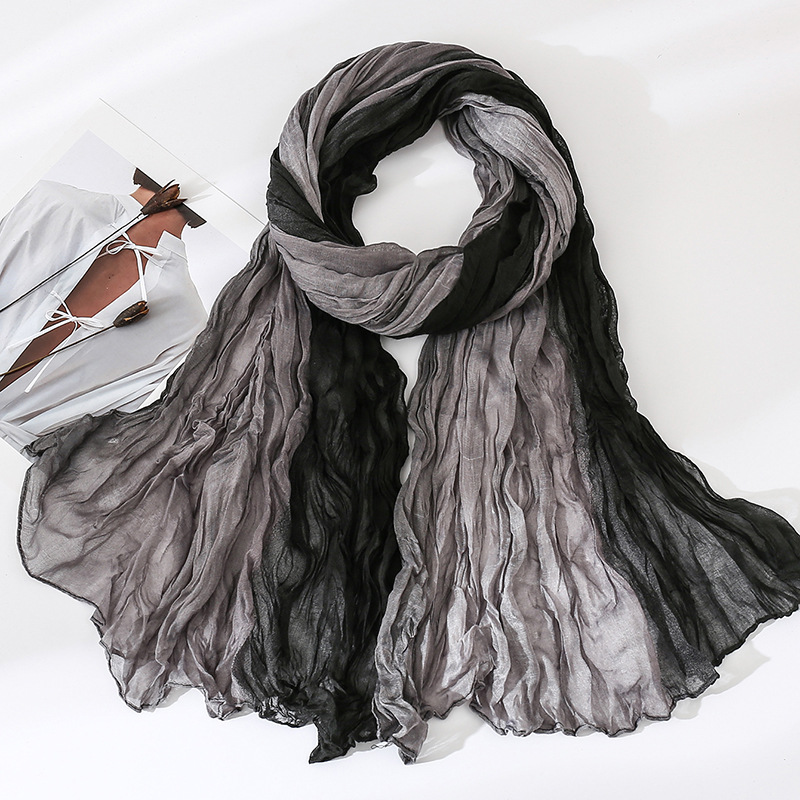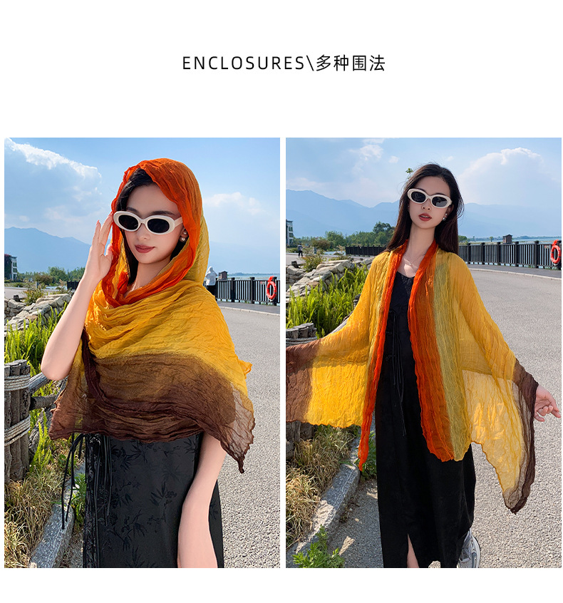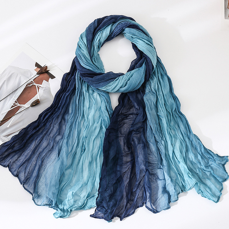 국경 간 복고풍 주름 그라데이션 컬러 스카프 얇은 거즈 스카프 여성 문학 실크 스카프 여행 목도리 사막 터번스토어 가기