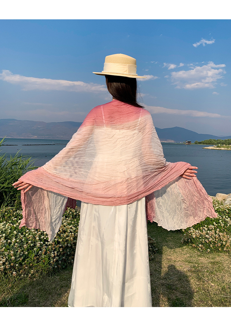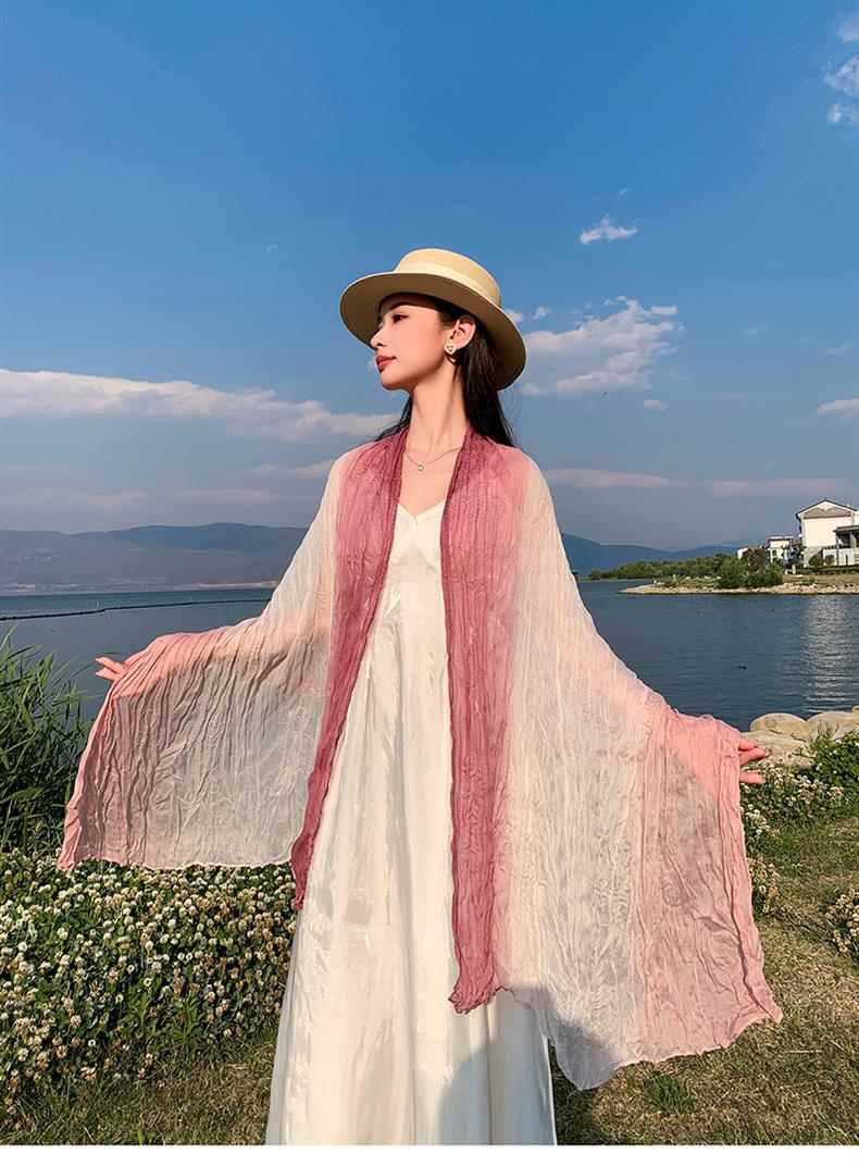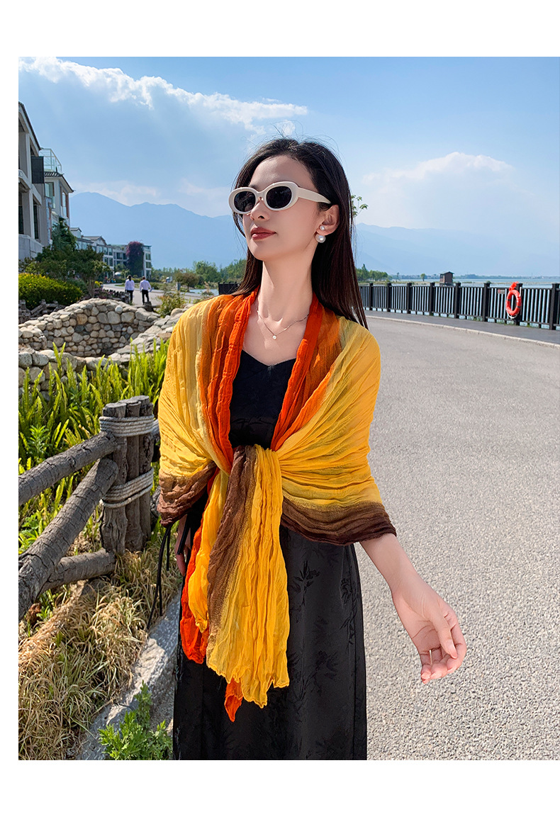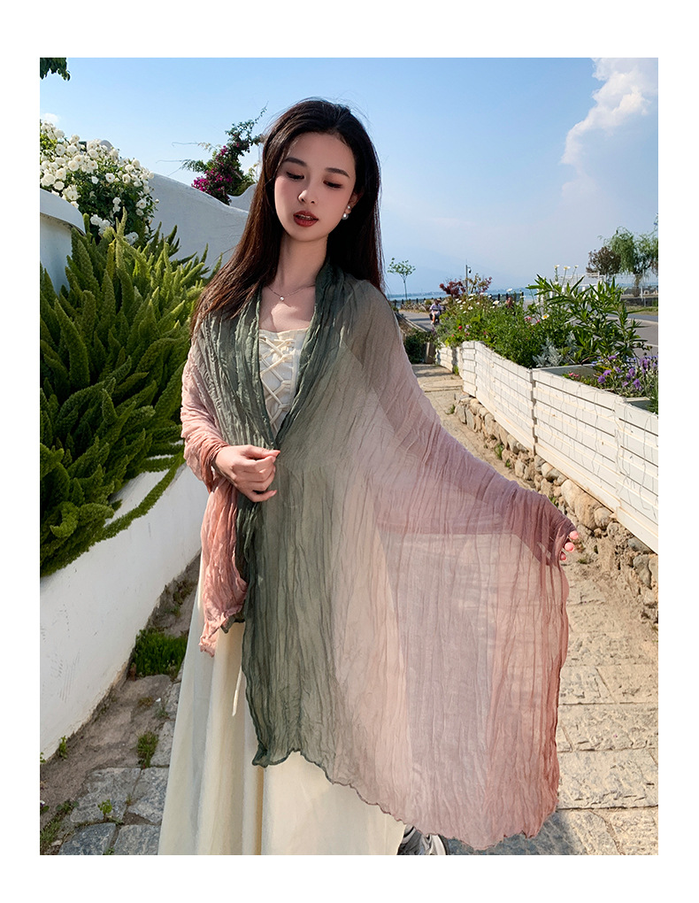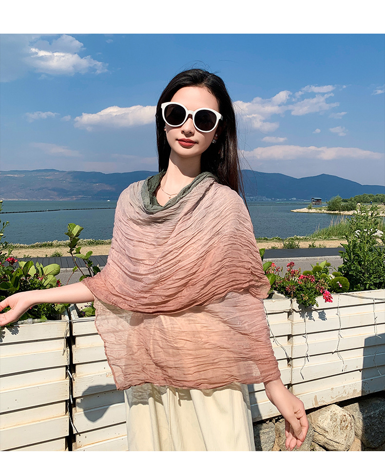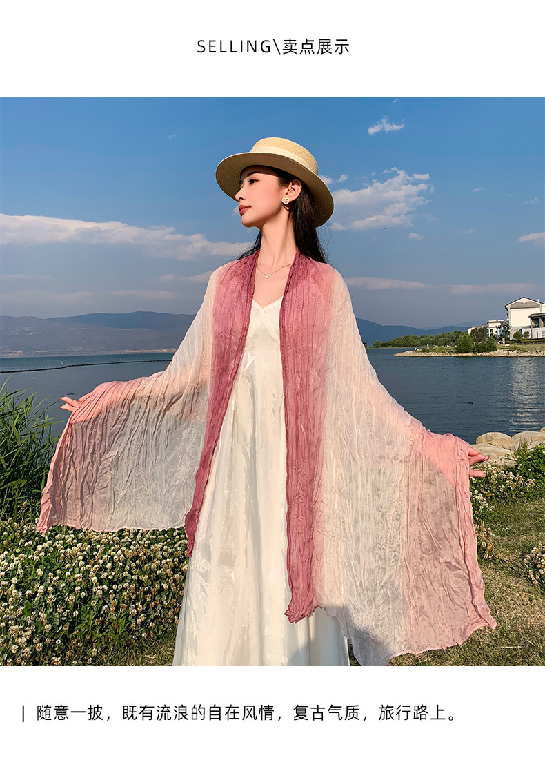 국경 간 복고풍 주름 그라데이션 컬러 스카프 얇은 거즈 스카프 여성 문학 실크 스카프 여행 목도리 사막 터번스토어 가기