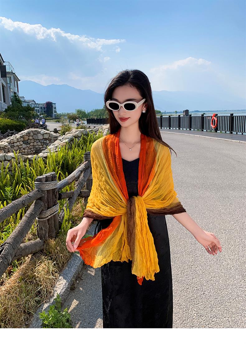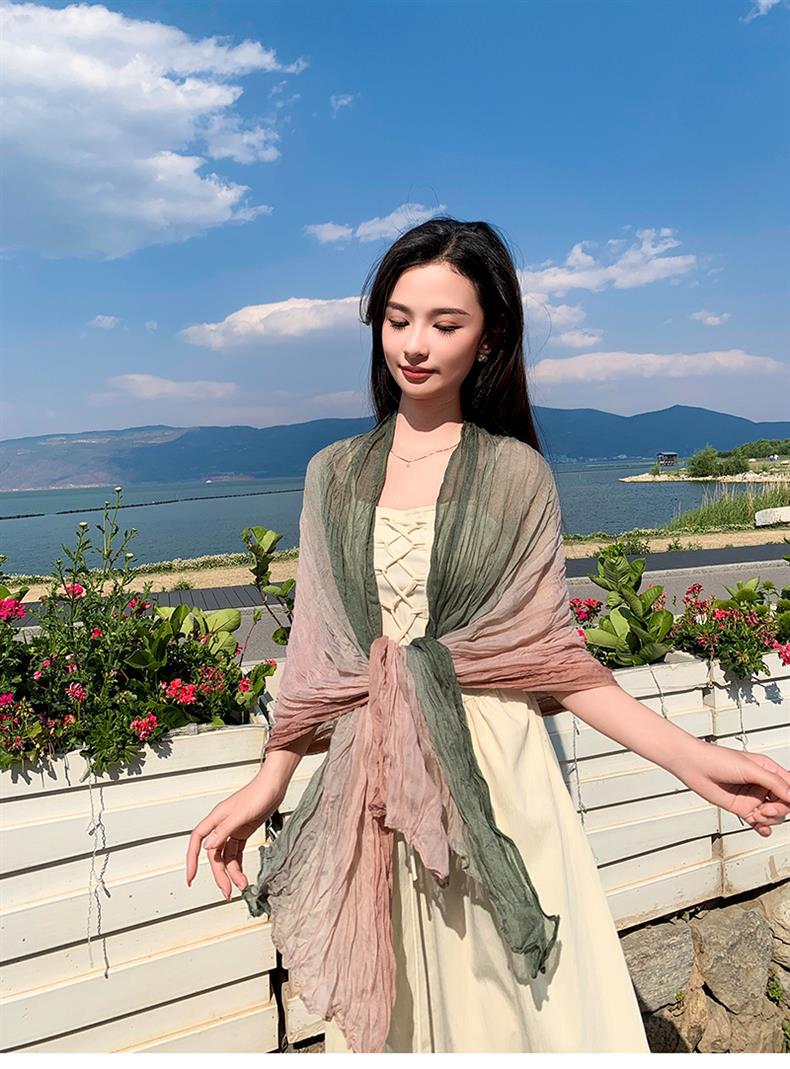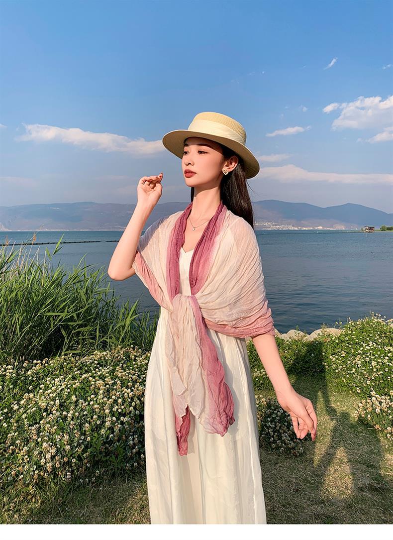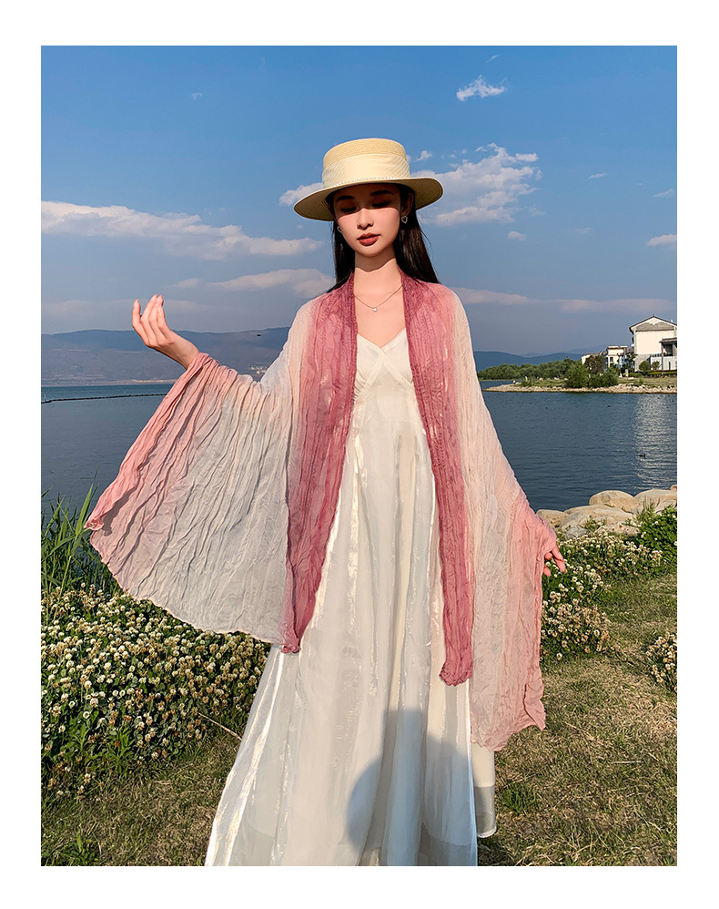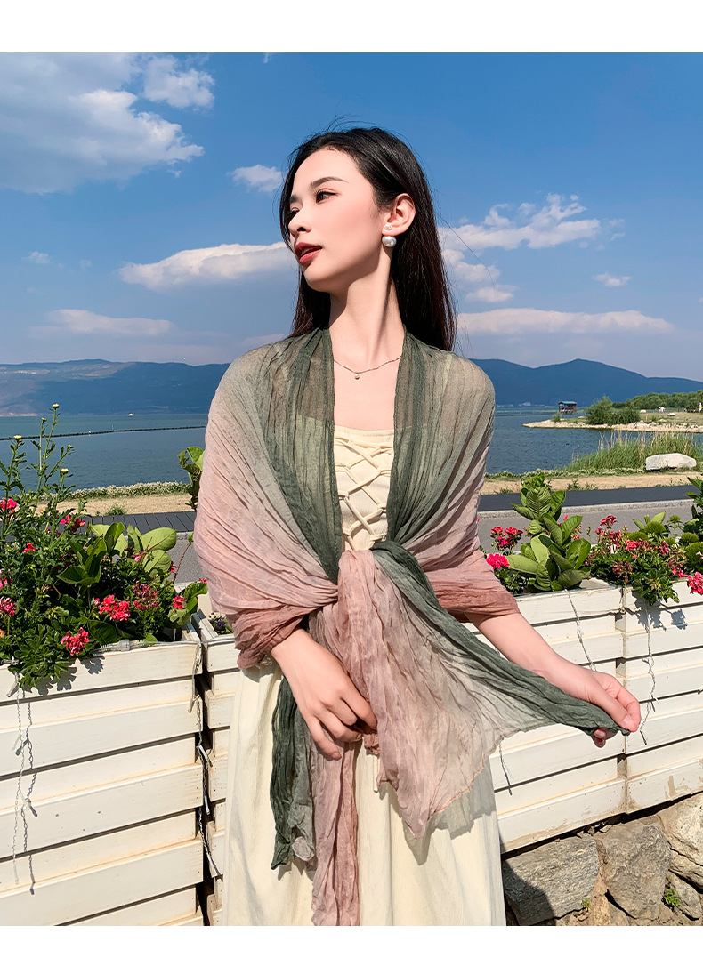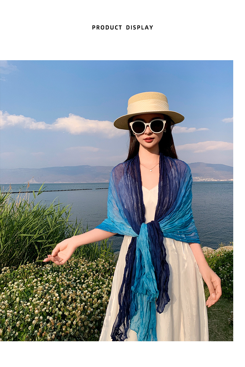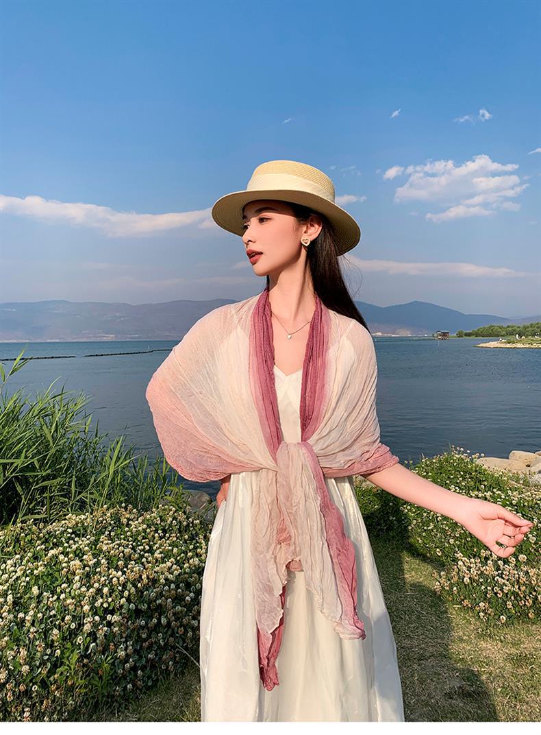 국경 간 복고풍 주름 그라데이션 컬러 스카프 얇은 거즈 스카프 여성 문학 실크 스카프 여행 목도리 사막 터번스토어 가기