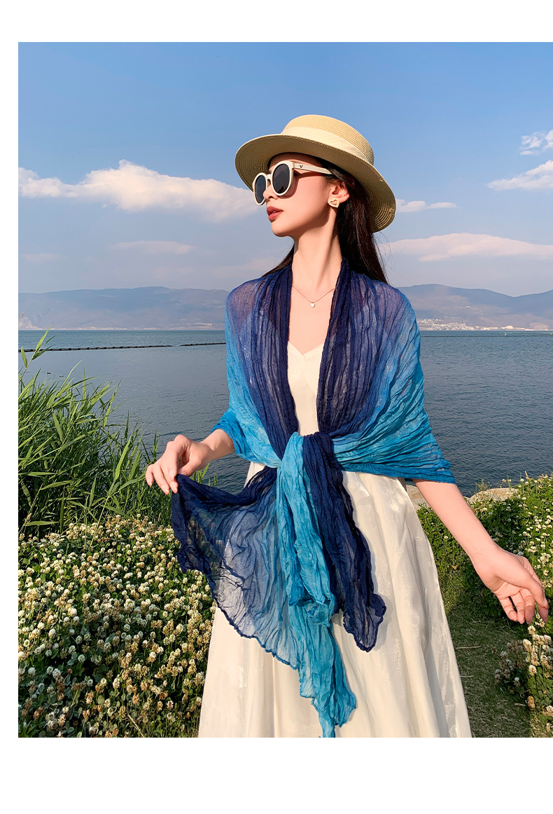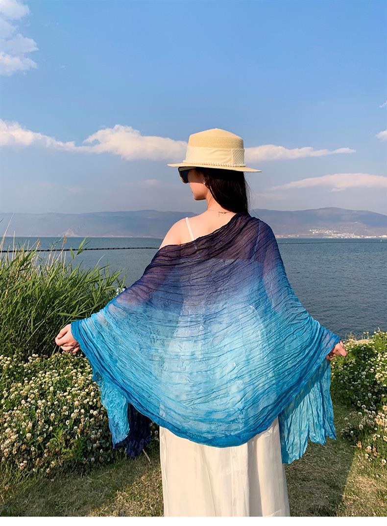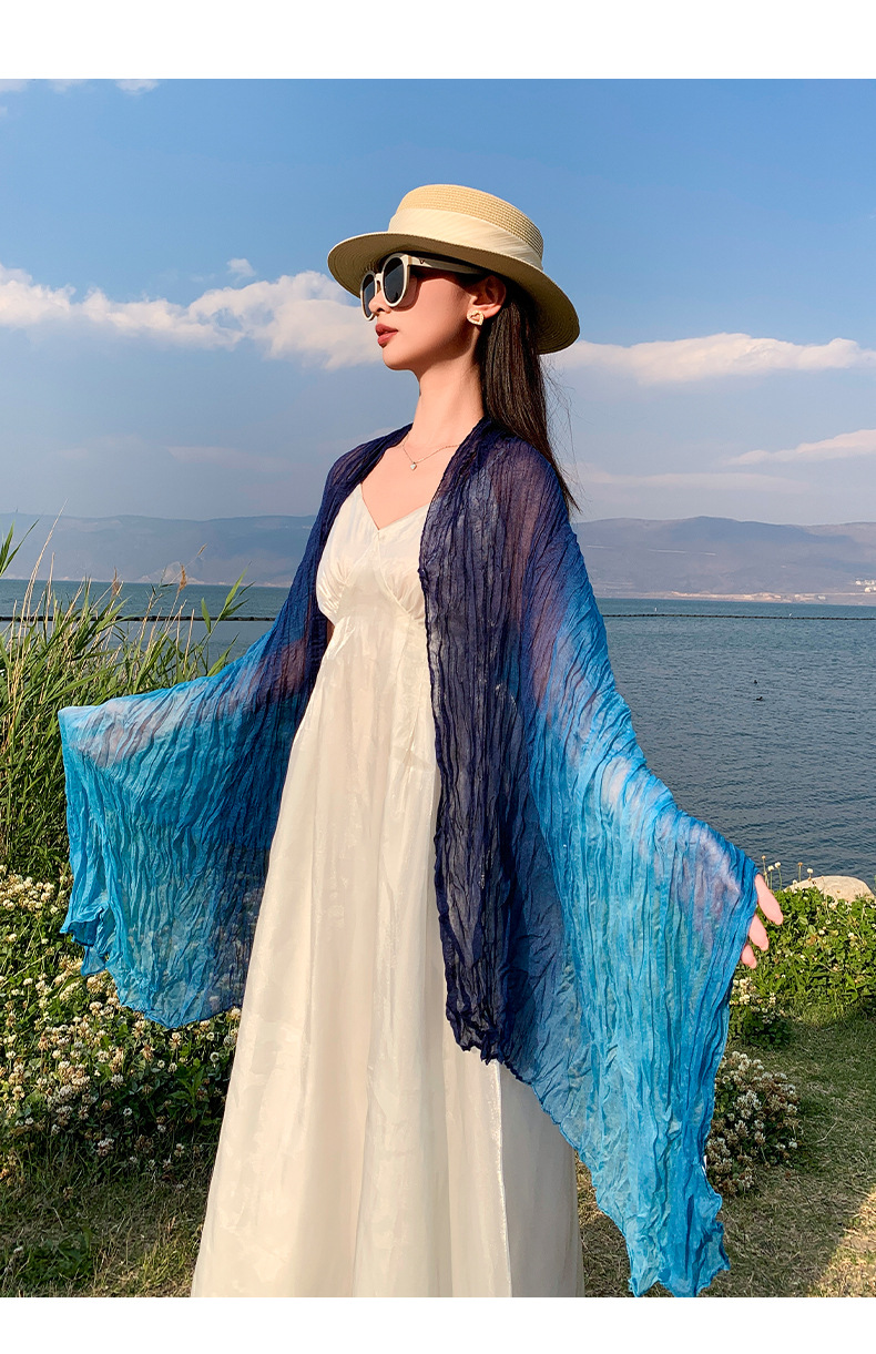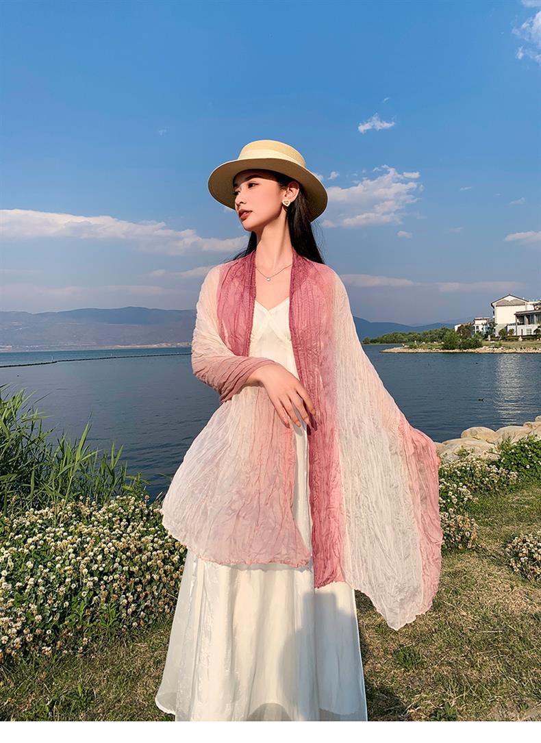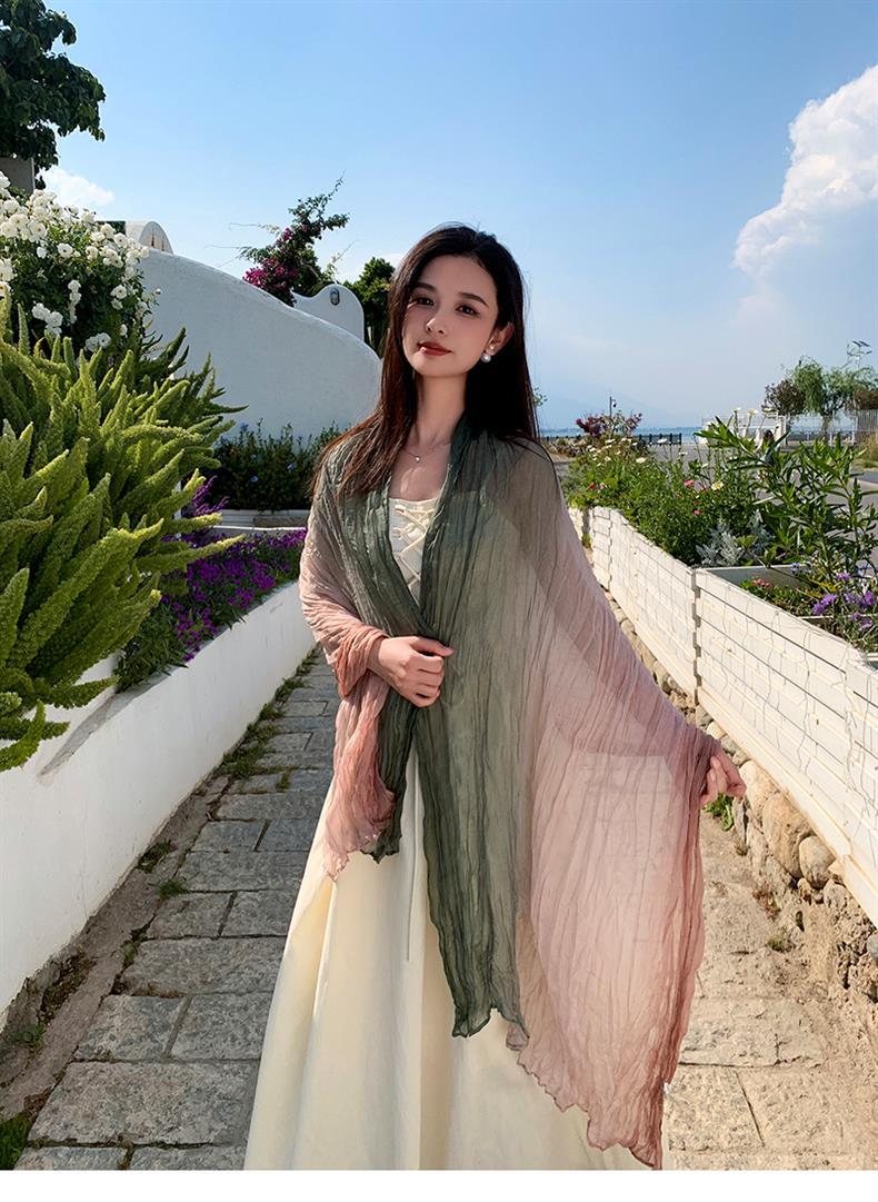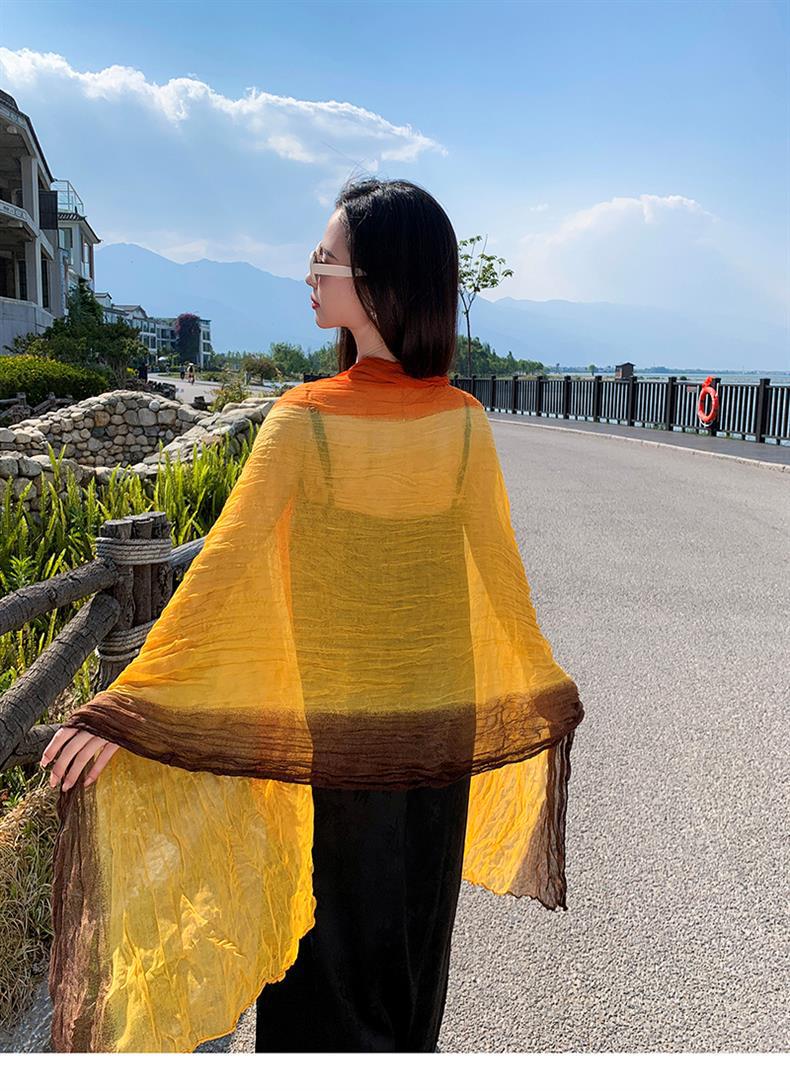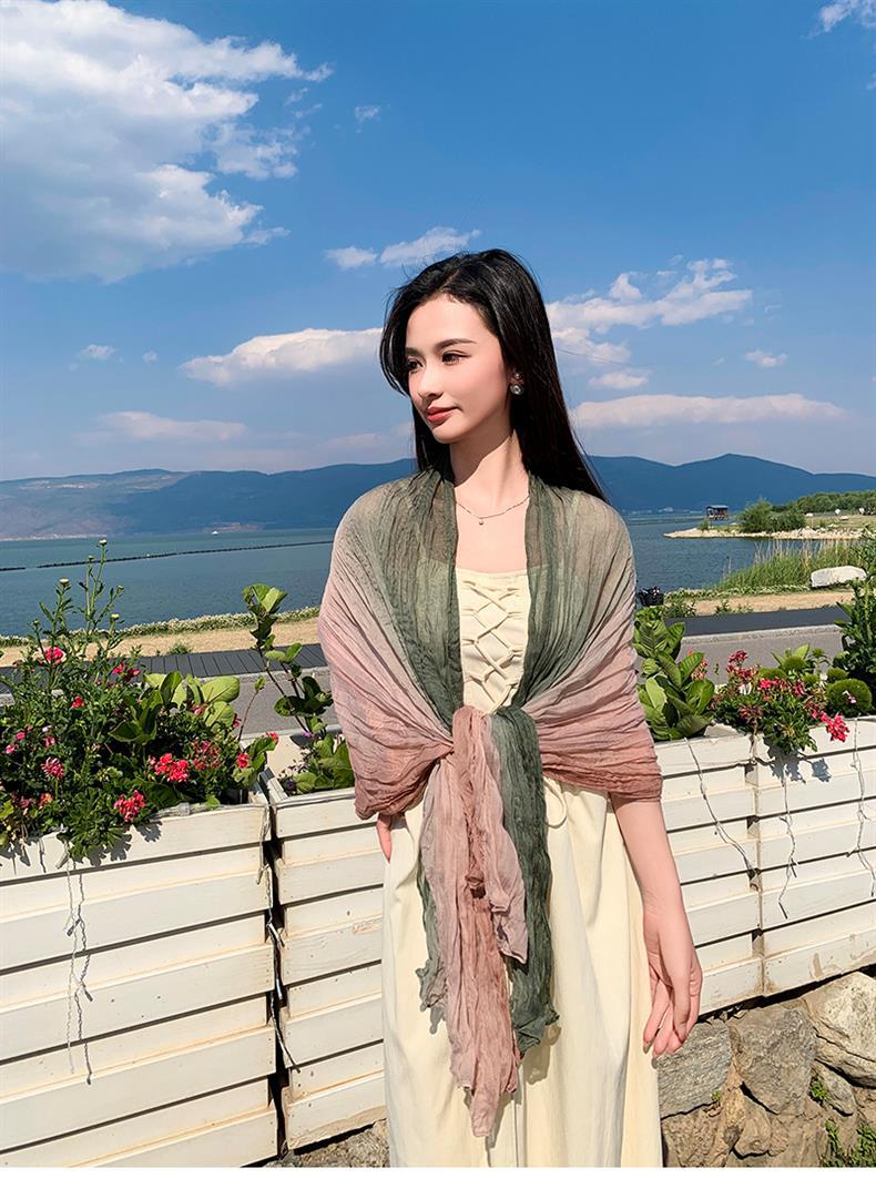 국경 간 복고풍 주름 그라데이션 컬러 스카프 얇은 거즈 스카프 여성 문학 실크 스카프 여행 목도리 사막 터번스토어 가기