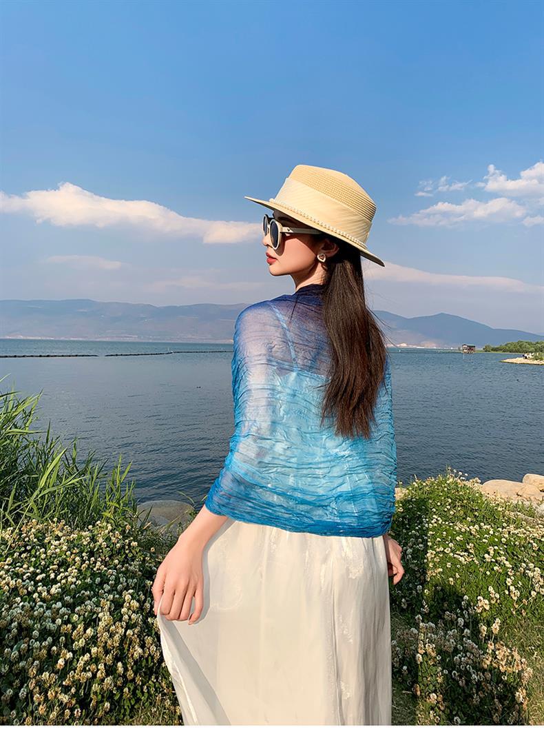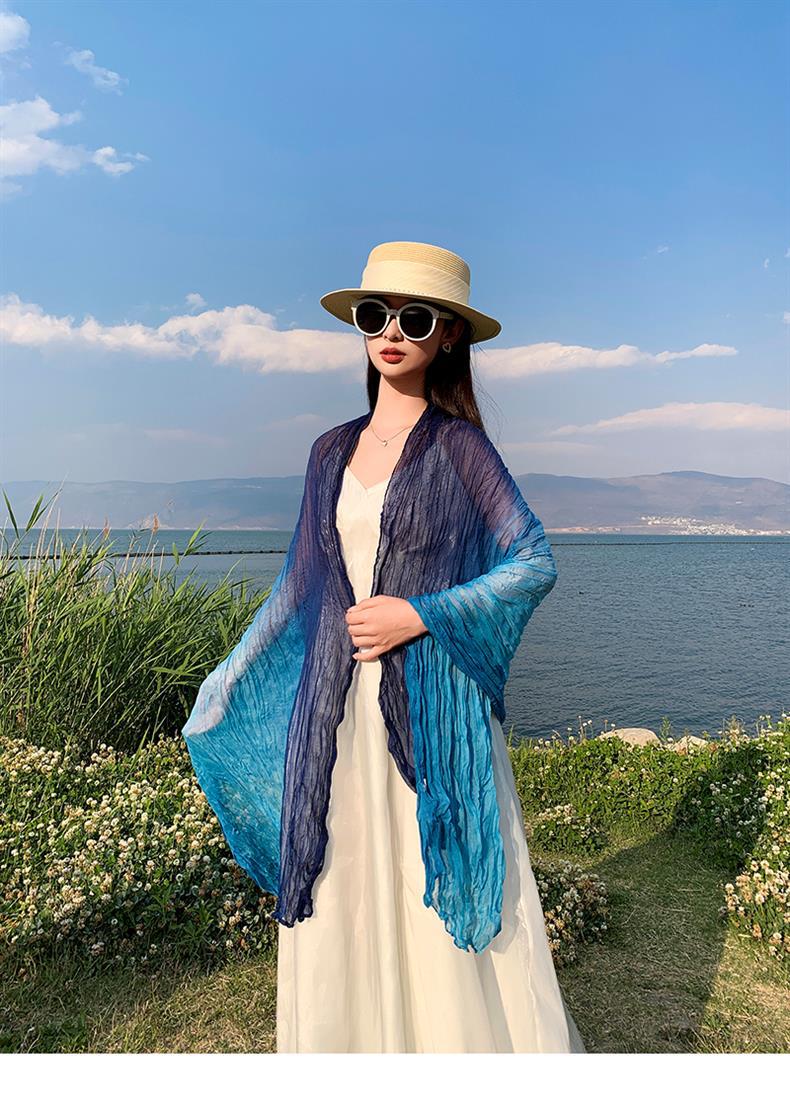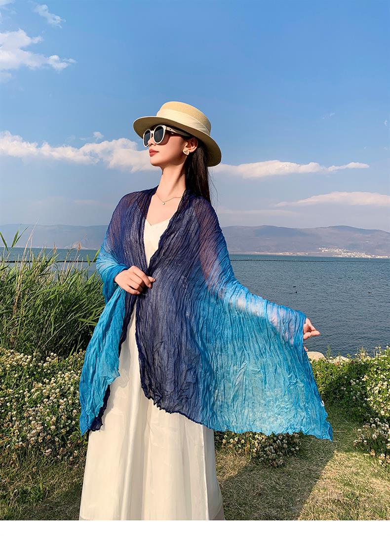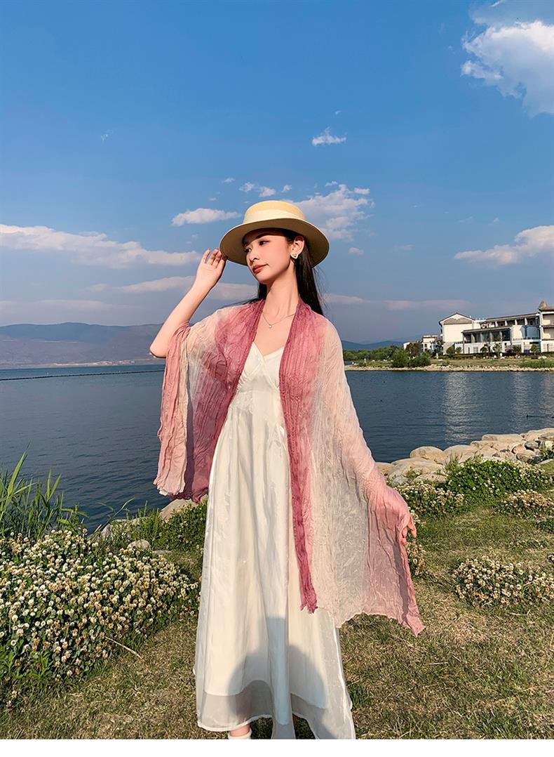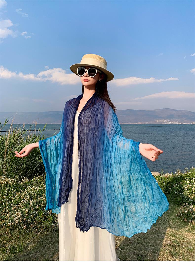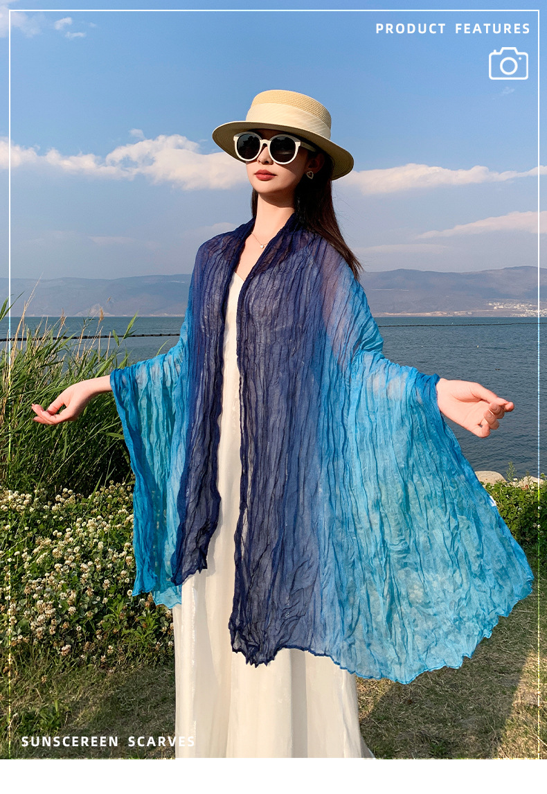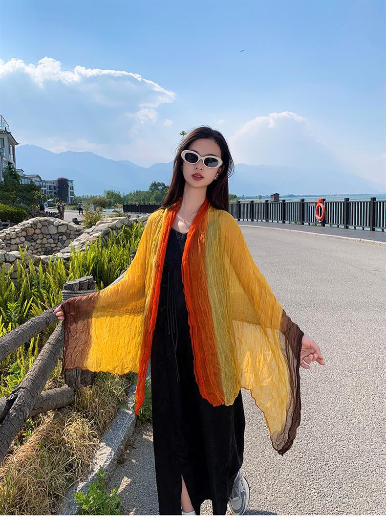 국경 간 복고풍 주름 그라데이션 컬러 스카프 얇은 거즈 스카프 여성 문학 실크 스카프 여행 목도리 사막 터번스토어 가기