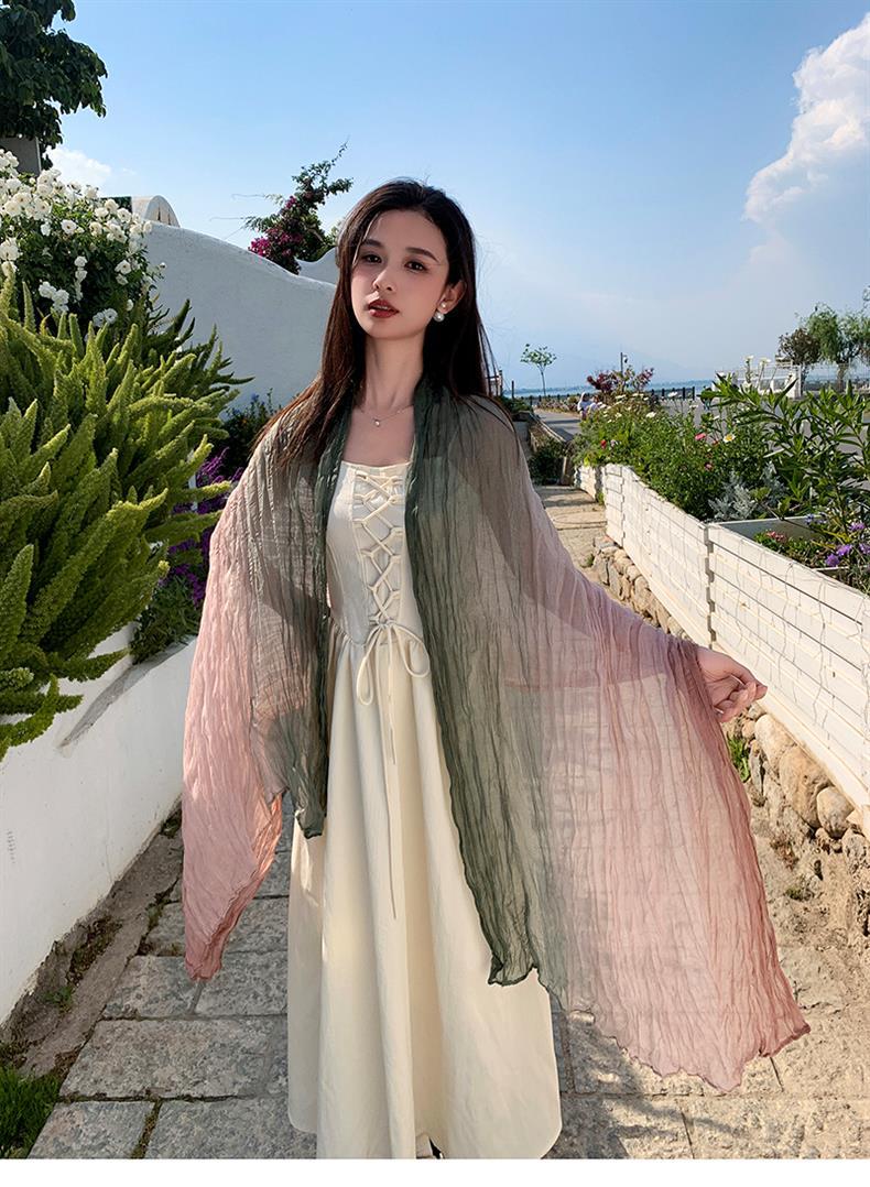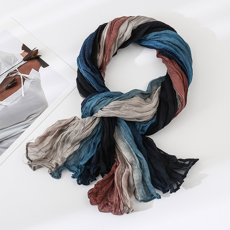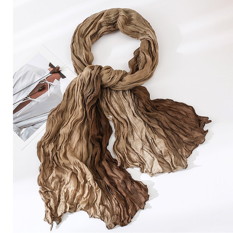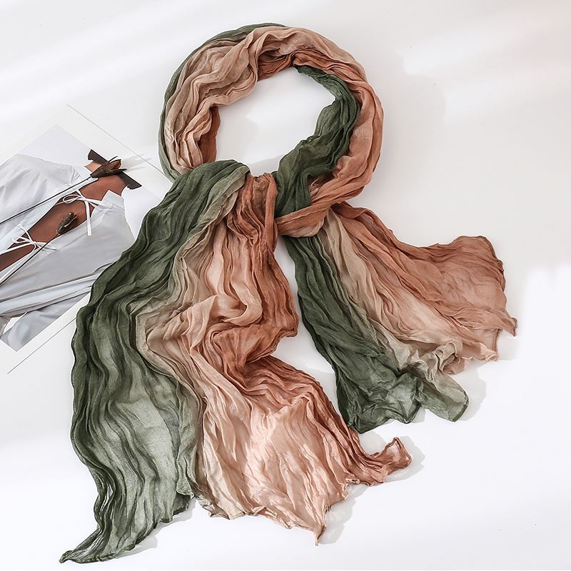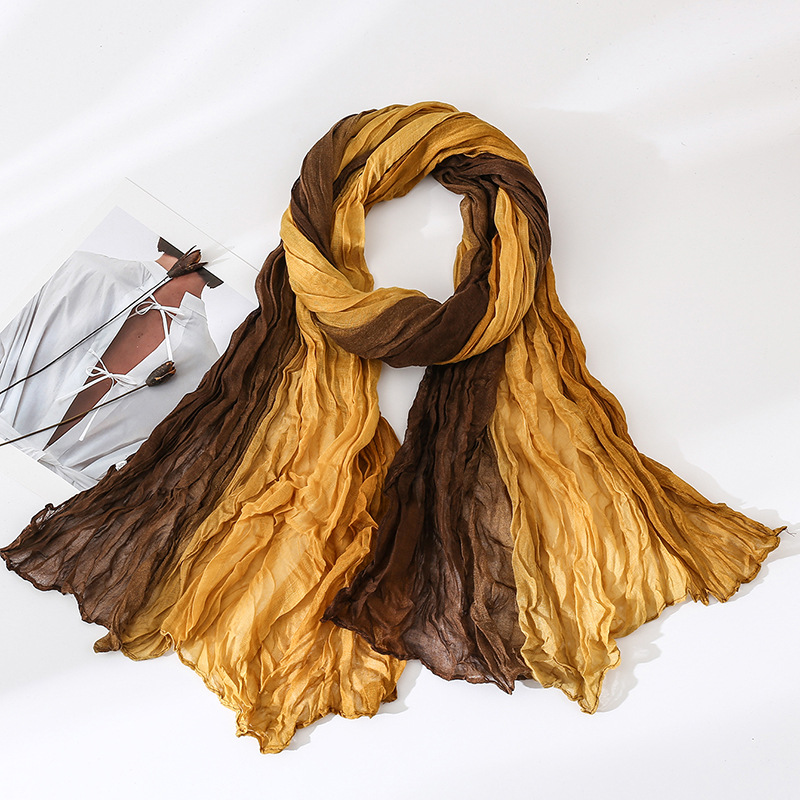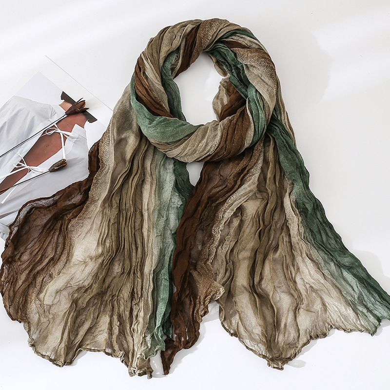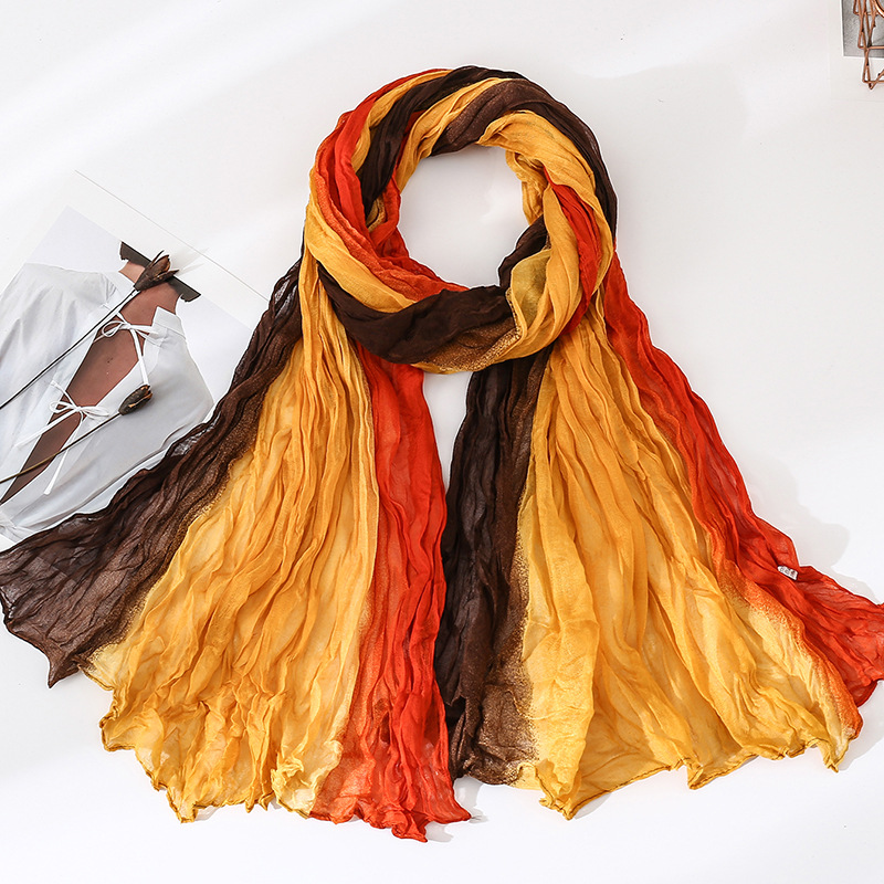 국경 간 복고풍 주름 그라데이션 컬러 스카프 얇은 거즈 스카프 여성 문학 실크 스카프 여행 목도리 사막 터번