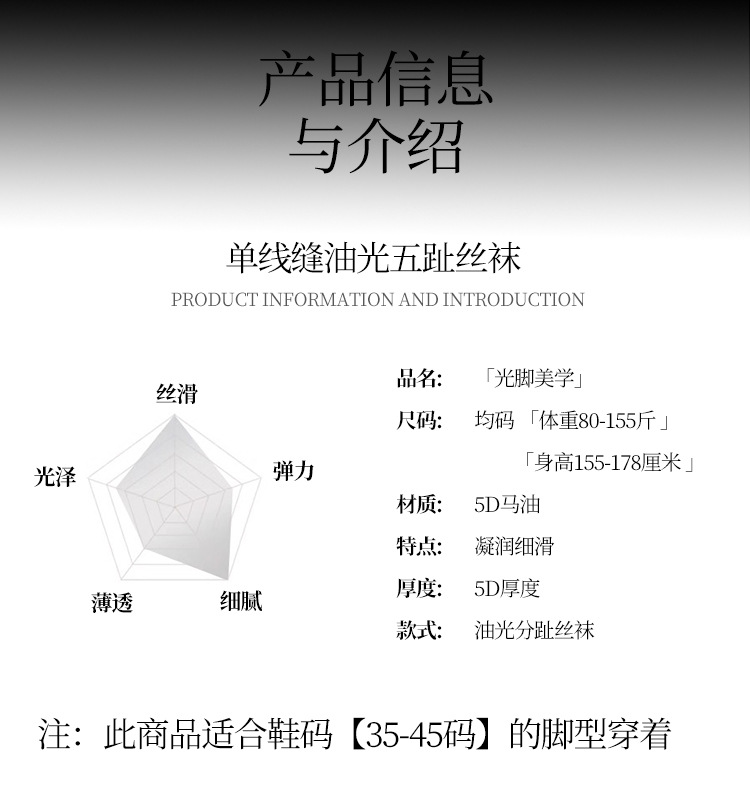 5D 초박형 윤기 나는 다섯 손가락 스타킹 섹시한 고탄성 부드러운 반사 912 바늘 말기름 발가락 스타킹 대형스토어 가기