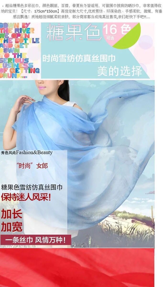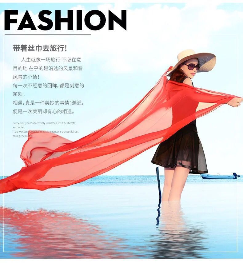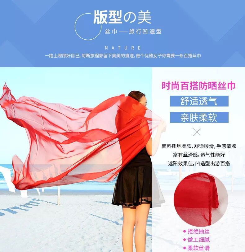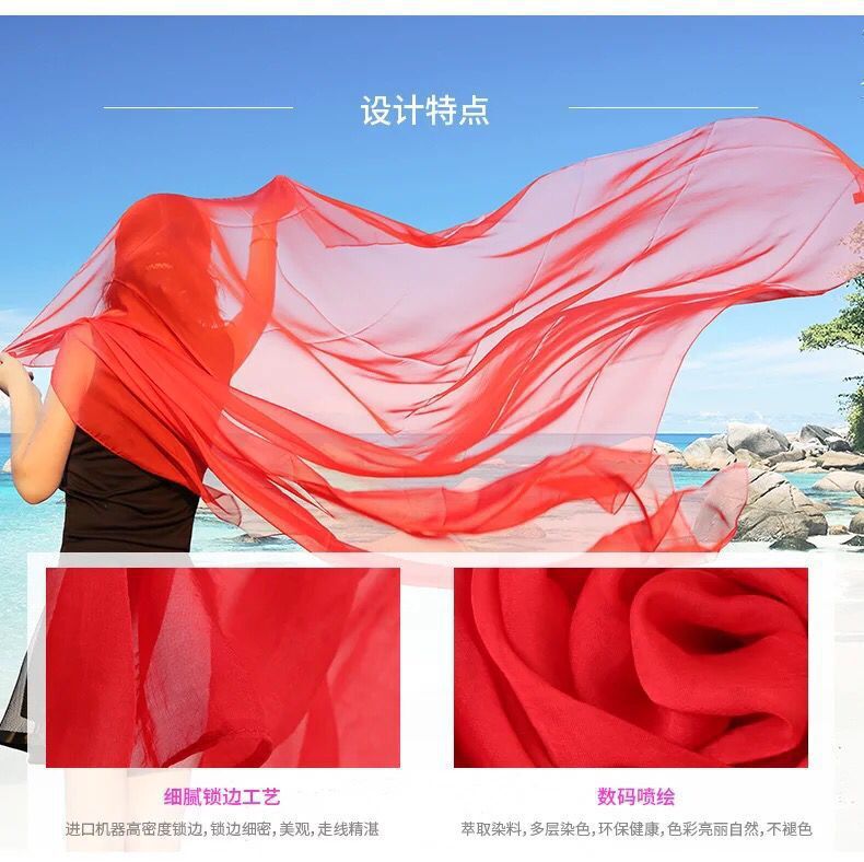실크 스카프 봄과 가을 다목적 여성 긴 대형 경량 거즈 스카프 여름 태양 보호 해변 목도리 파티 공연 큰 빨간색스토어 가기