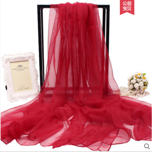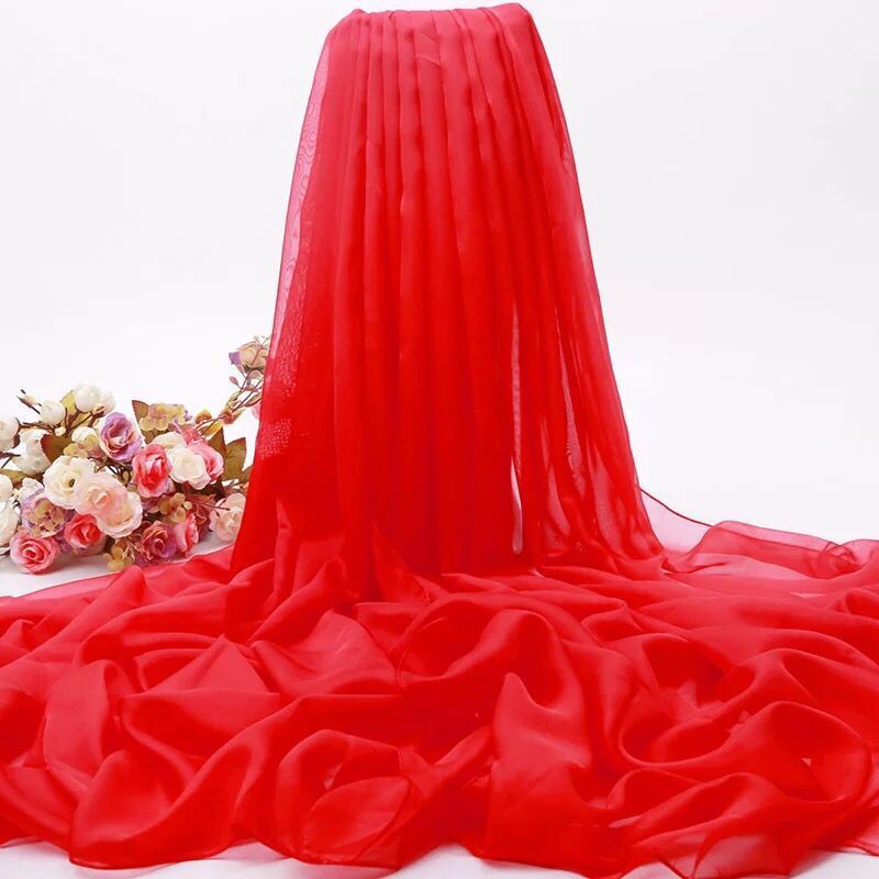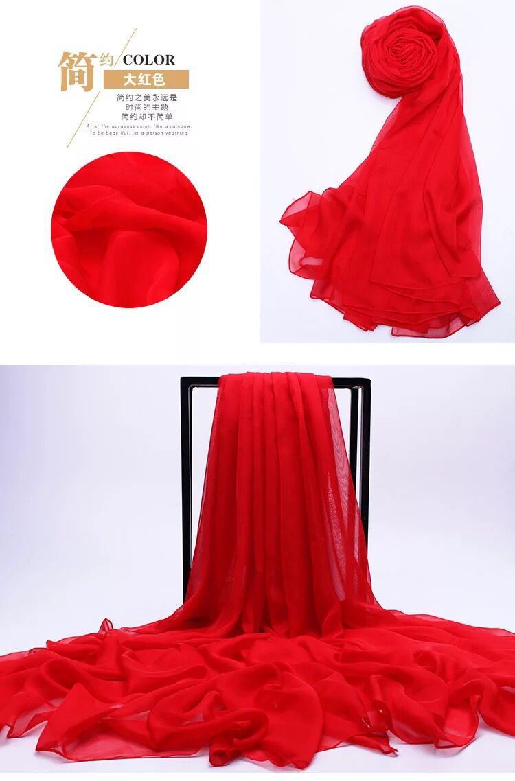 실크 스카프 봄과 가을 다목적 여성 긴 대형 경량 거즈 스카프 여름 태양 보호 해변 목도리 파티 공연 큰 빨간색