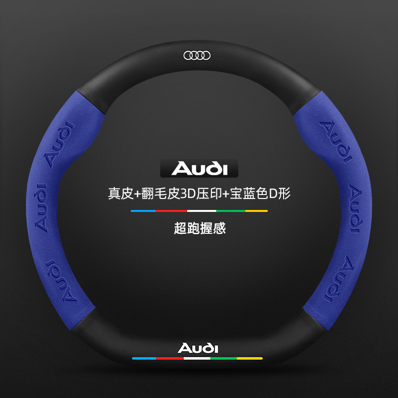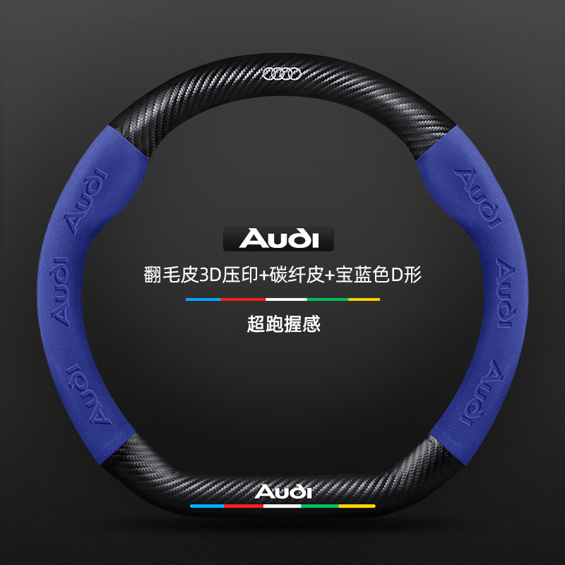 • 스웨이드 3D 양각 탄소 섬유 가죽 로얄 블루 D자형 아우디 로고