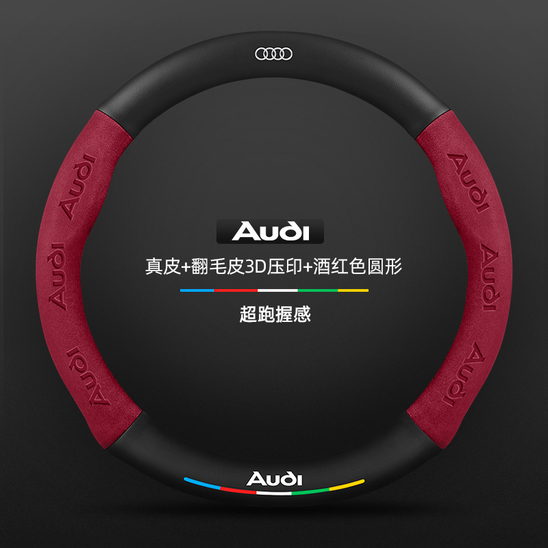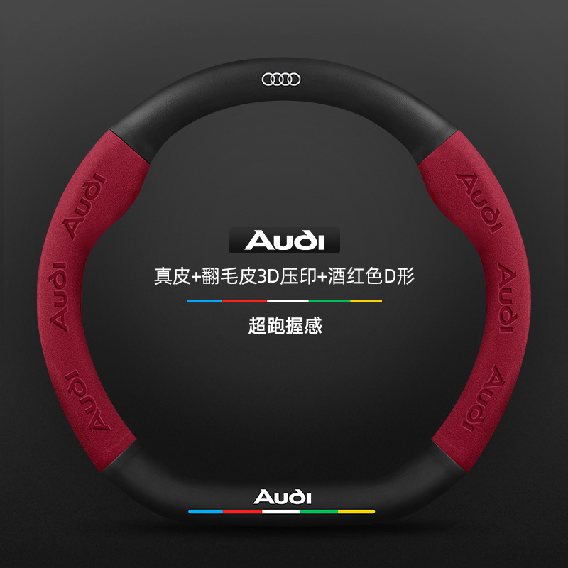 • 천연가죽 스웨이드 3D 엠보싱 버건디 D자형 아우디 로고
