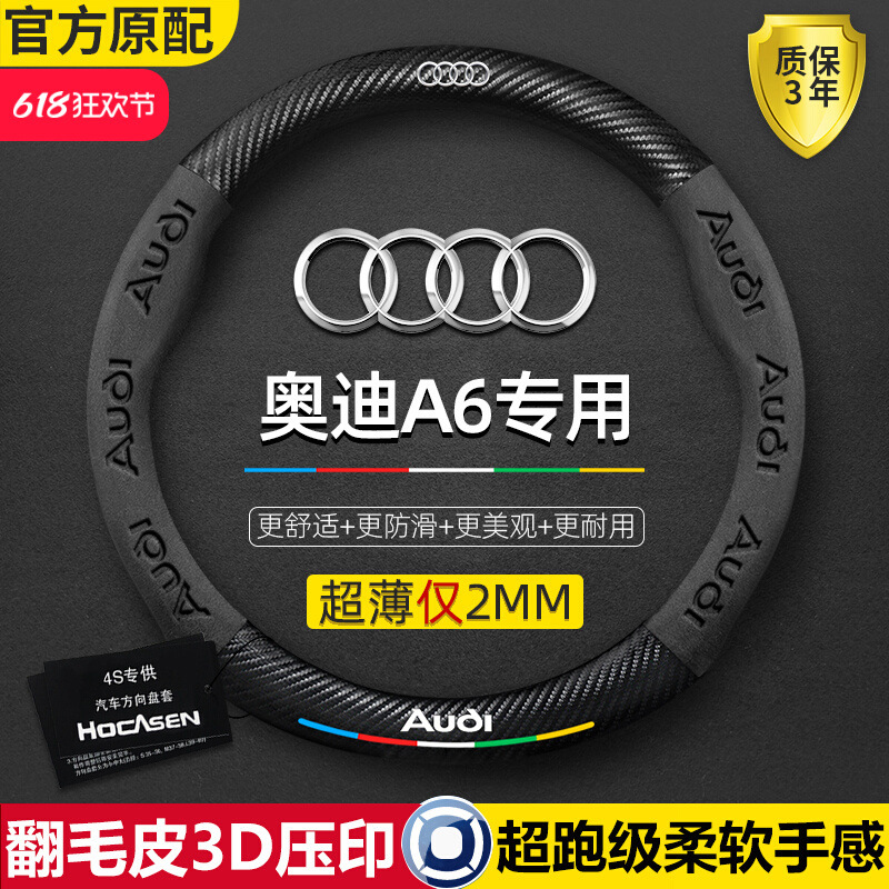 아우디 A6 스티어링 휠 커버에 적합 정품 가죽 04-24 올 시즌 탄소 섬유 스웨이드 자동차 핸들 커버스토어 가기