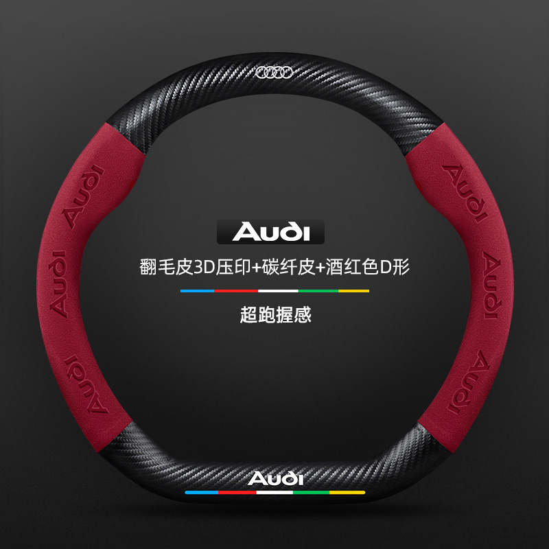 • 스웨이드 3D 양각 탄소 섬유 가죽 버건디 D자형 아우디 로고