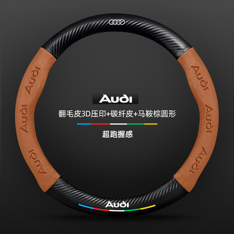 • 스웨이드 3D 양각 탄소 섬유 가죽 안장 브라운 라운드 아우디 로고