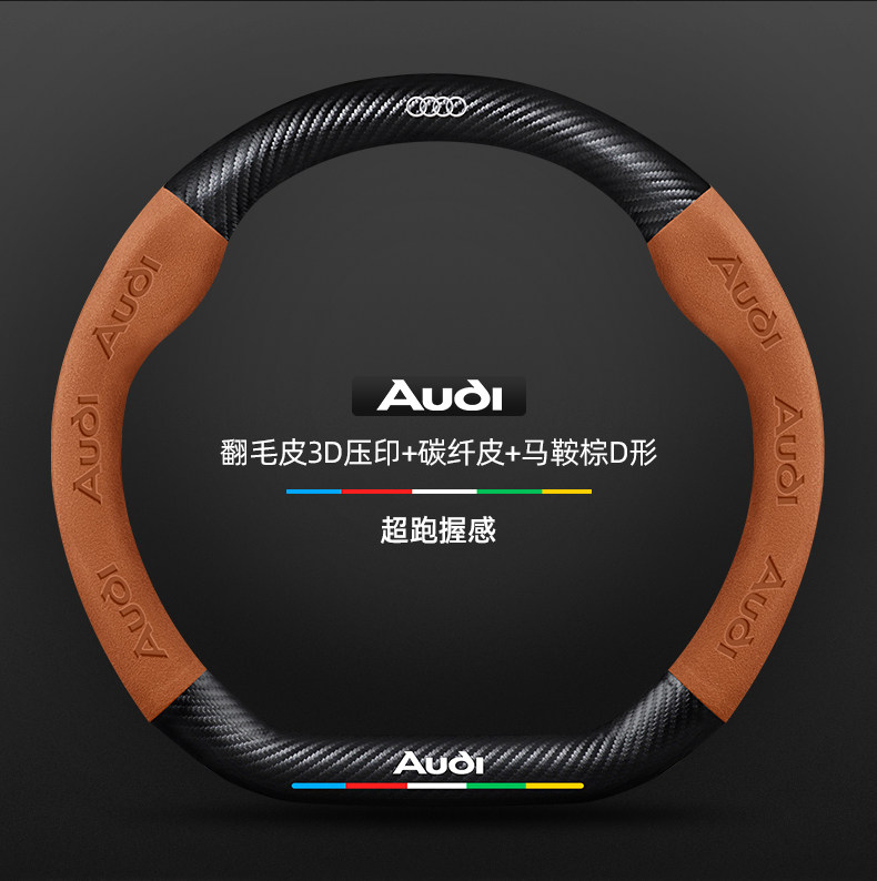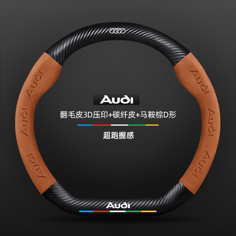 • 스웨이드 3D 양각 탄소 섬유 가죽 안장 브라운 D자형 아우디 로고