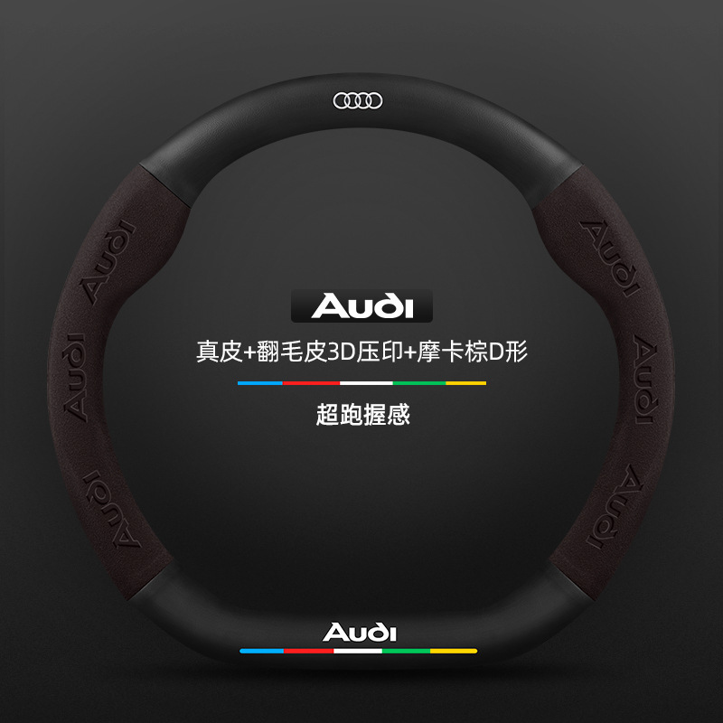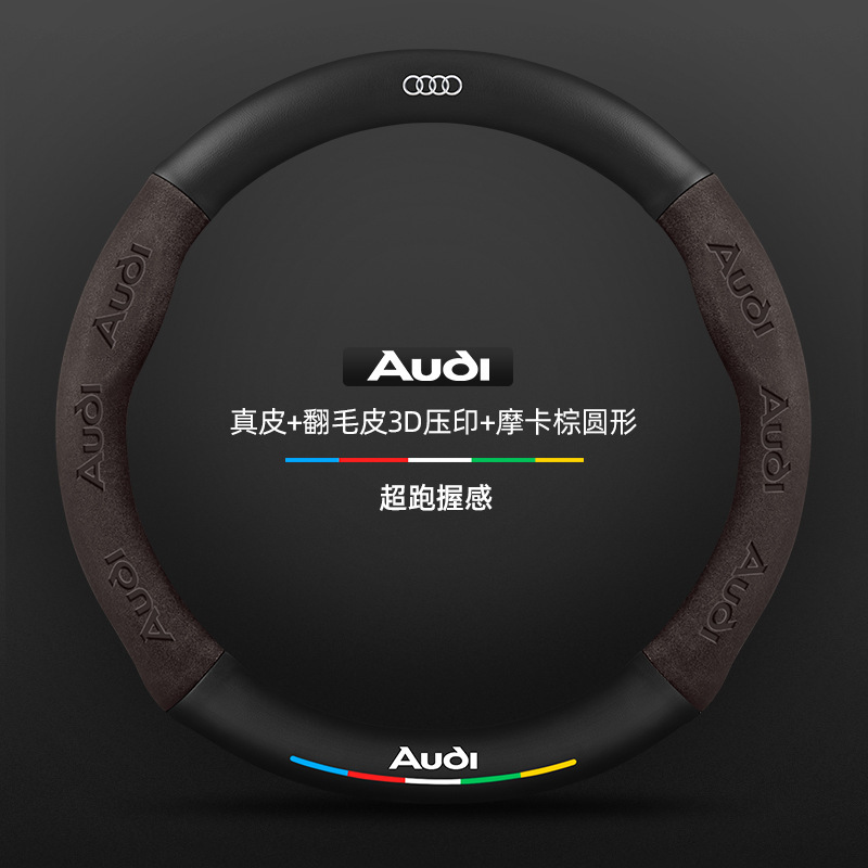• 천연가죽 스웨이드 3D 엠보싱 모카 브라운 D자형 아우디 로고