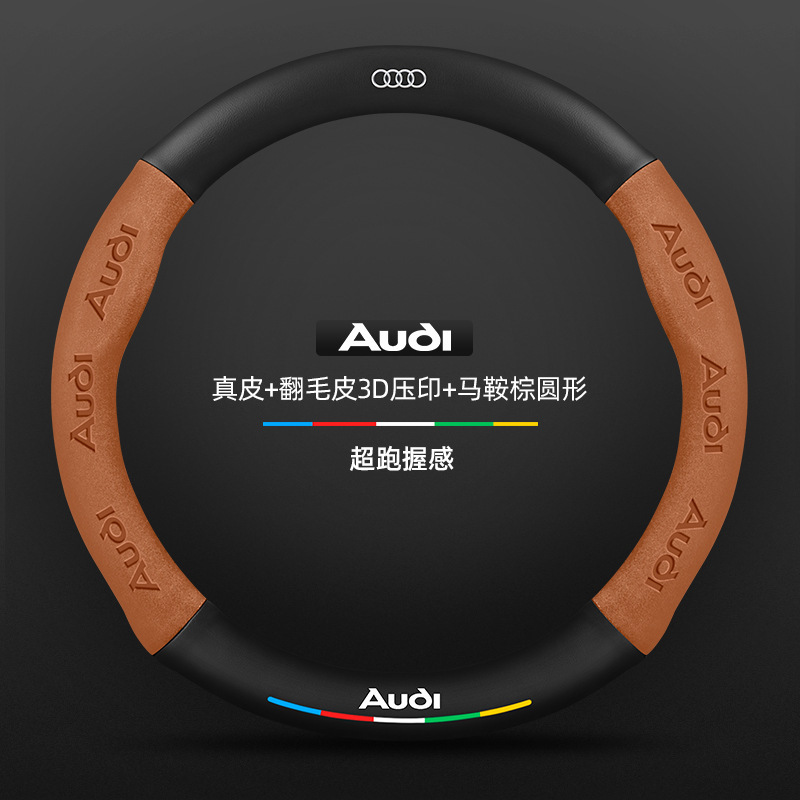 • 천연가죽 스웨이드 3D 엠보싱 새들 브라운 라운드 아우디 로고