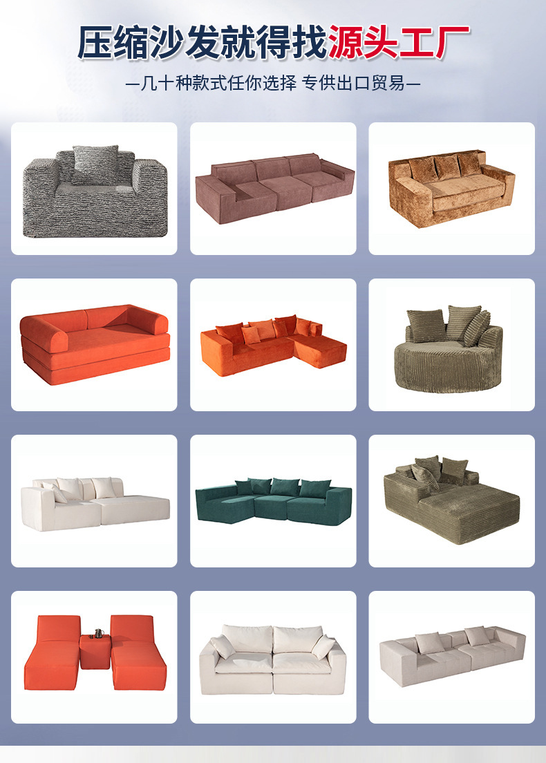 게으른 사람들을 위한 맞춤형 코듀로이 코어 패브릭 다기능 접이식 수출 대외 무역 거실 침실 압축 리클라이닝 소파 베드