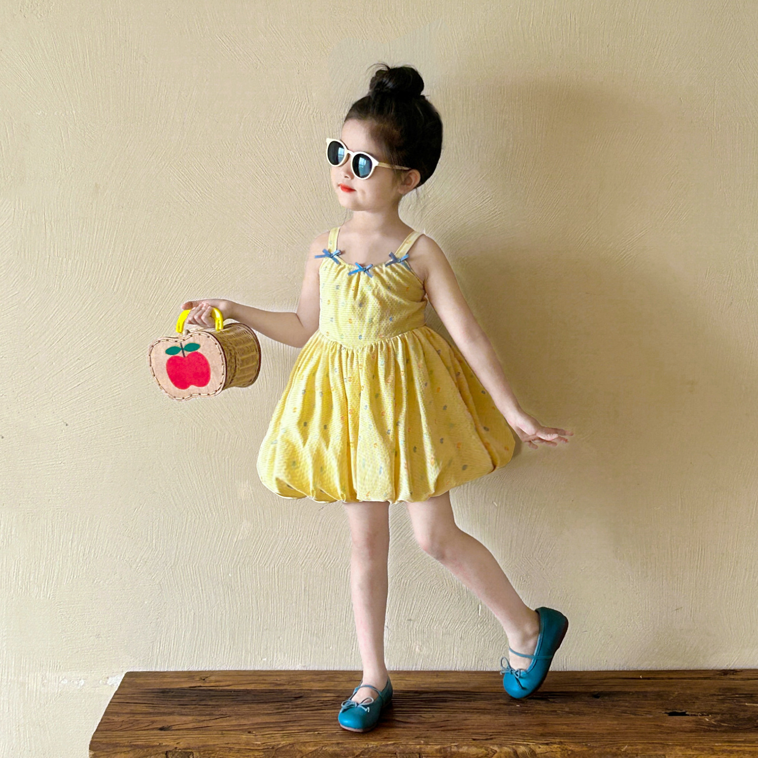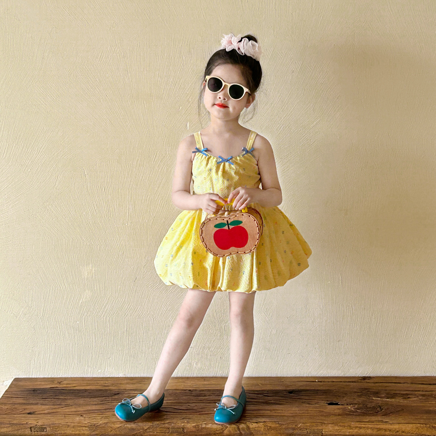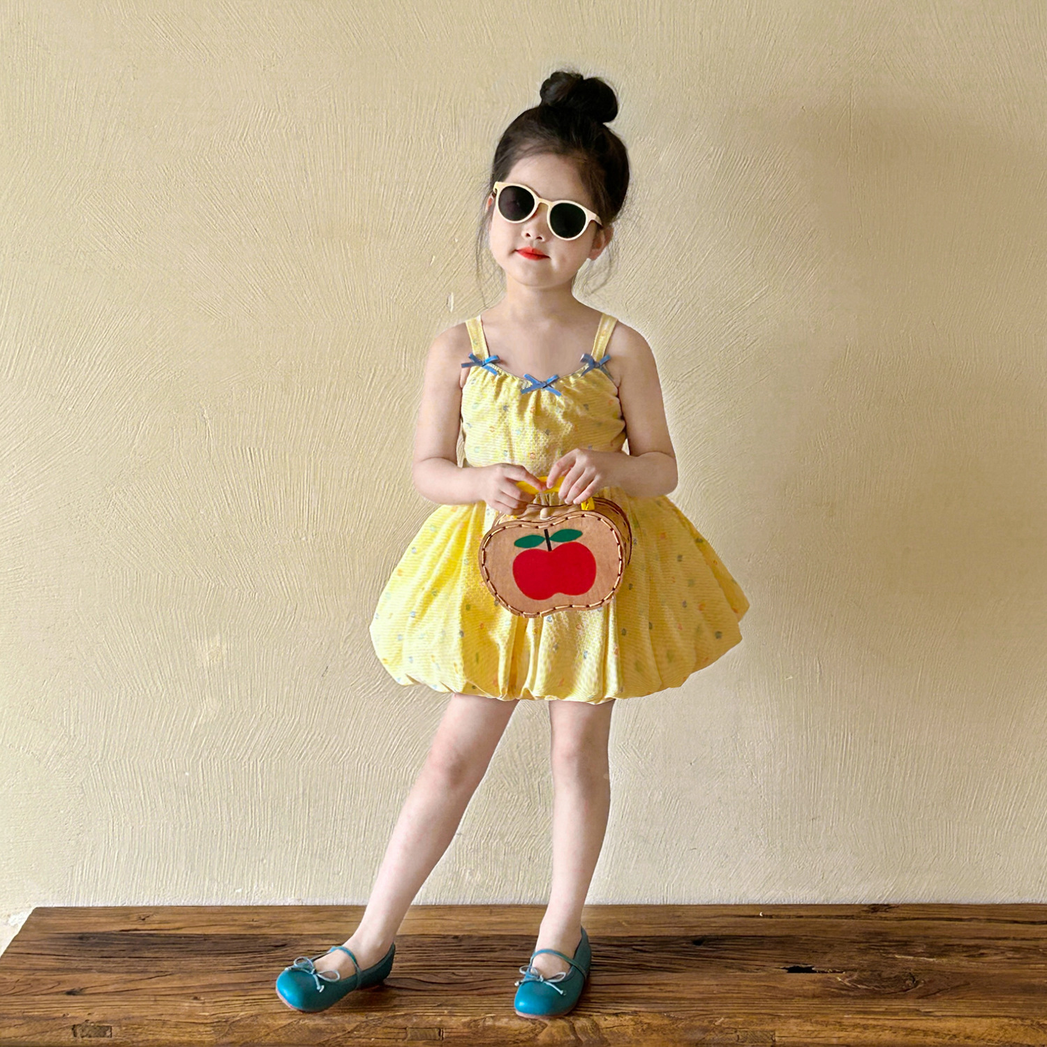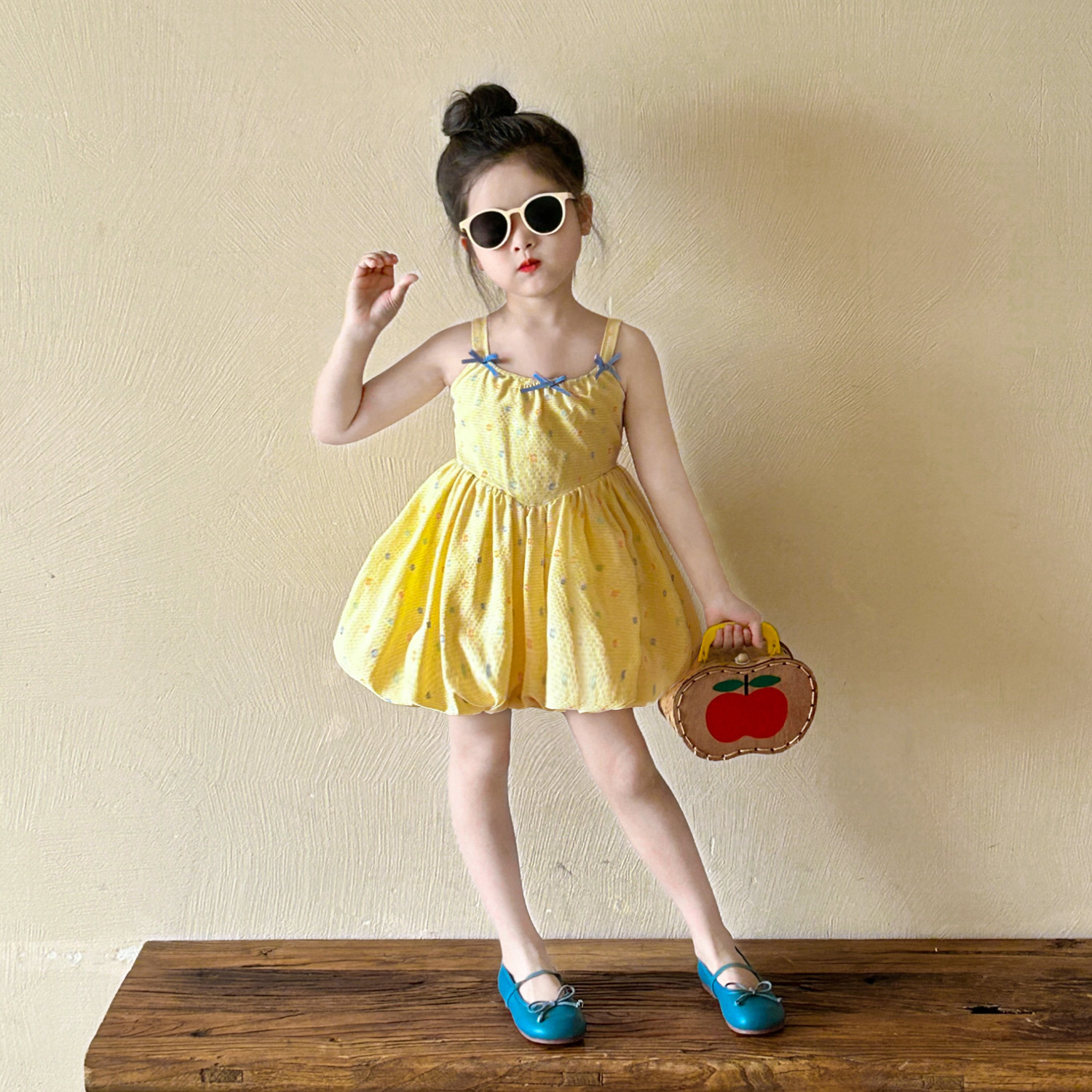 여자 달콤한 컬러풀한 폴카 도트 서스펜더 스커트 2025 여름 새 스타일 어린 소녀 보우 드레스