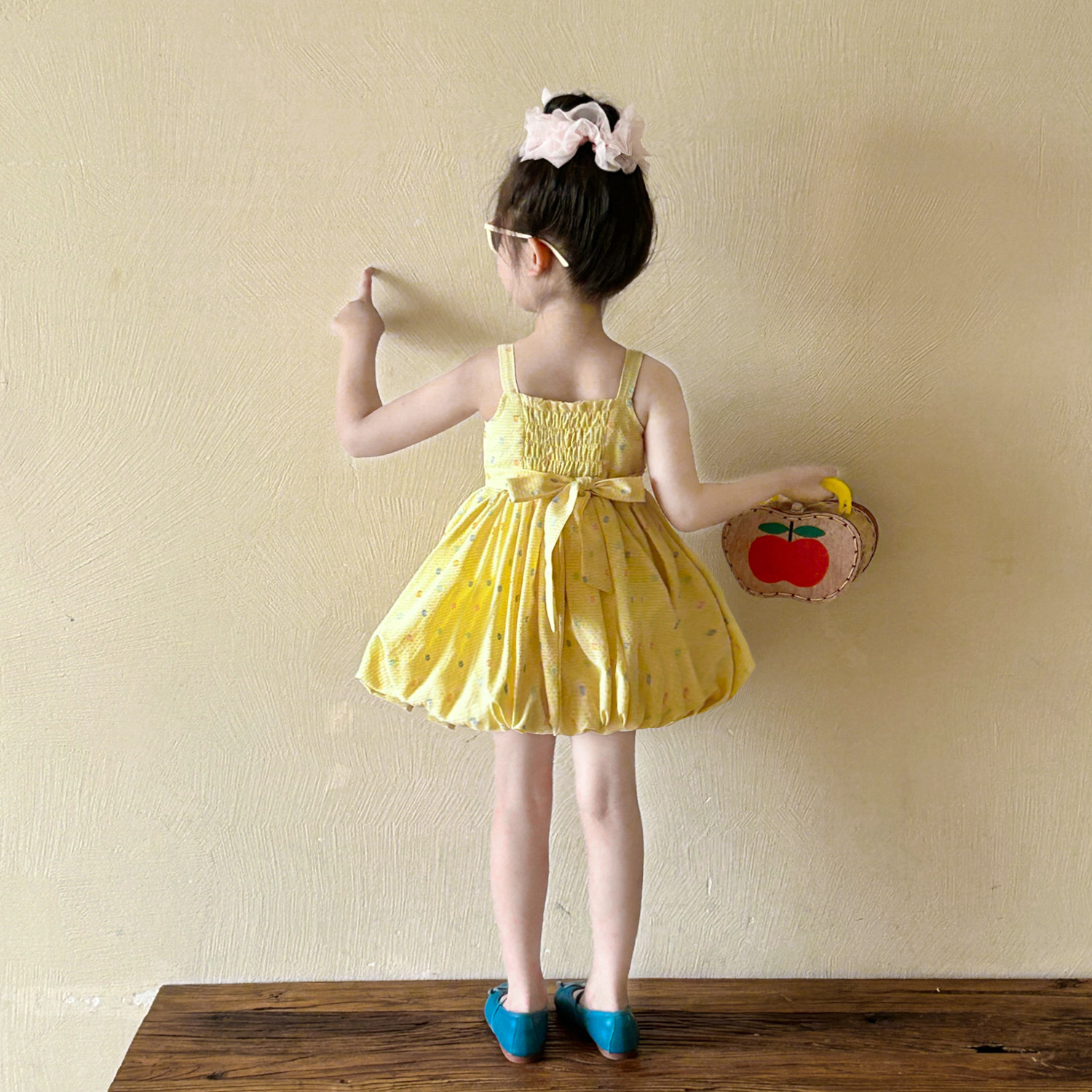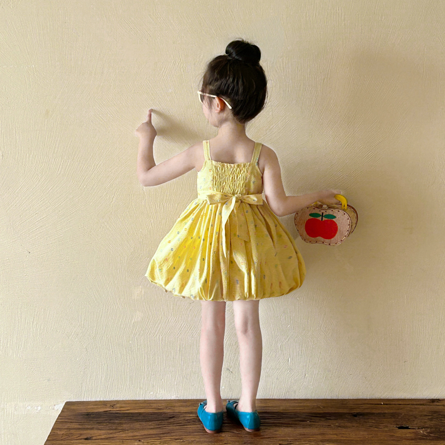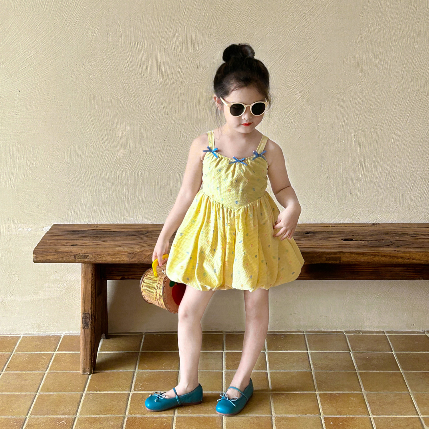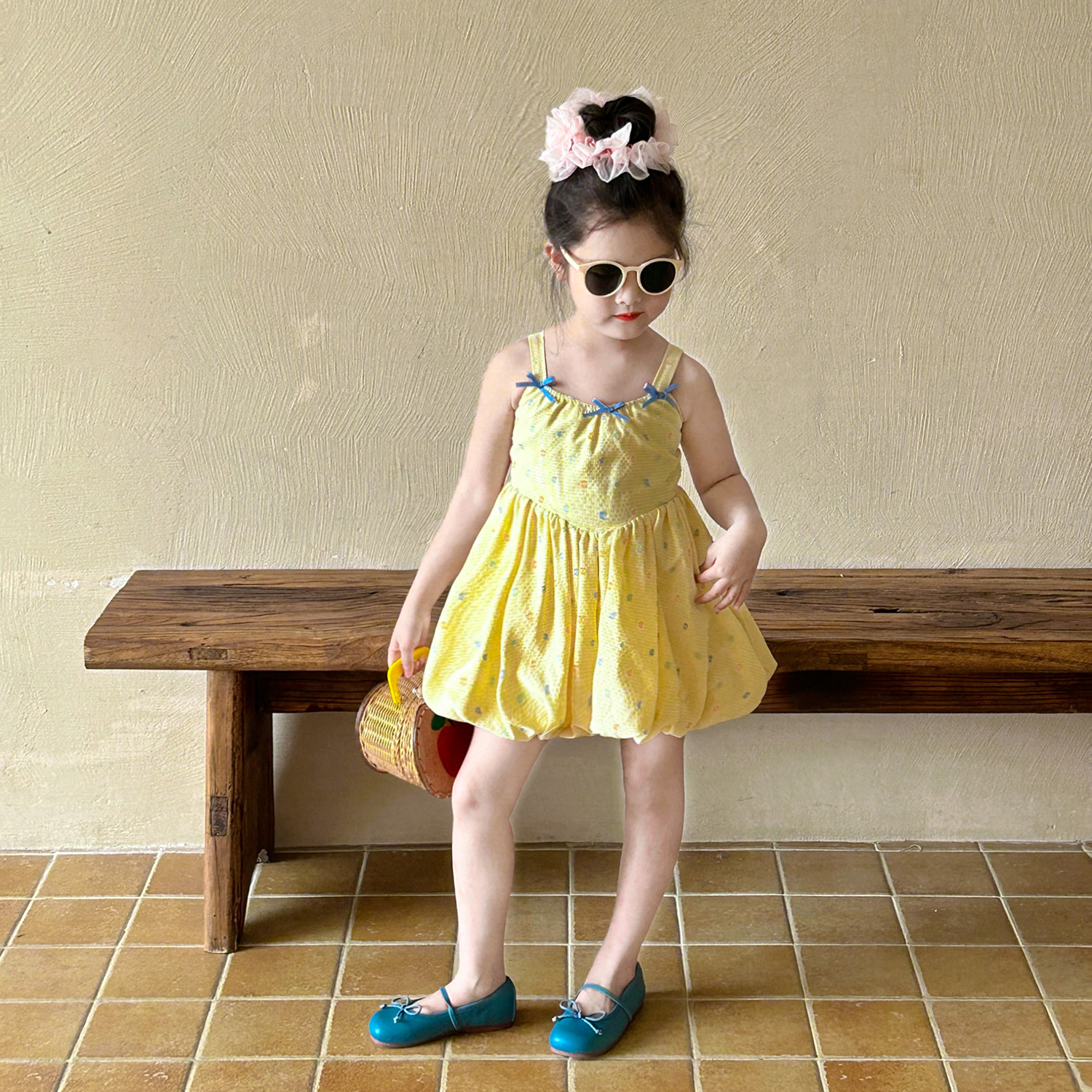 여자 달콤한 컬러풀한 폴카 도트 서스펜더 스커트 2025 여름 새 스타일 어린 소녀 보우 드레스