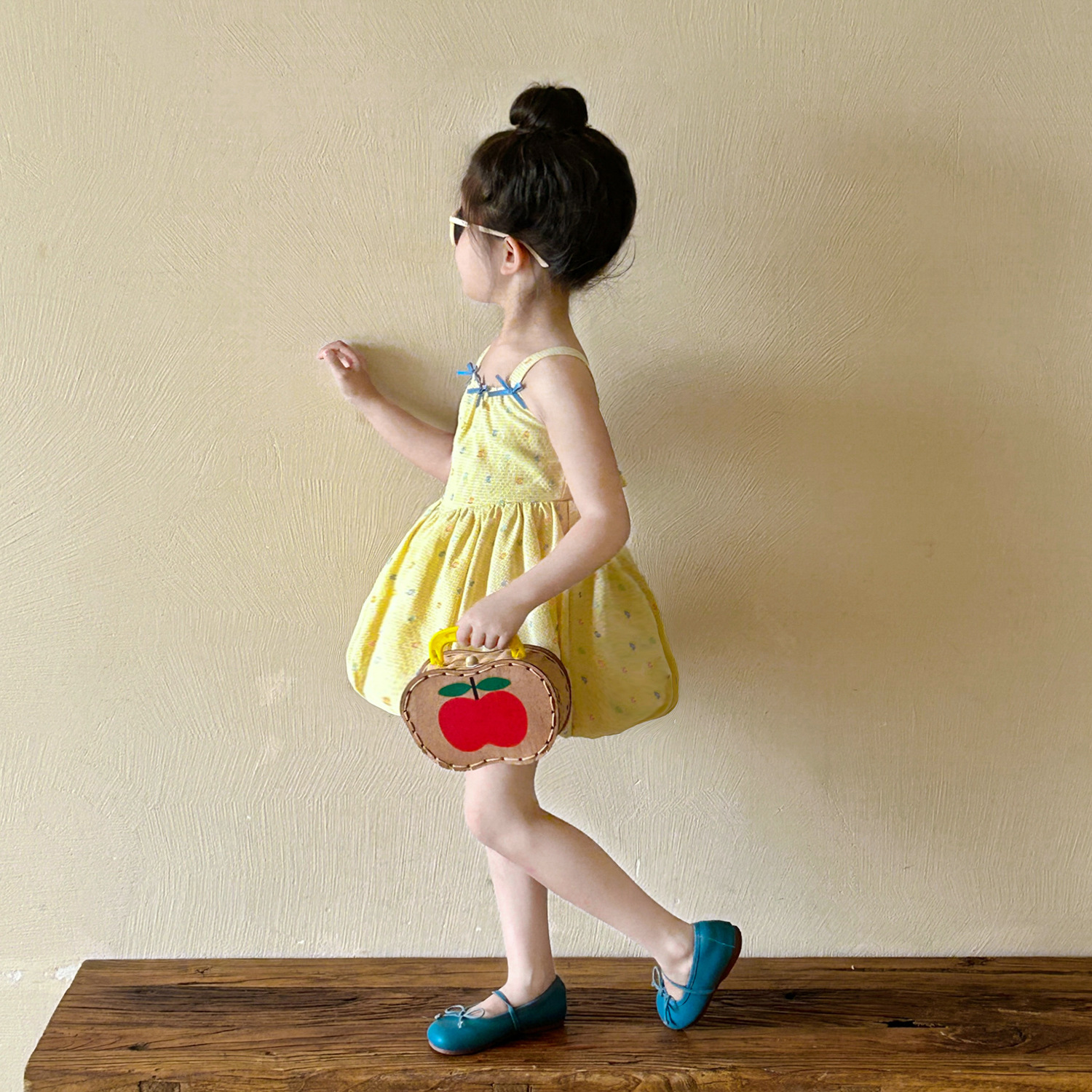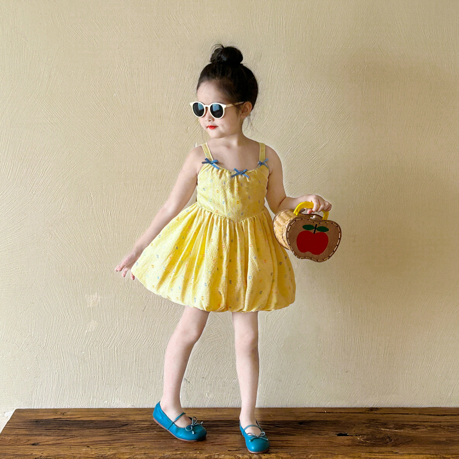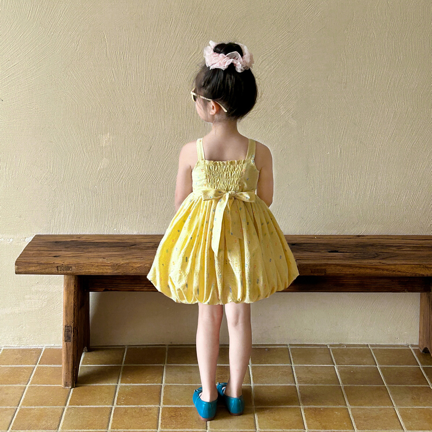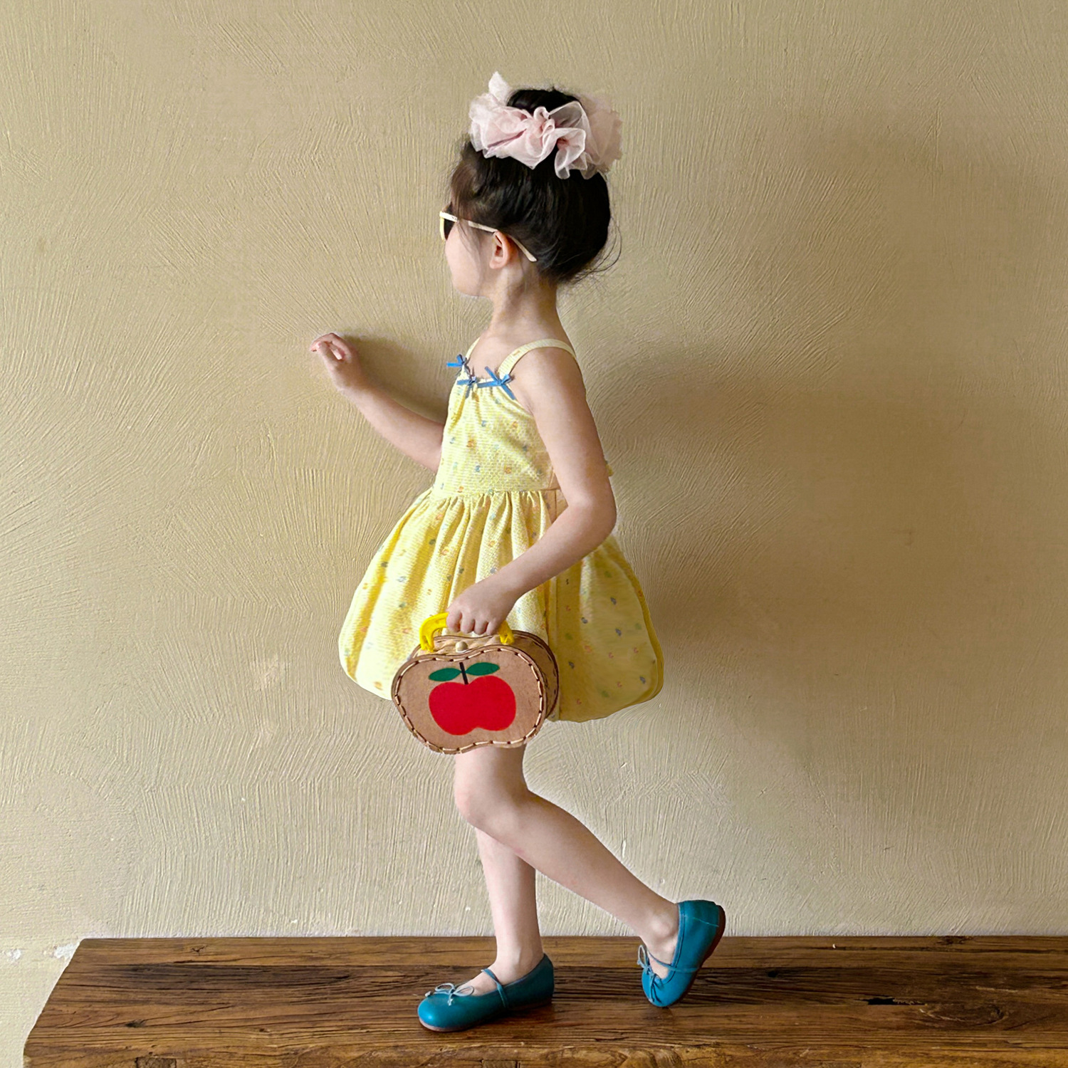 여자 달콤한 컬러풀한 폴카 도트 서스펜더 스커트 2025 여름 새 스타일 어린 소녀 보우 드레스
