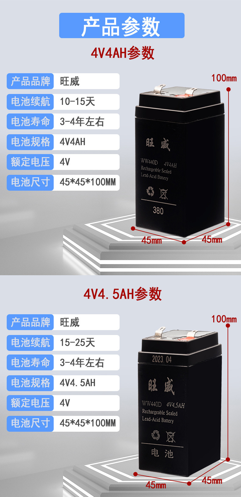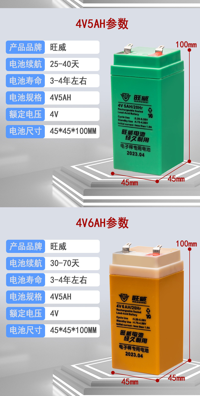 4V4AH Wangwei 새로운 2 세대 전자 저울 배터리 대용량 전자 저울 특수 배터리 범용 플랫폼 저울 4V5