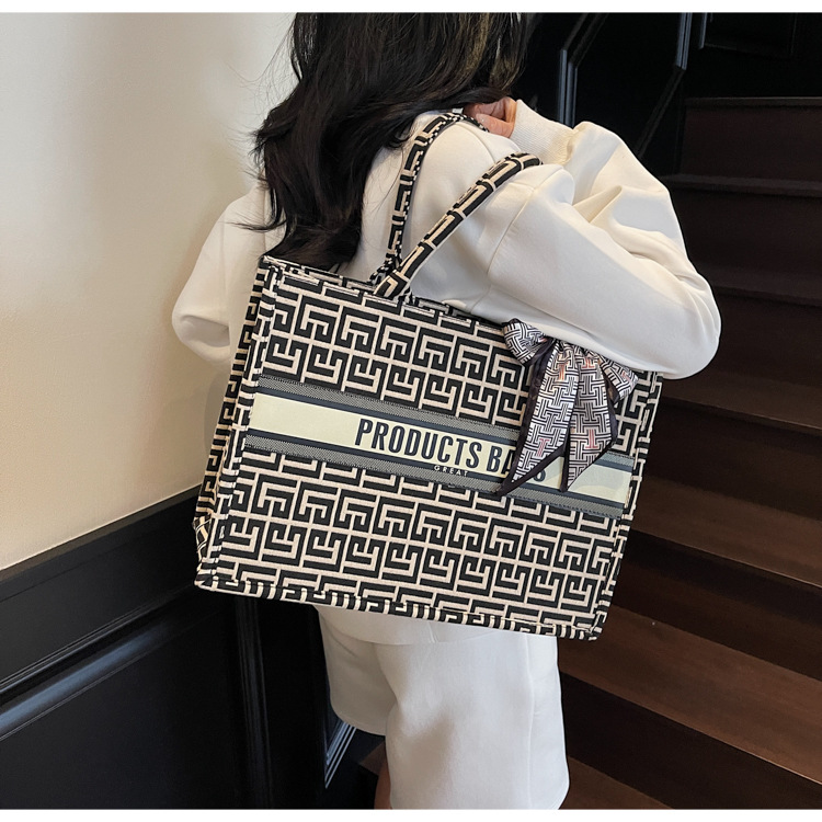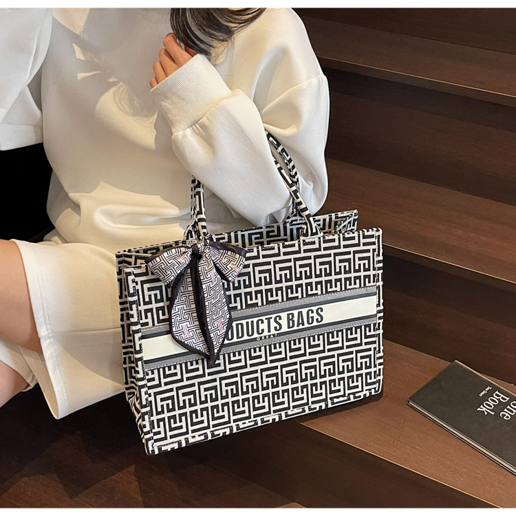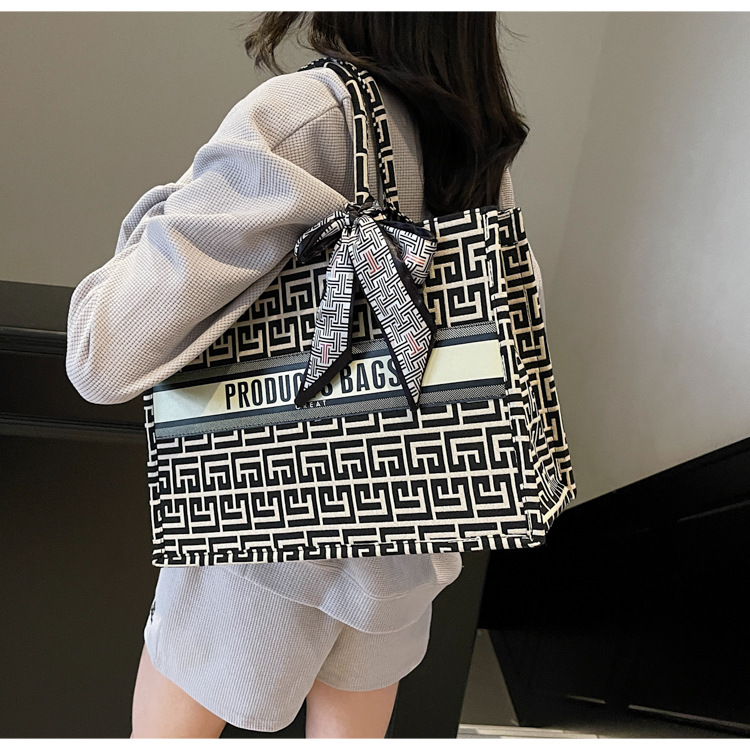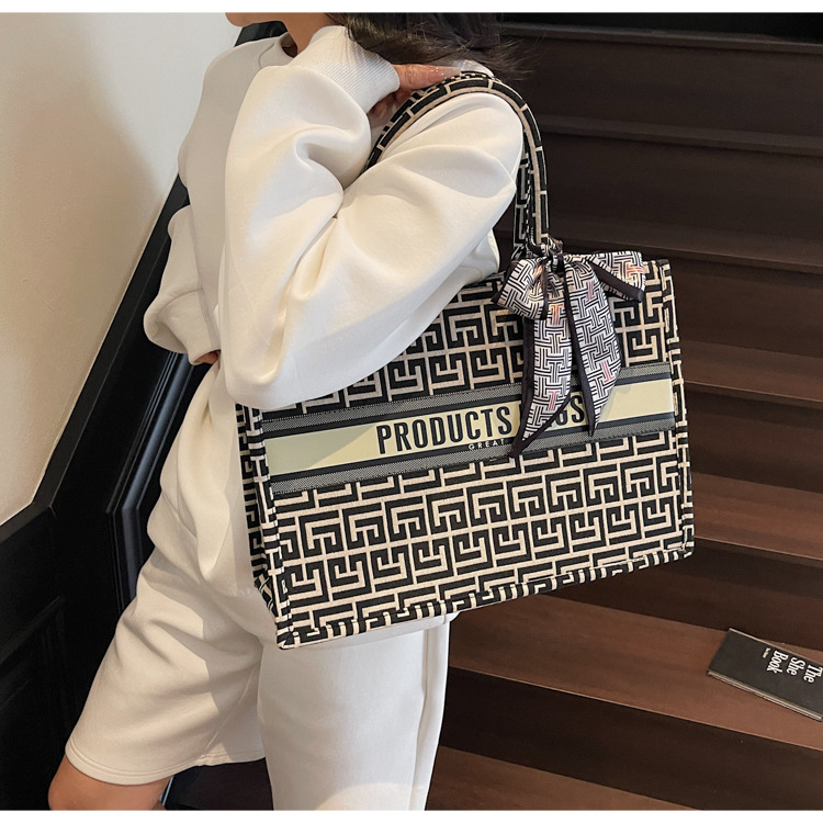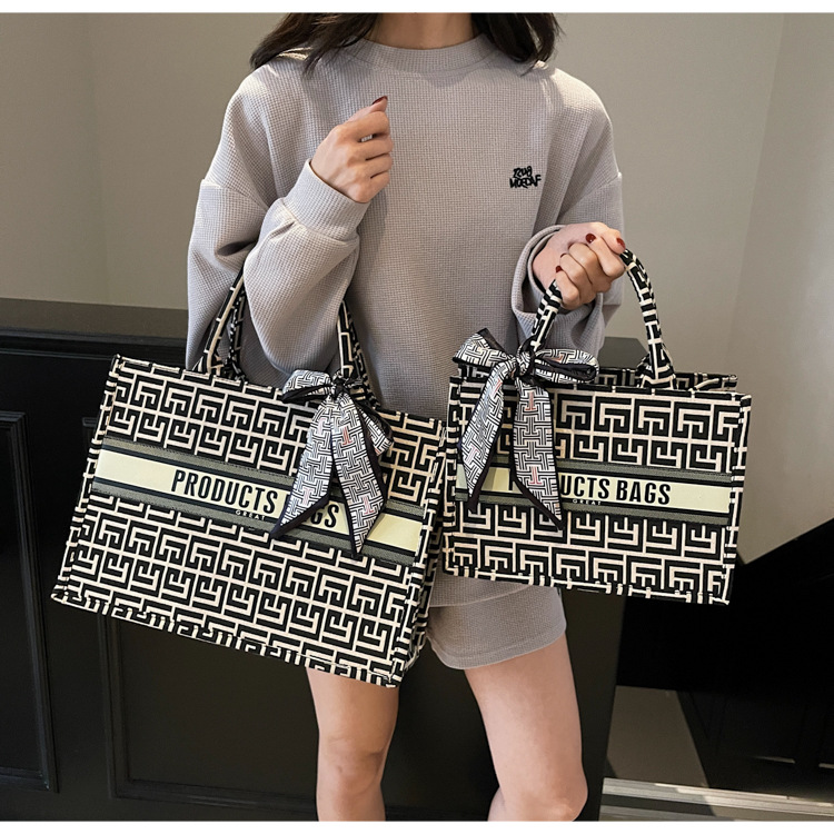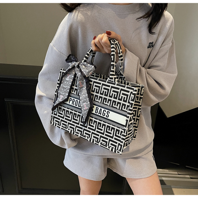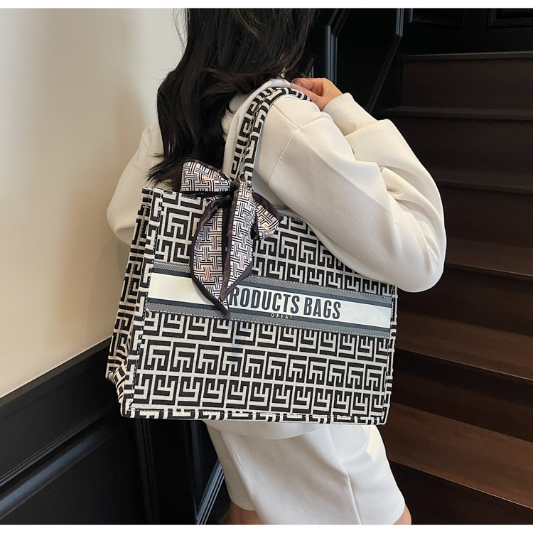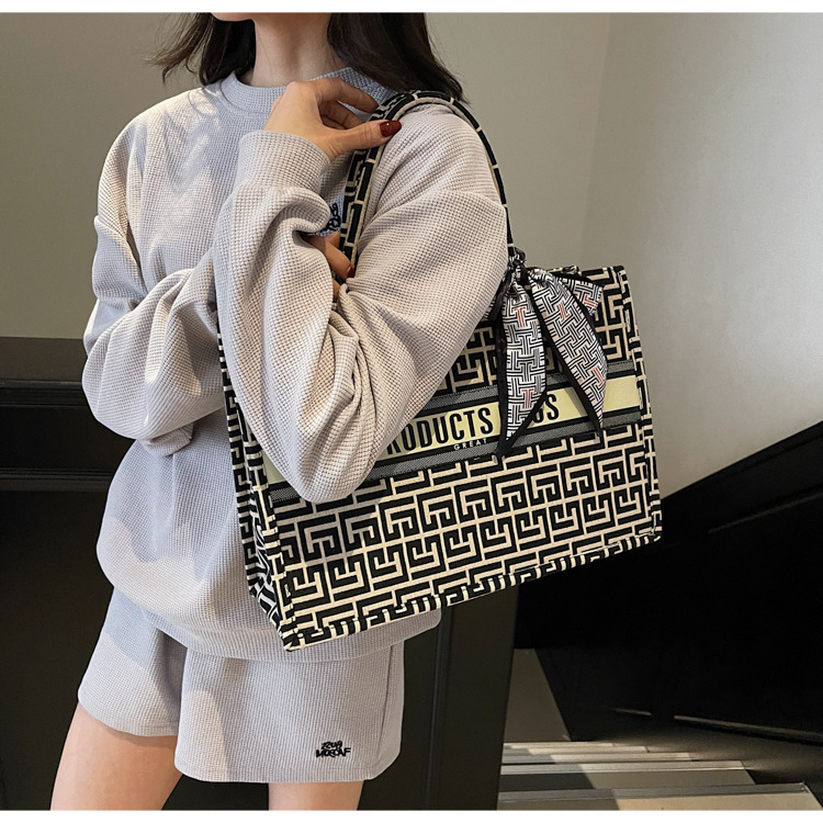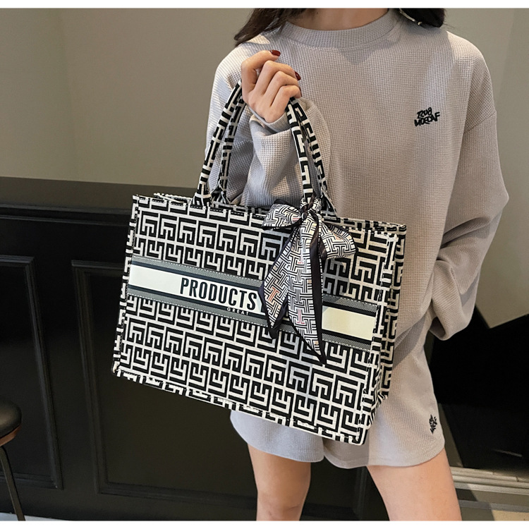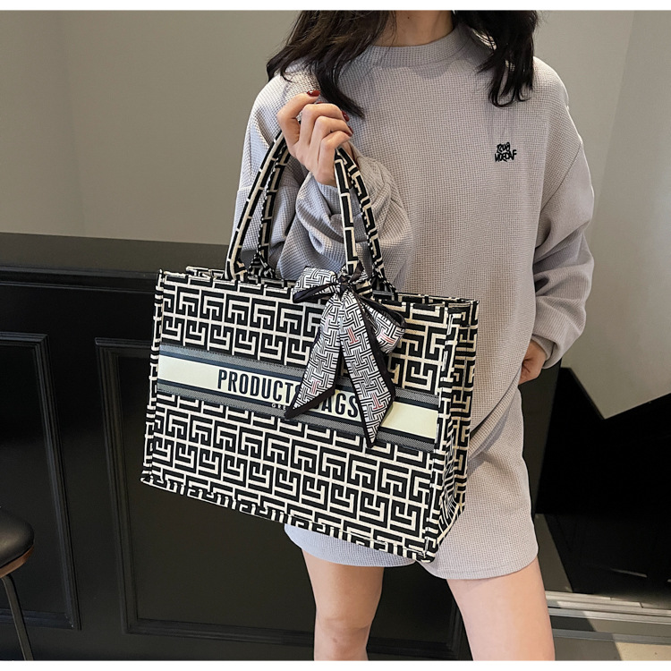 유럽과 미국의 여성용 대형 가방 새로운 유행 패션 캔버스 인쇄 대용량 어깨 겨드랑이 가방 다용도 휴대용 토트 백스토어 가기
