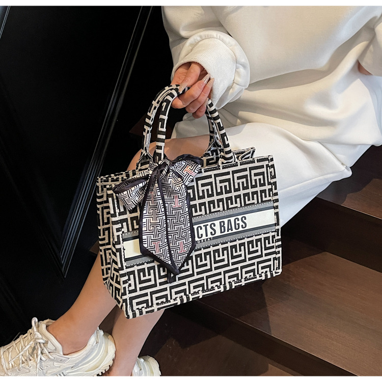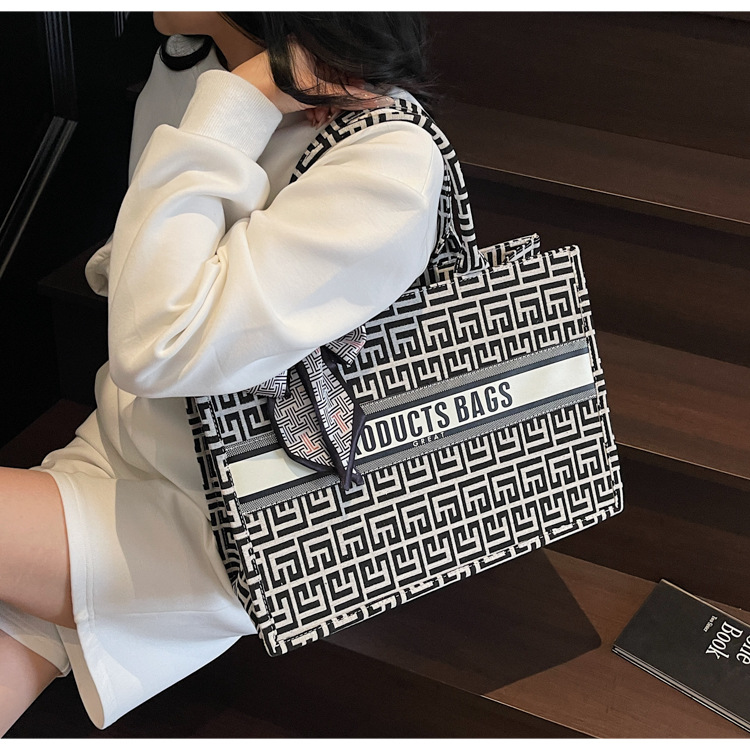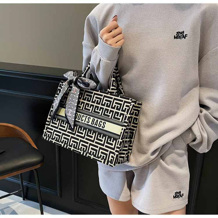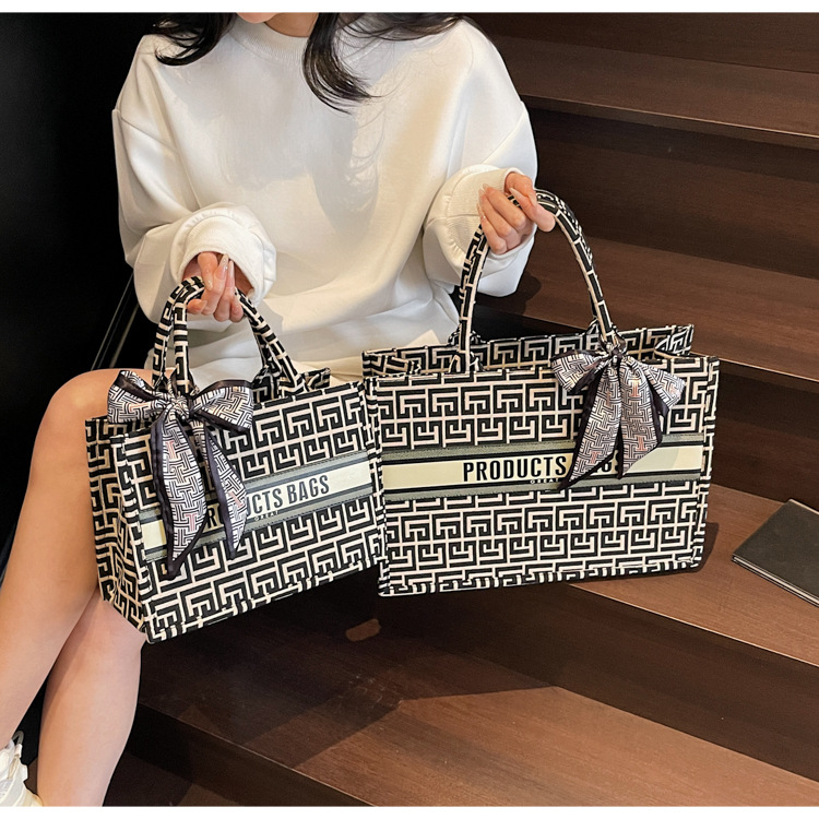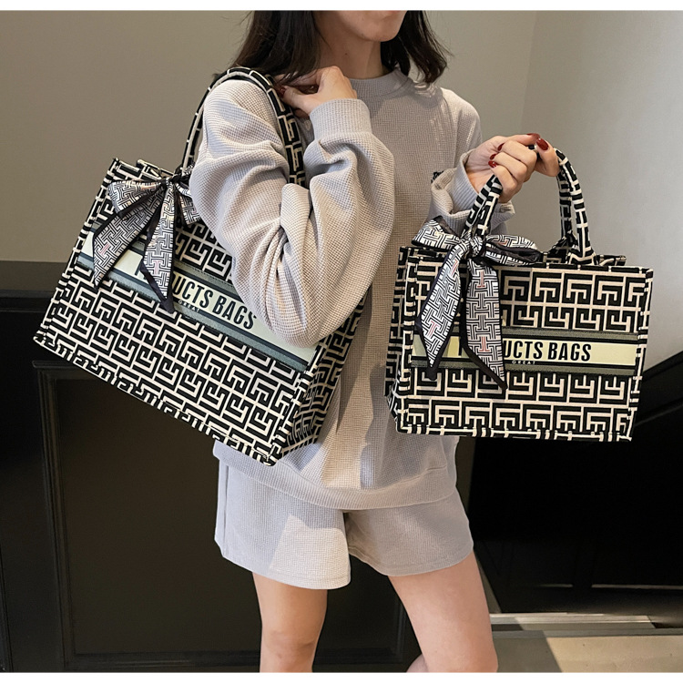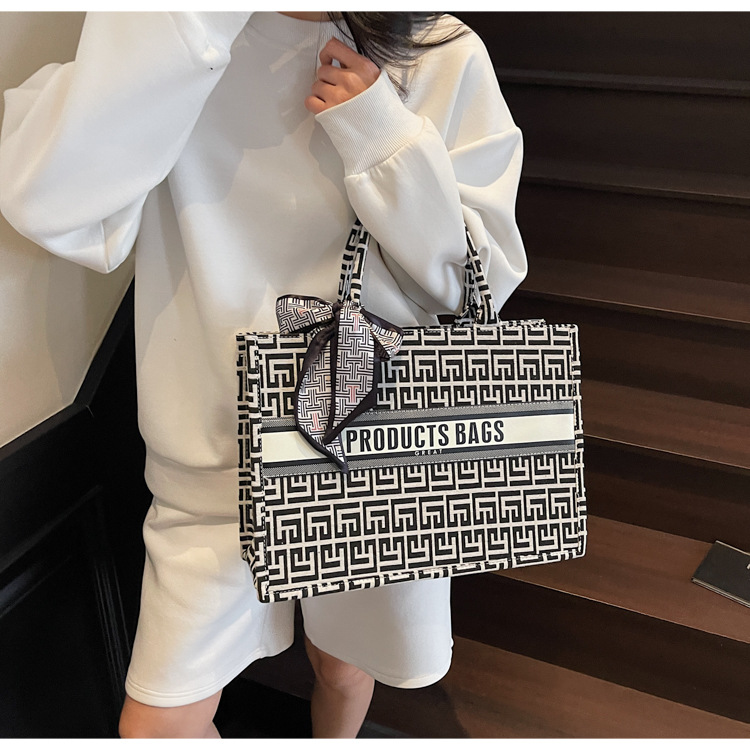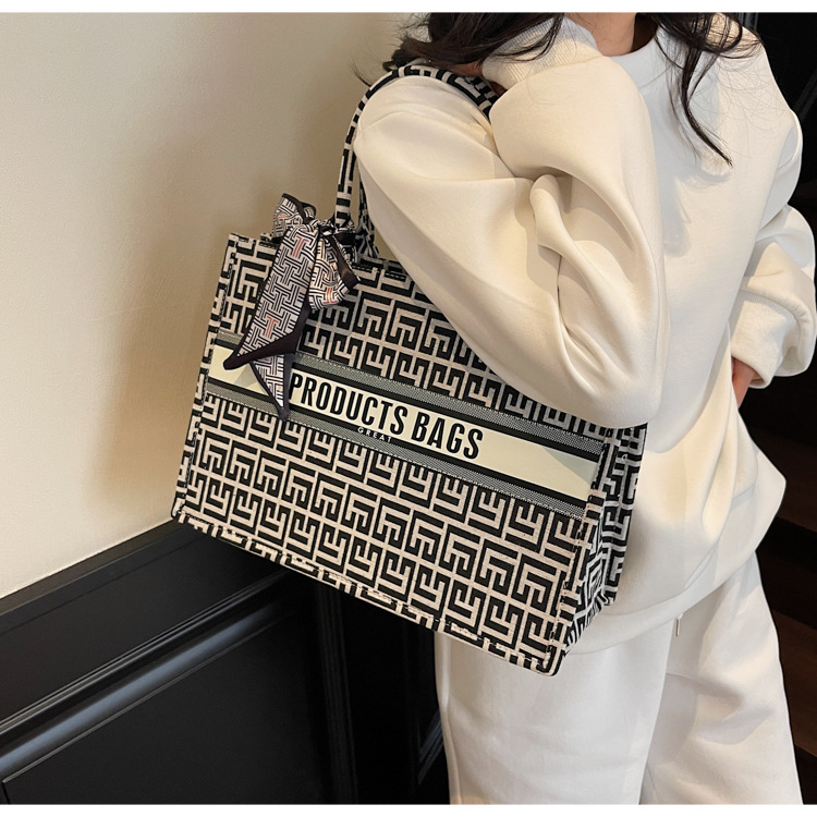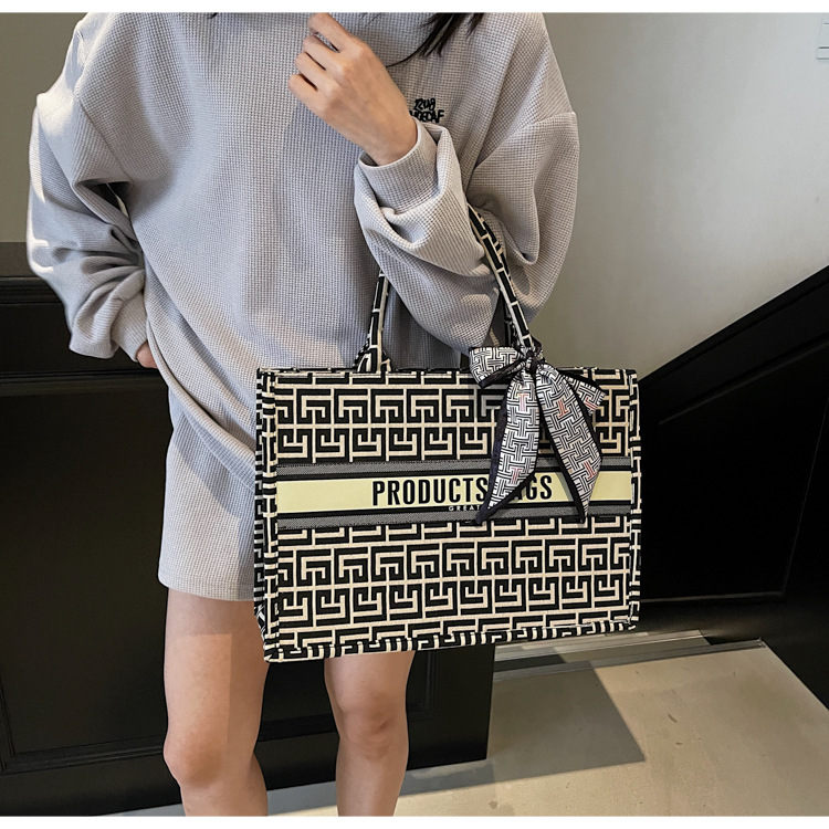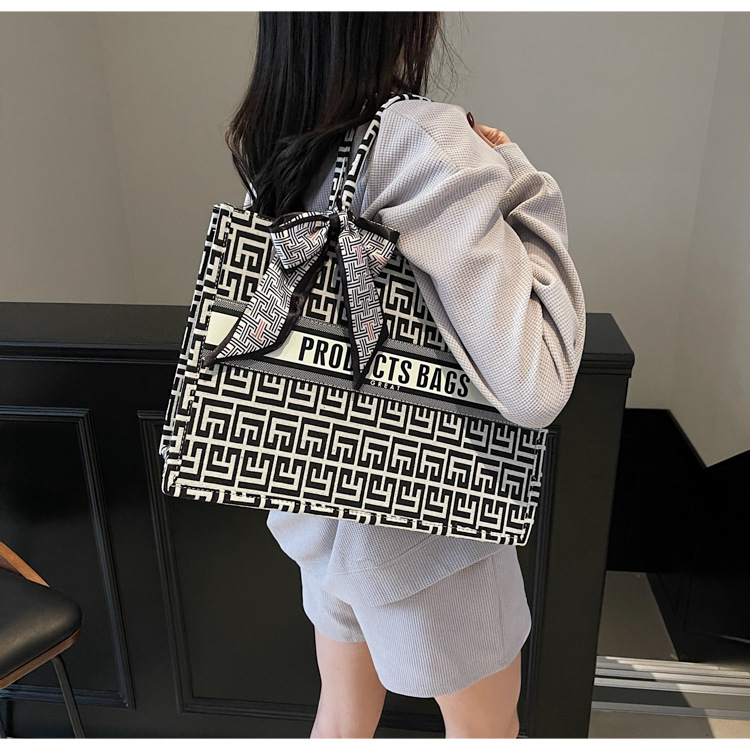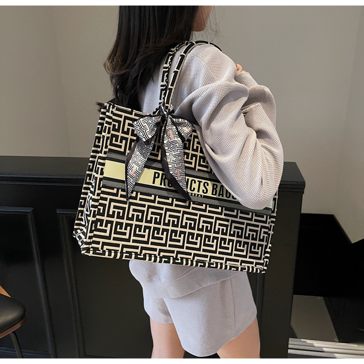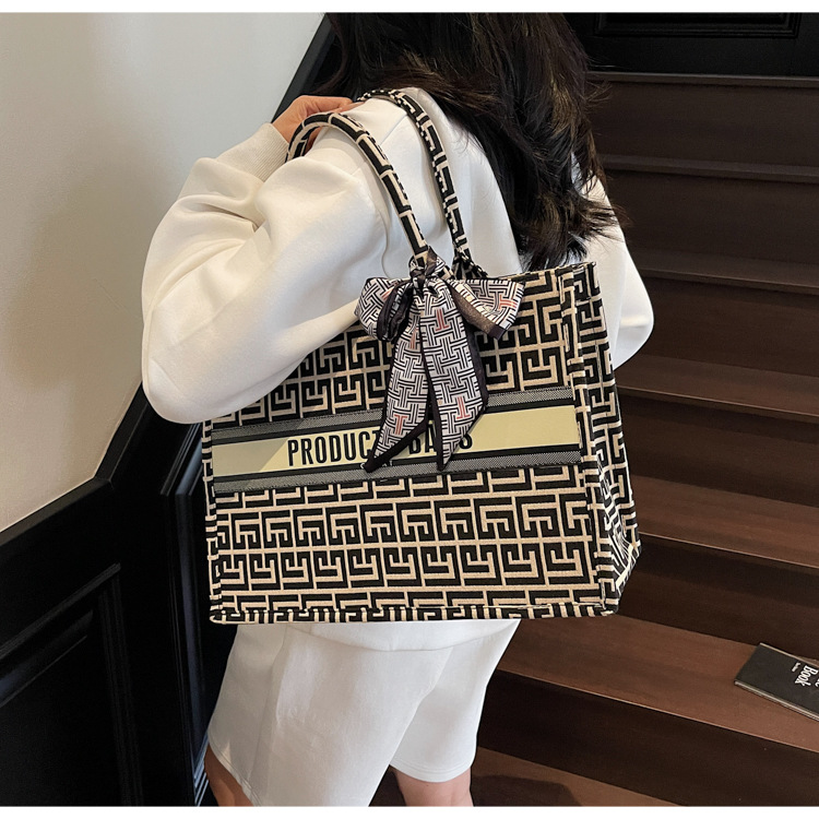 유럽과 미국의 여성용 대형 가방 새로운 유행 패션 캔버스 인쇄 대용량 어깨 겨드랑이 가방 다용도 휴대용 토트 백스토어 가기