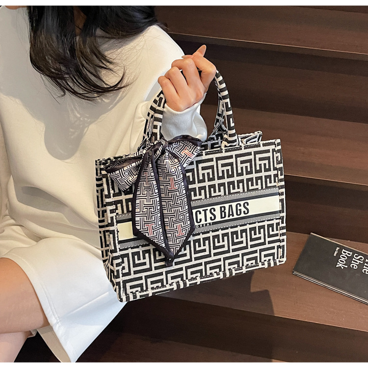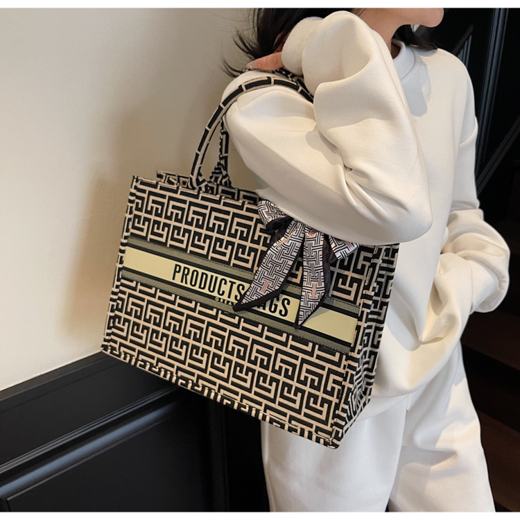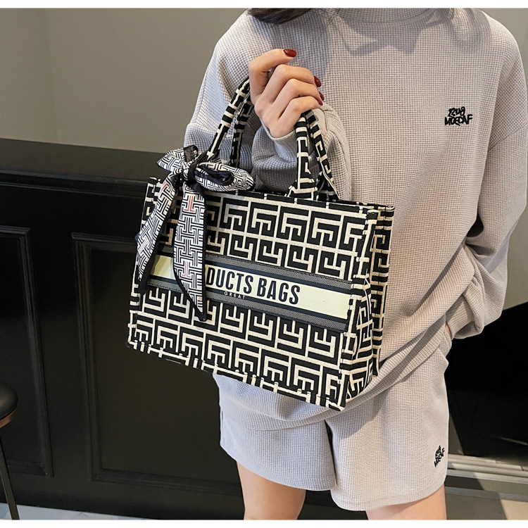 유럽과 미국의 여성용 대형 가방 새로운 유행 패션 캔버스 인쇄 대용량 어깨 겨드랑이 가방 다용도 휴대용 토트 백