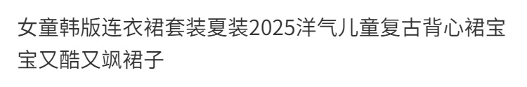 여자 한국 드레스 정장 여름 드레스 2025 서양식 어린이 복고풍 조끼 드레스 아기 멋진 스커트스토어 가기