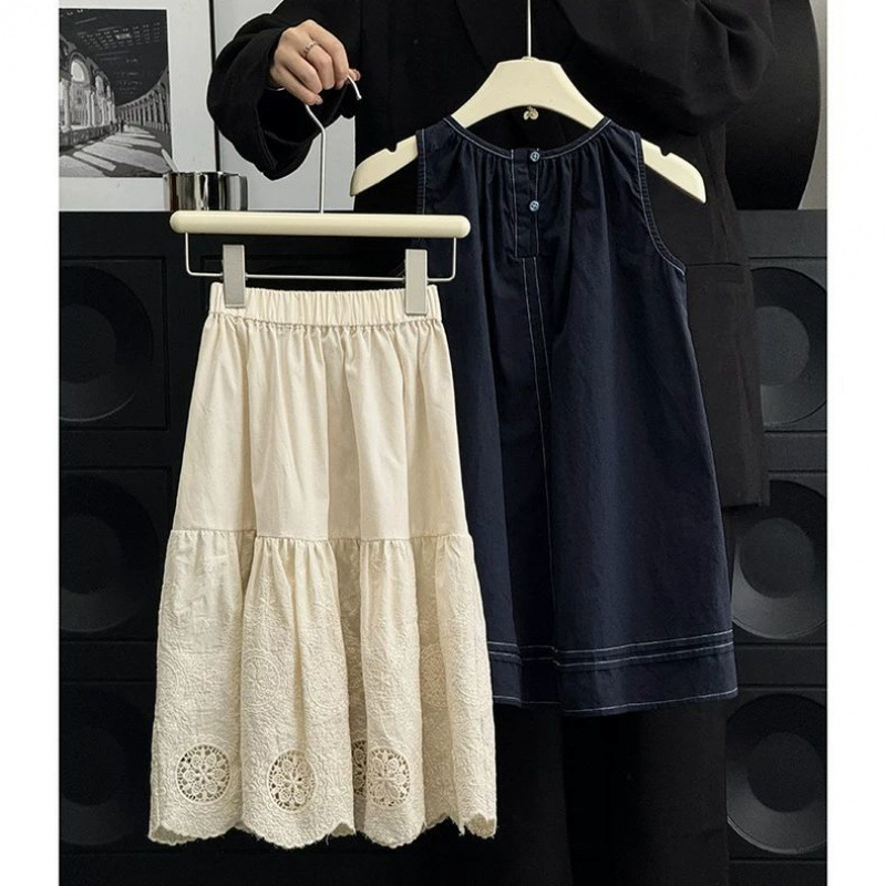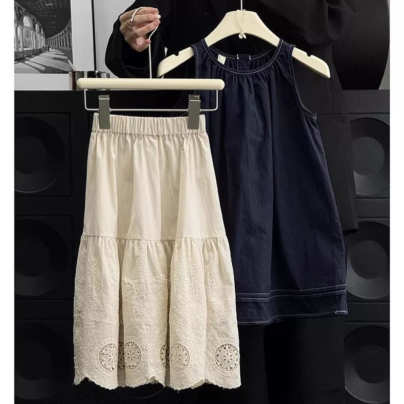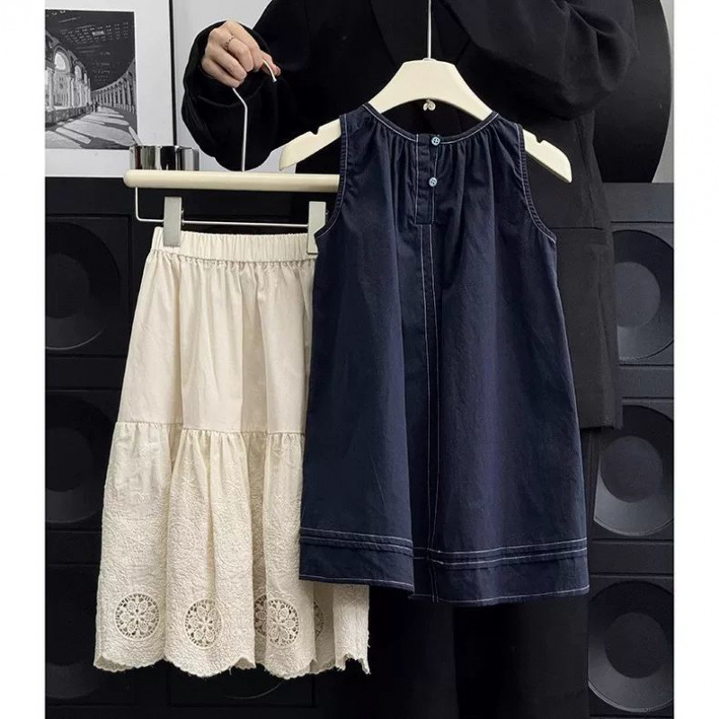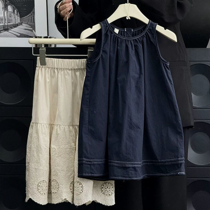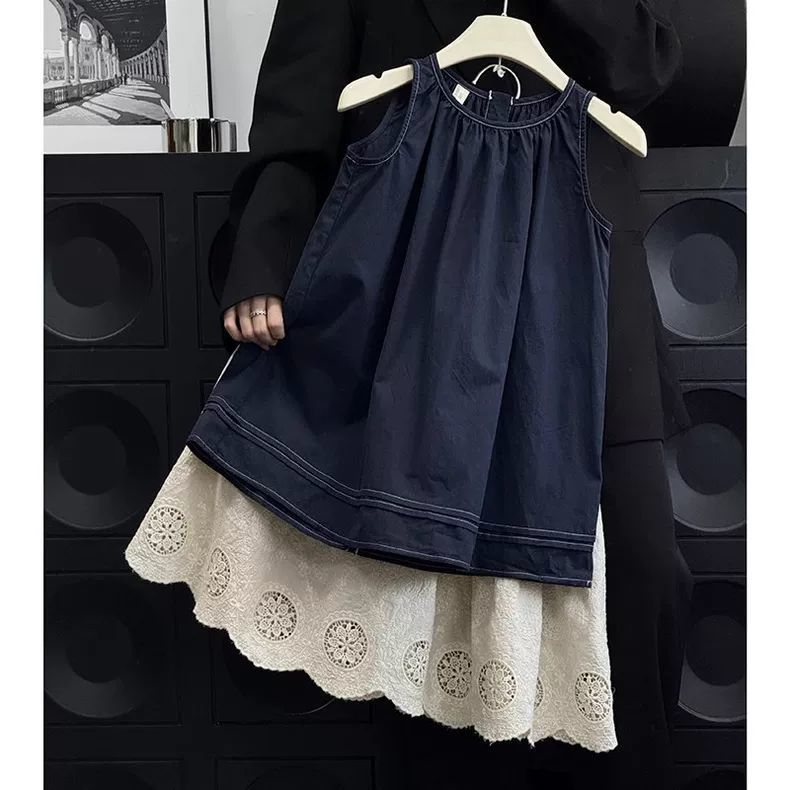 여자 한국 드레스 정장 여름 드레스 2025 서양식 어린이 복고풍 조끼 드레스 아기 멋진 스커트