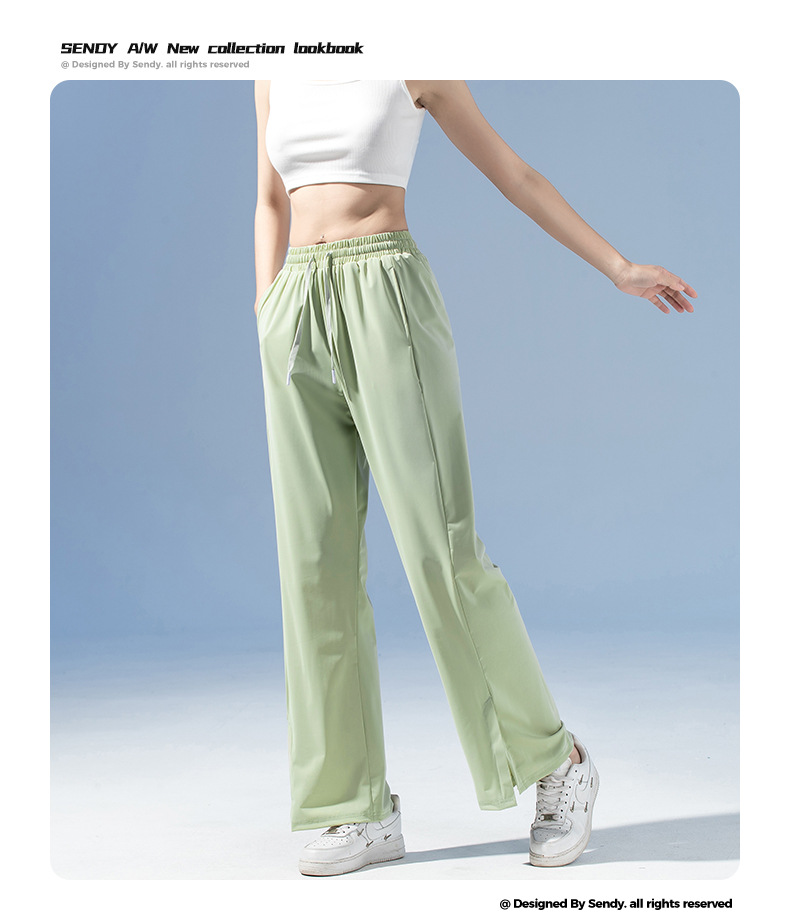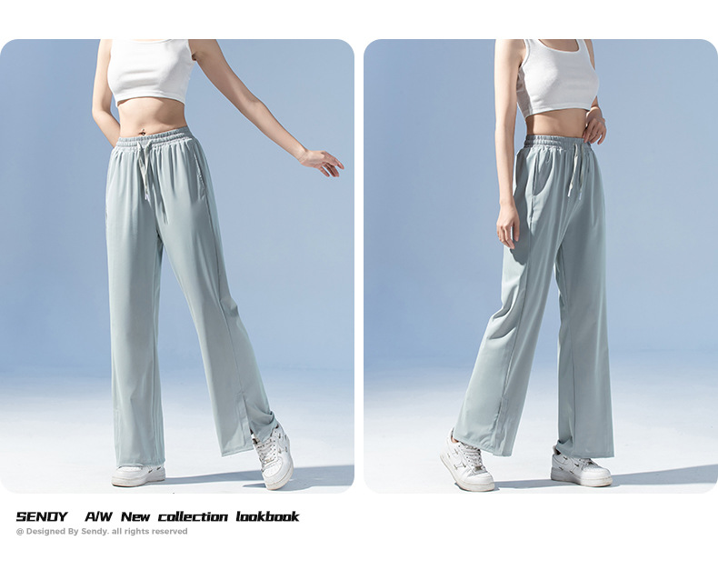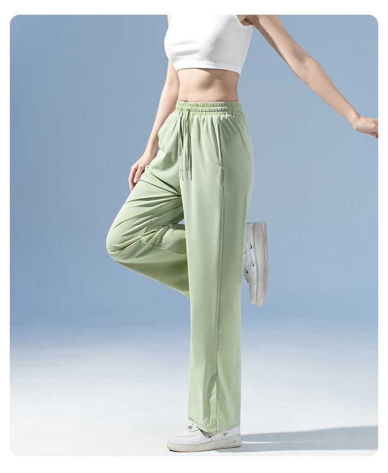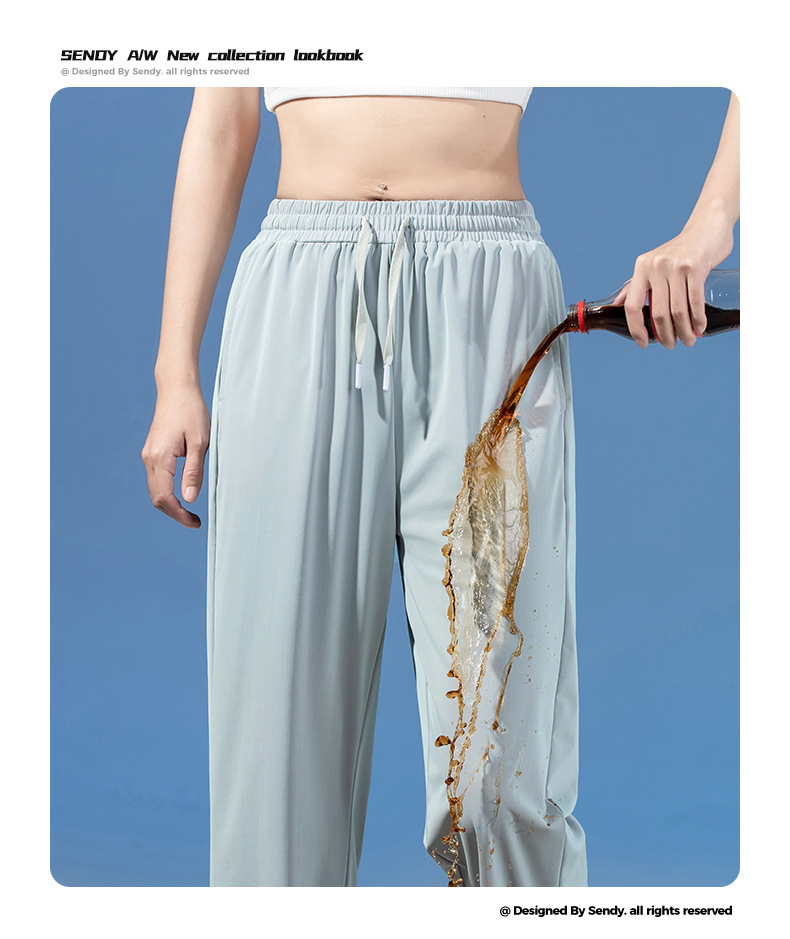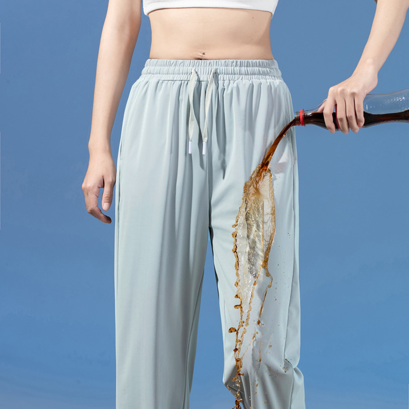 여름 3방수 여성용 아이스 실크 바지 캐주얼 스포츠 통기성 러닝 피트니스 루즈 트렌디 브랜드 고탄성 대형 여성용 바지스토어 가기