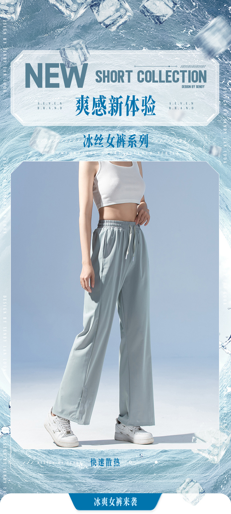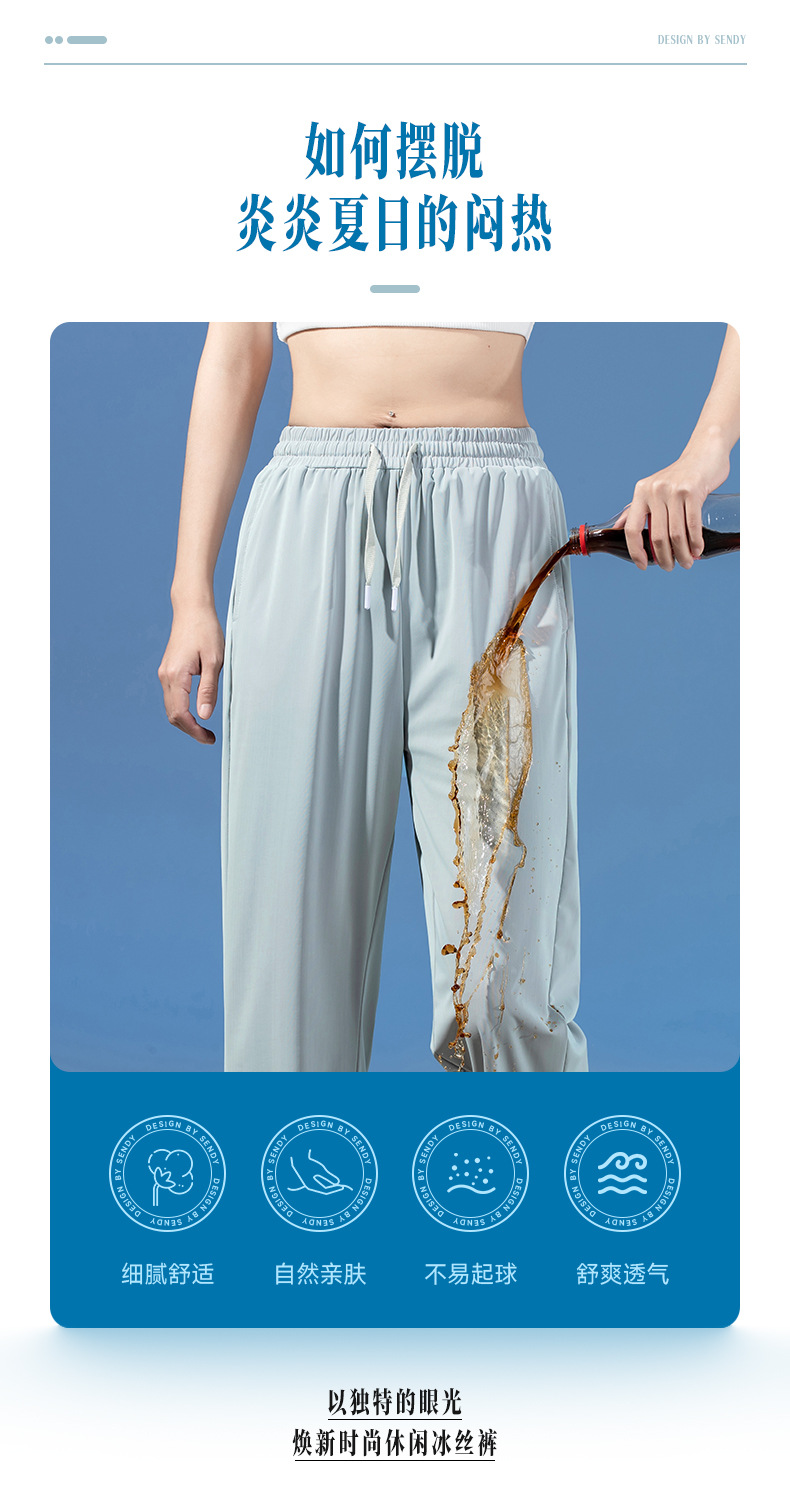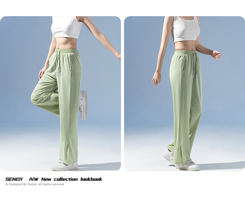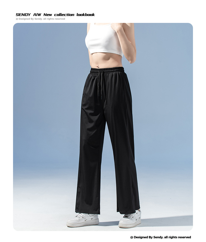 여름 3방수 여성용 아이스 실크 바지 캐주얼 스포츠 통기성 러닝 피트니스 루즈 트렌디 브랜드 고탄성 대형 여성용 바지스토어 가기