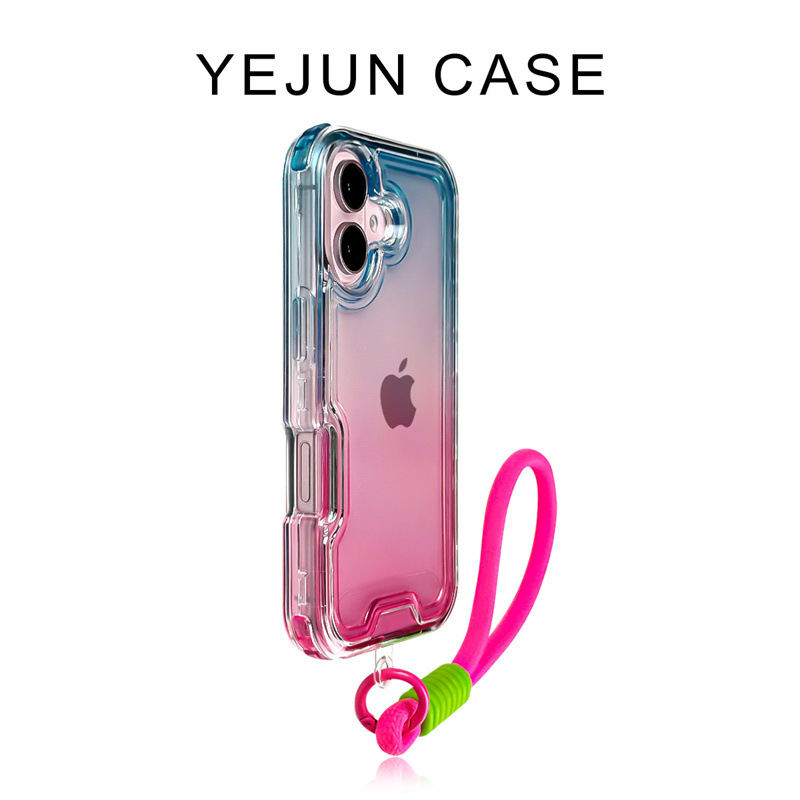 신형 애플 17프로맥스 휴대폰 케이스 이중 색상 그라데이션 아이폰16 초두꺼운 3-in-1 15프로 투명 14