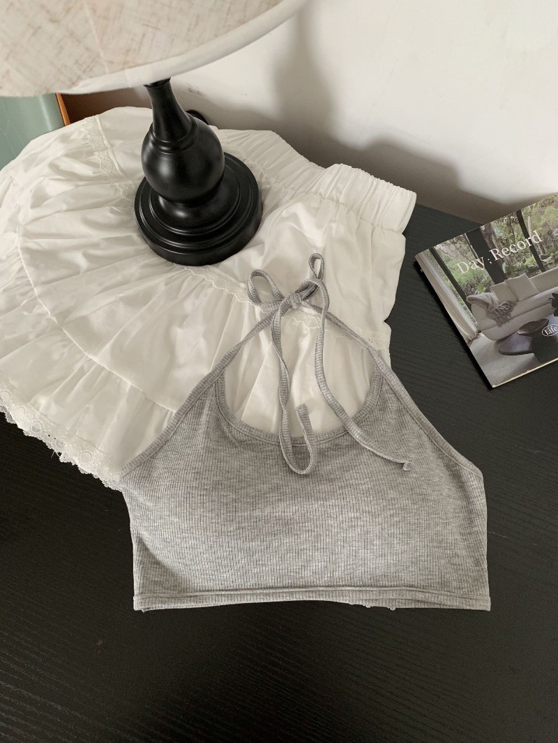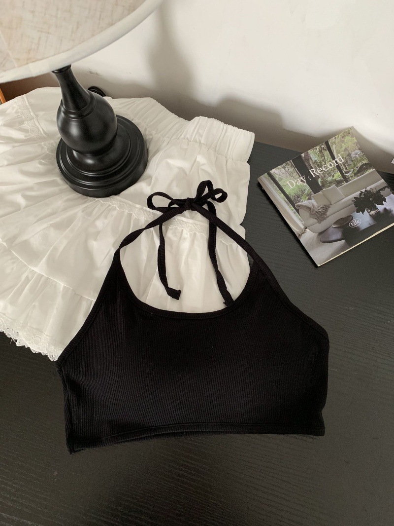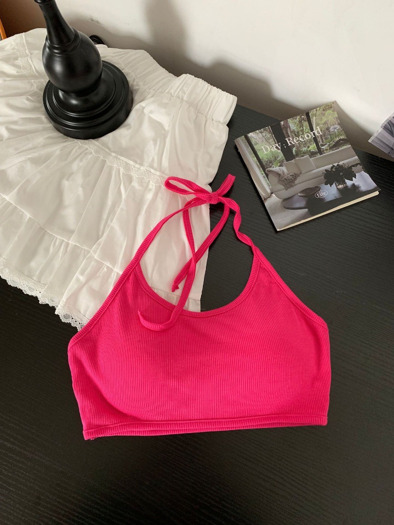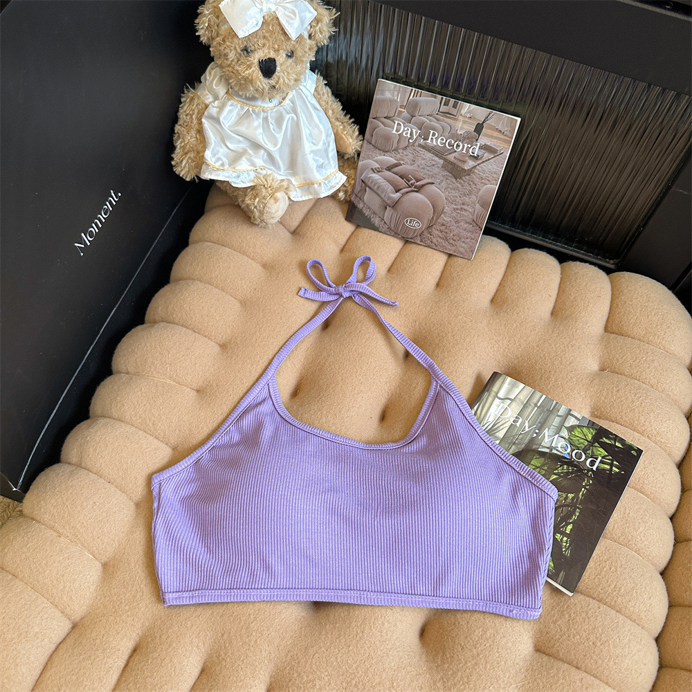 가슴 패드가 있는 여성용 핫걸 스몰 서스펜더 홀터넥 조끼 2024 새로운 섹시한 리조트 스타일 달콤하고 매운 바닥 탑