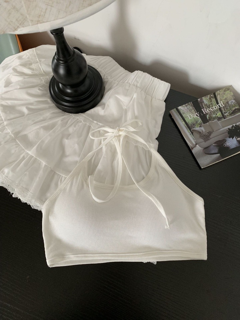 가슴 패드가 있는 여성용 핫걸 스몰 서스펜더 홀터넥 조끼 2024 새로운 섹시한 리조트 스타일 달콤하고 매운 바닥 탑스토어 가기