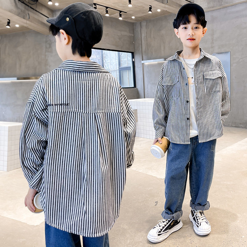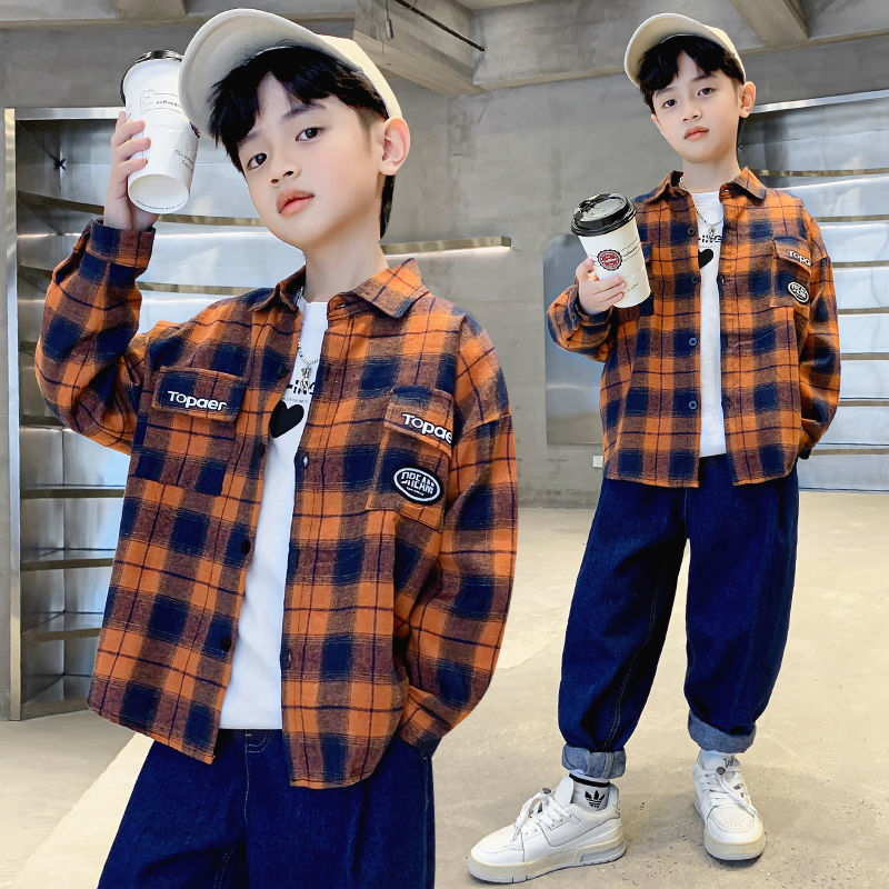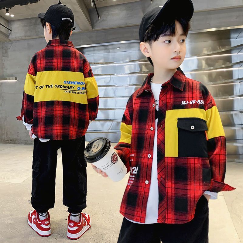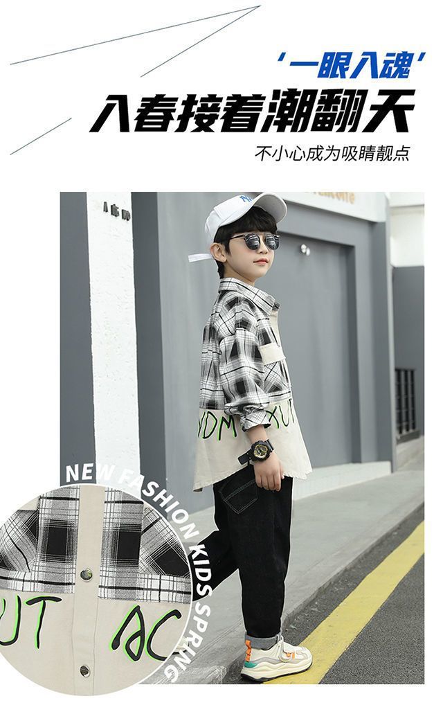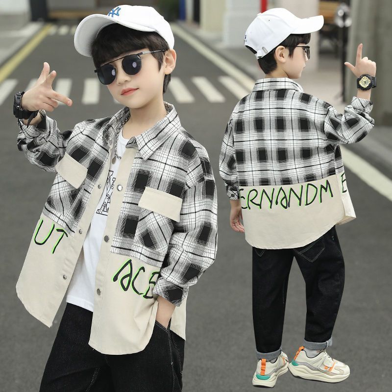 소년 셔츠 2025 봄 어린이 긴팔 중대형 어린이 격자 무늬 잘 생긴 봄, 가을 면화 셔츠 재킷 소년 유행스토어 가기