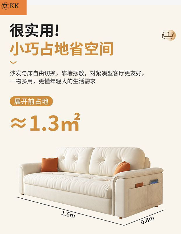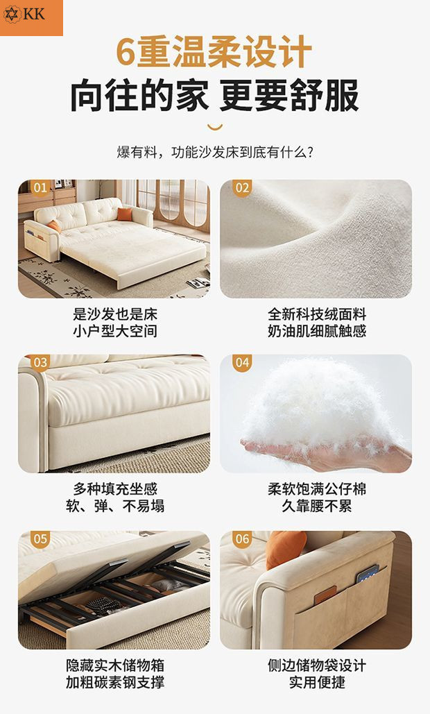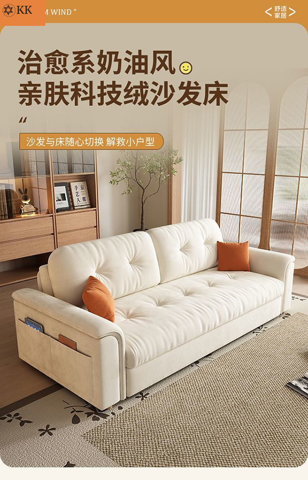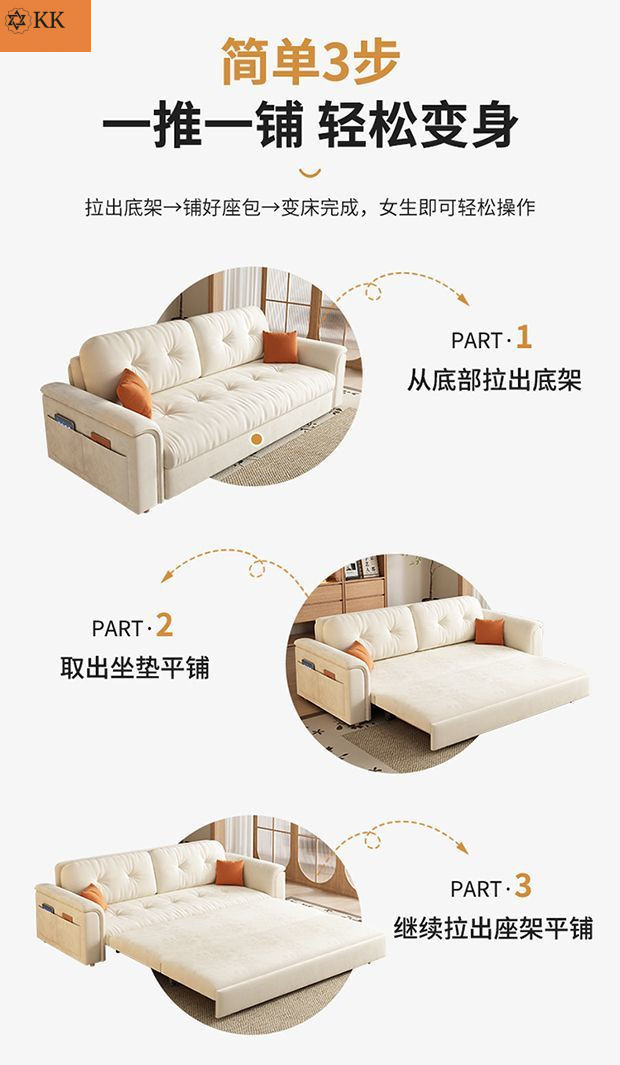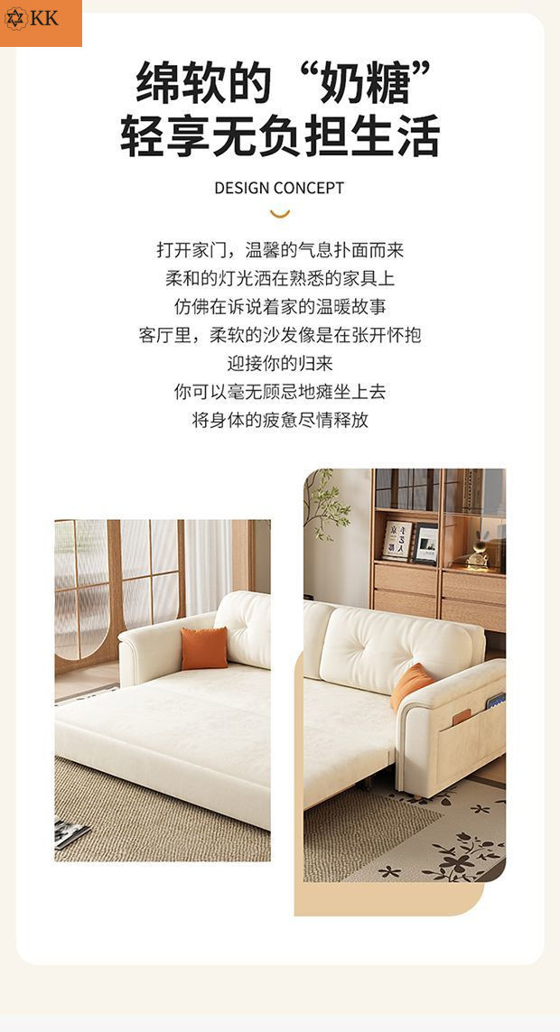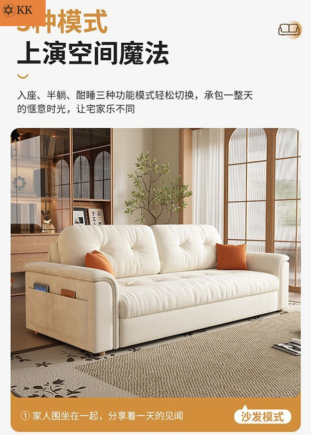 새로운 다기능 이중 목적 소파 베드, 작은 아파트 거실, 일체형 직선 접이식 크림 스타일 인기 소파스토어 가기