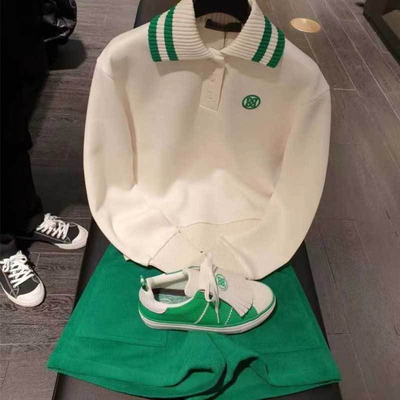 봄과 가을 한국 골프 의류 여성 라펠 하프 버튼 솔리드 컬러 자수 로고 야외 스포츠 및 레저 골프웨어스토어 가기