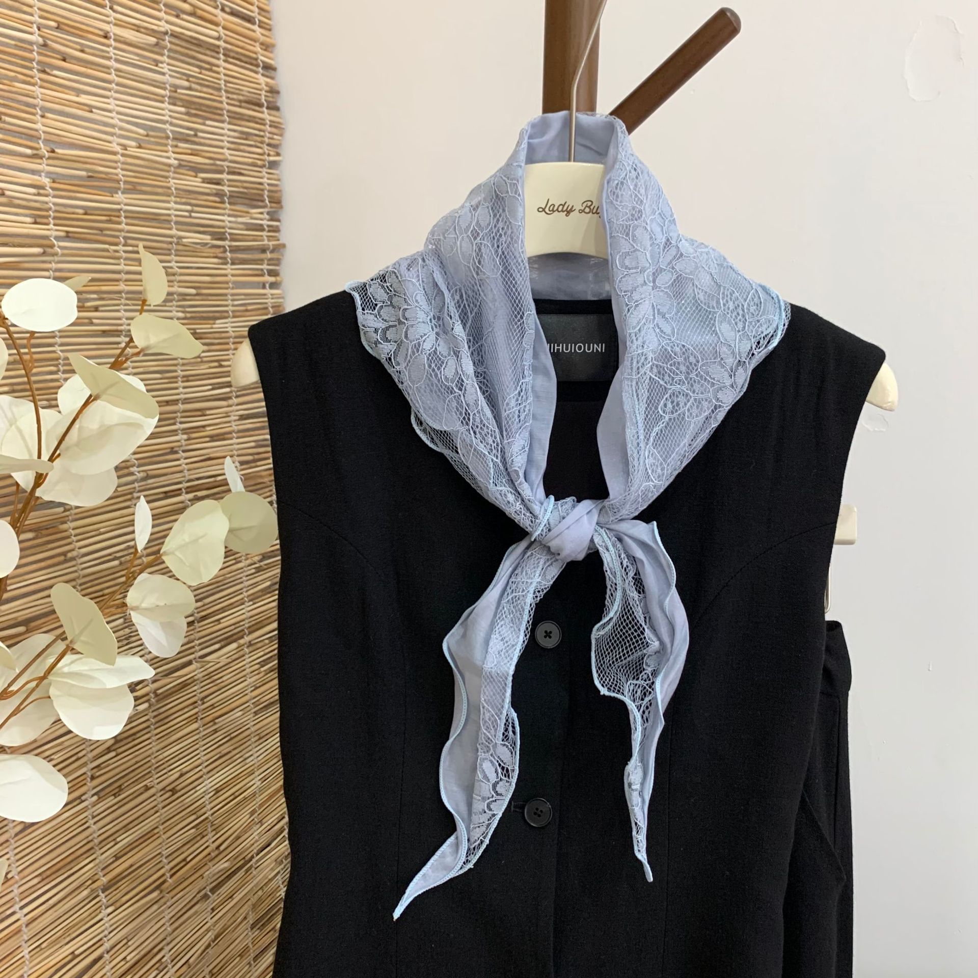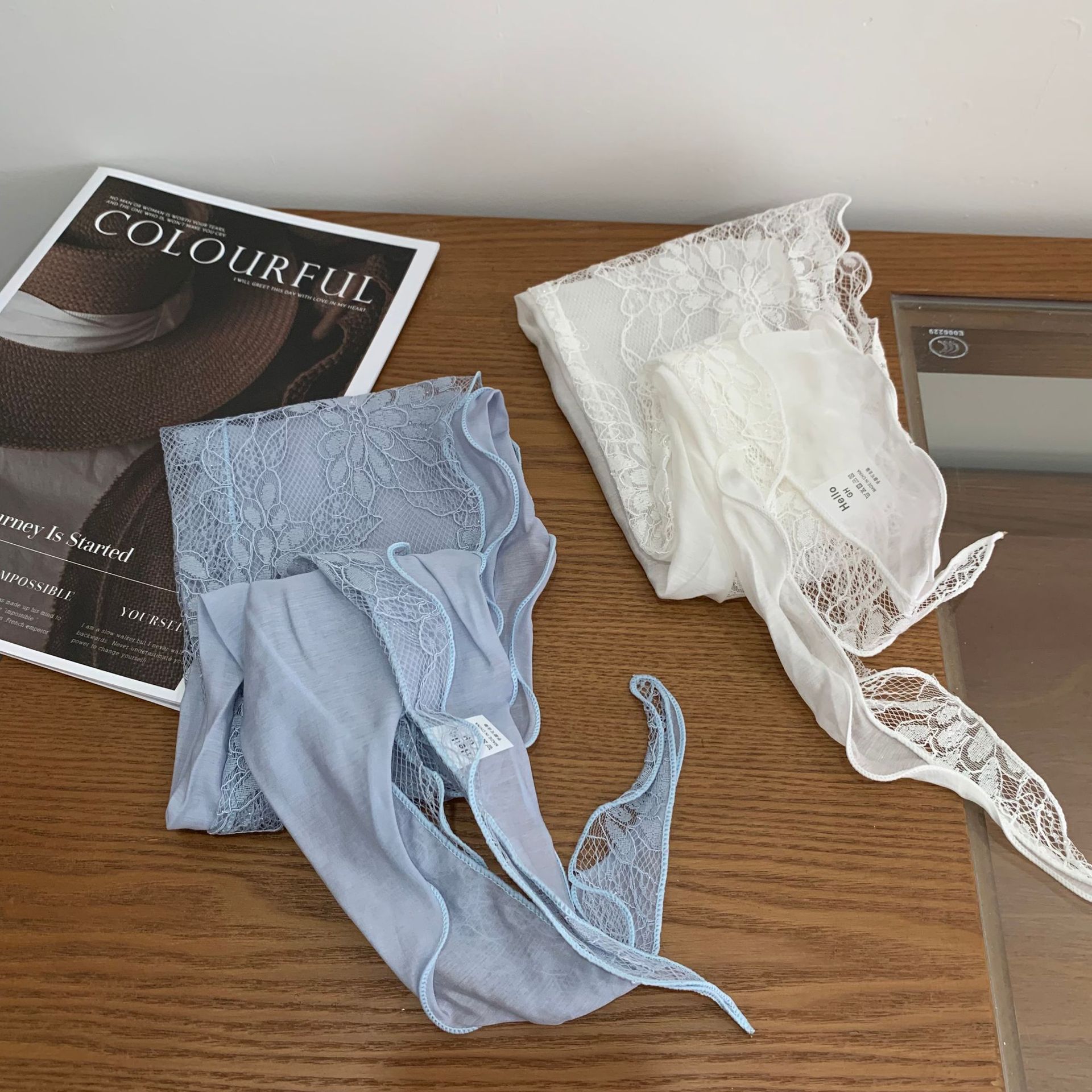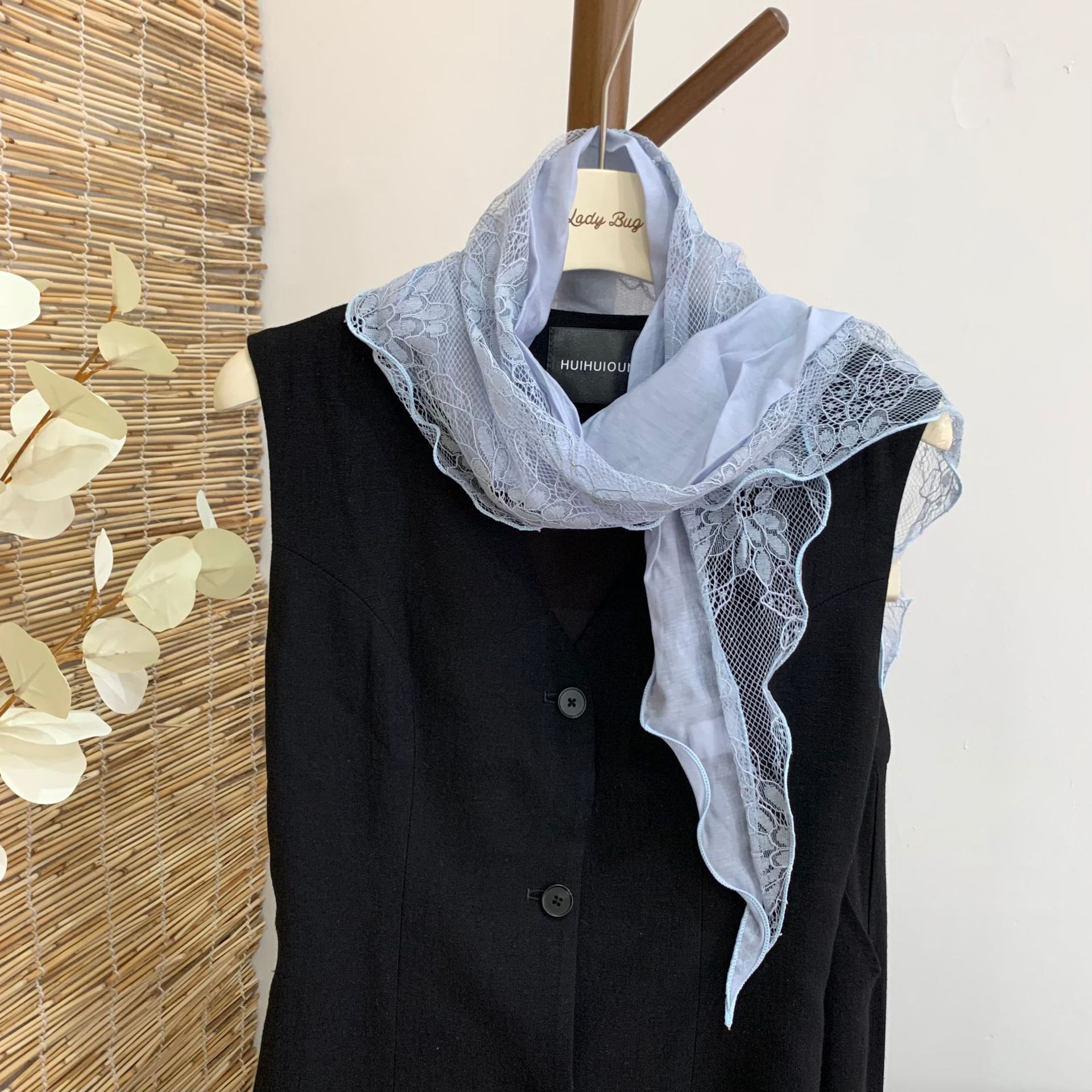 블루 러브 레이스 스카프 여성 여름 바오터우 삼각 스카프 귀 긴 스카프 사진 얇은 스카프
