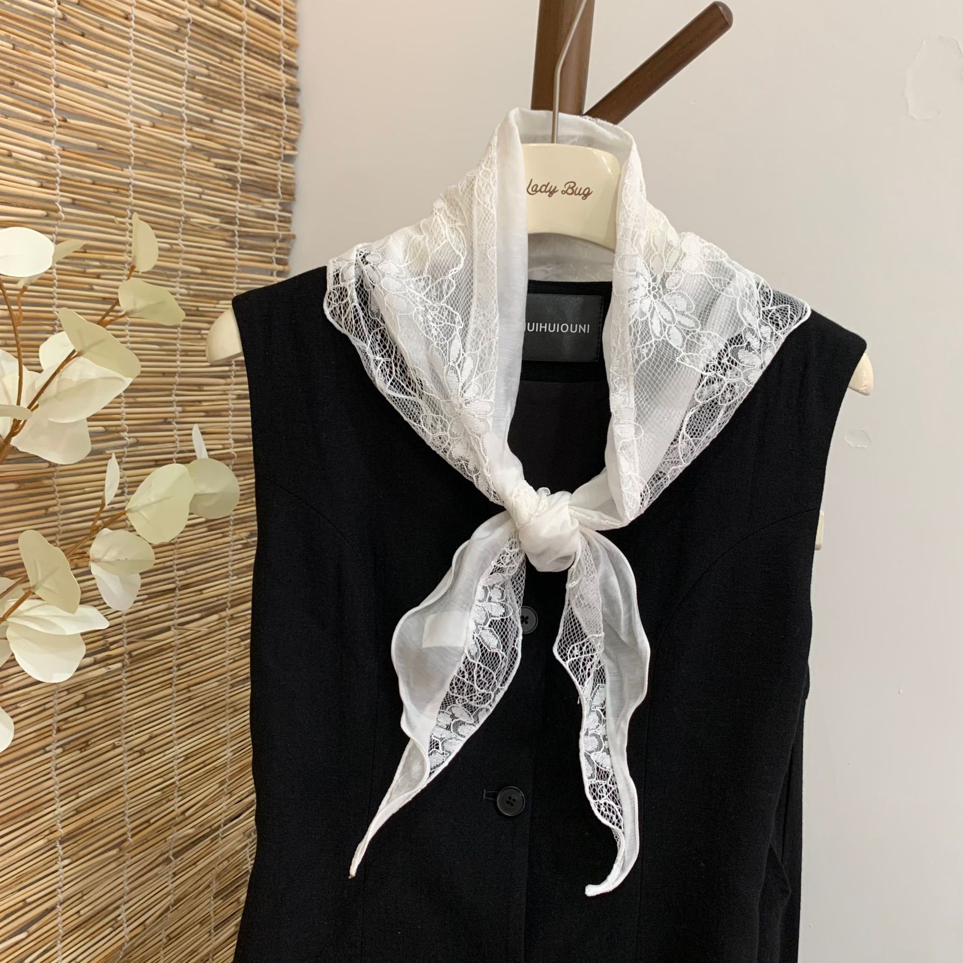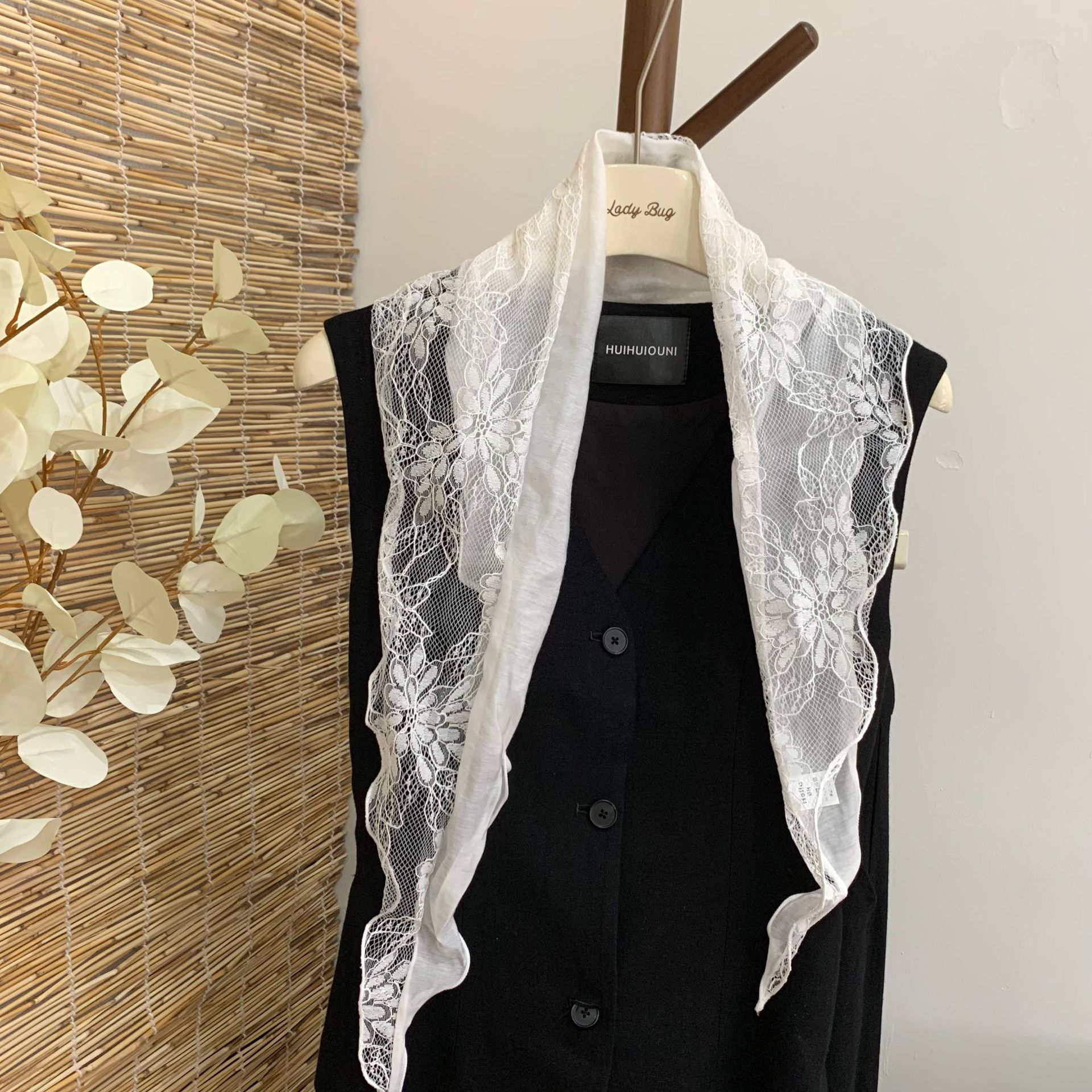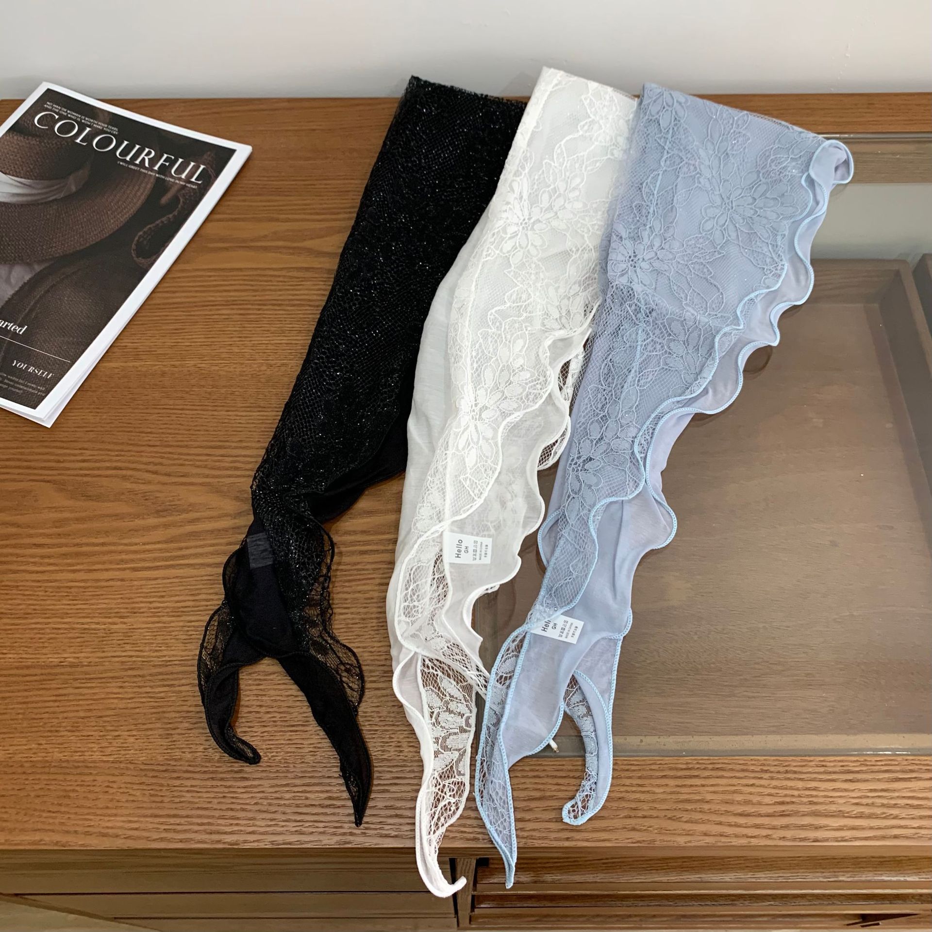 블루 러브 레이스 스카프 여성 여름 바오터우 삼각 스카프 귀 긴 스카프 사진 얇은 스카프