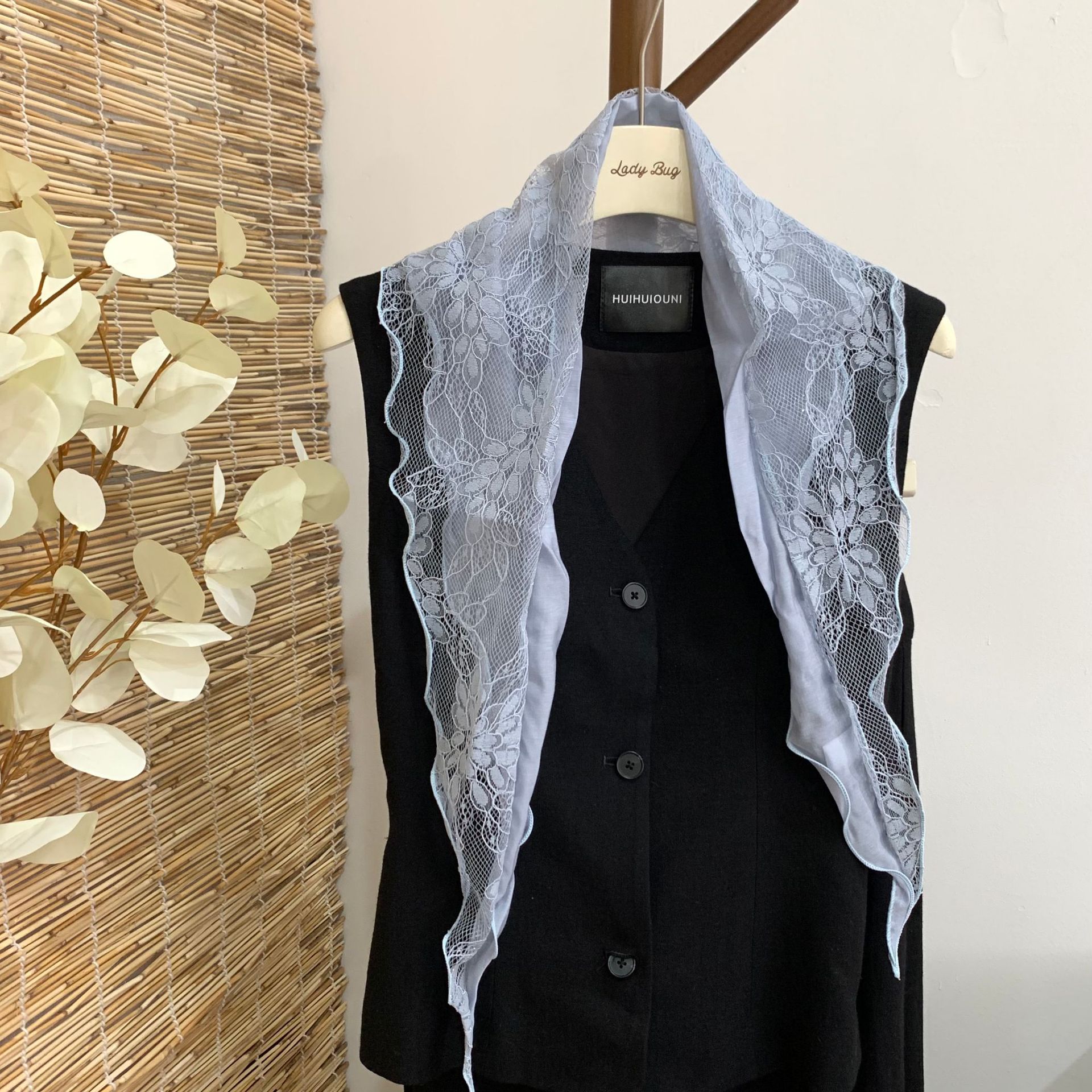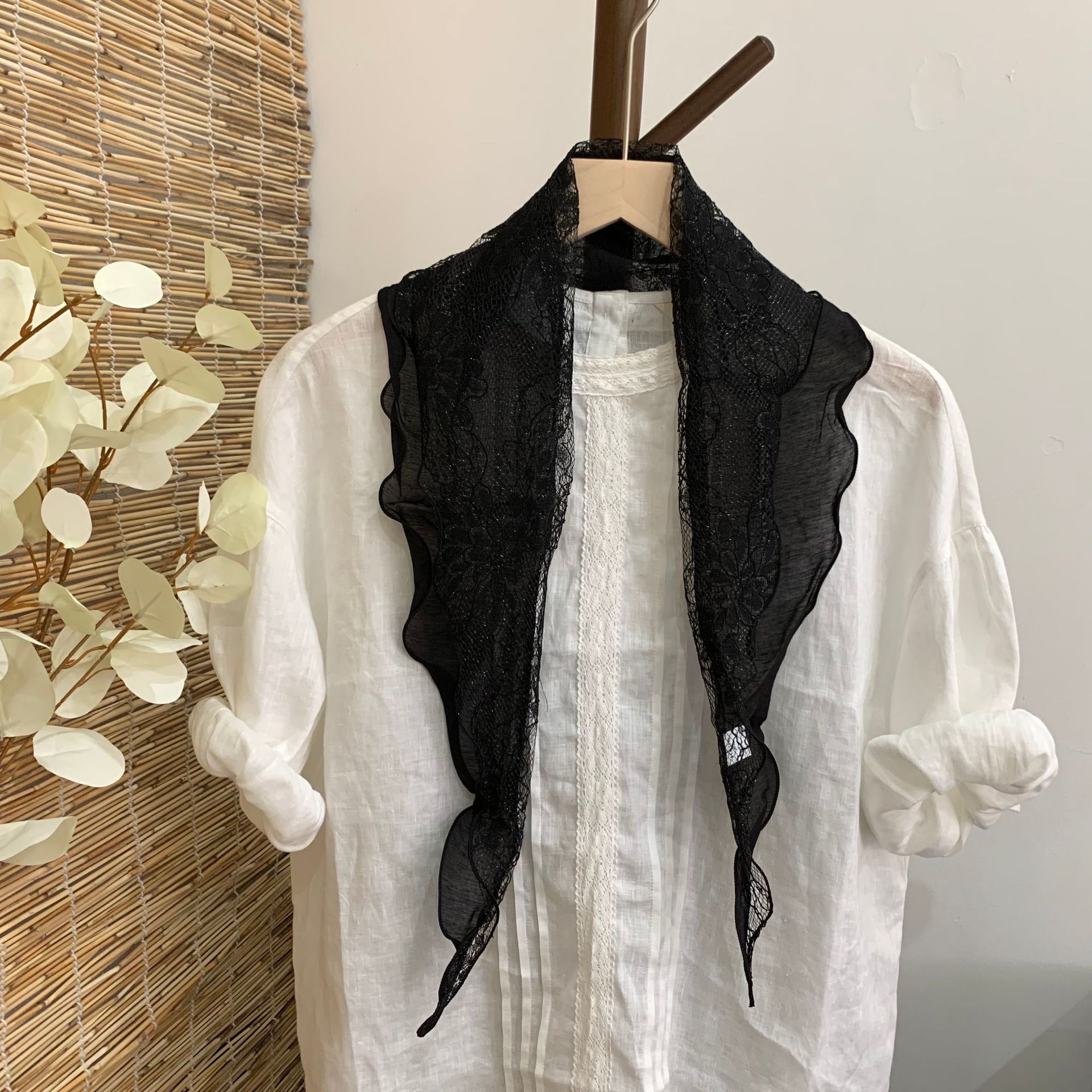 블루 러브 레이스 스카프 여성 여름 바오터우 삼각 스카프 귀 긴 스카프 사진 얇은 스카프스토어 가기