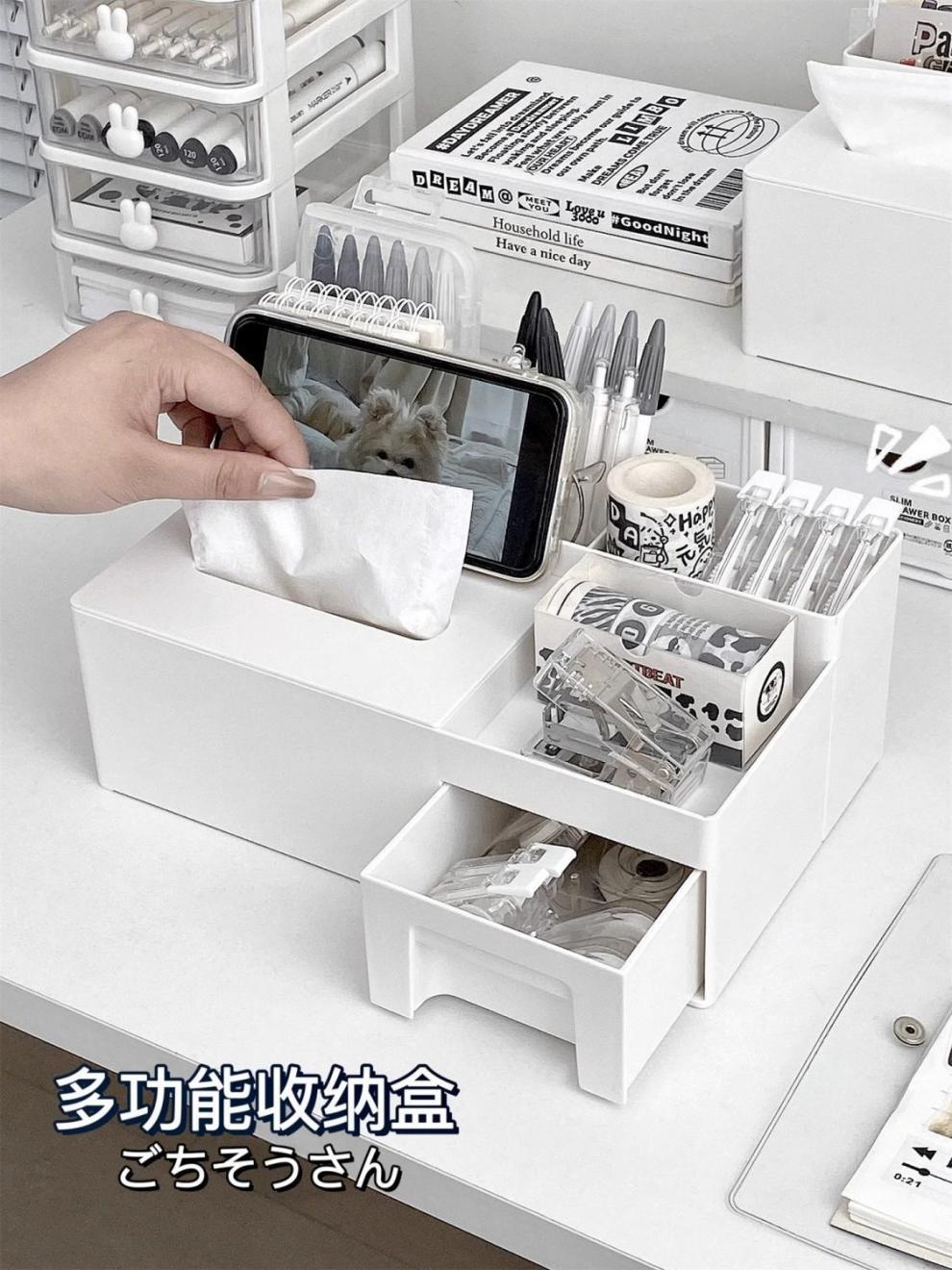 사무실 다기능 책상 정리 랙 펜 홀더 티슈 박스 데스크탑 보관 상자 거실 커피 테이블 종이 상자스토어 가기