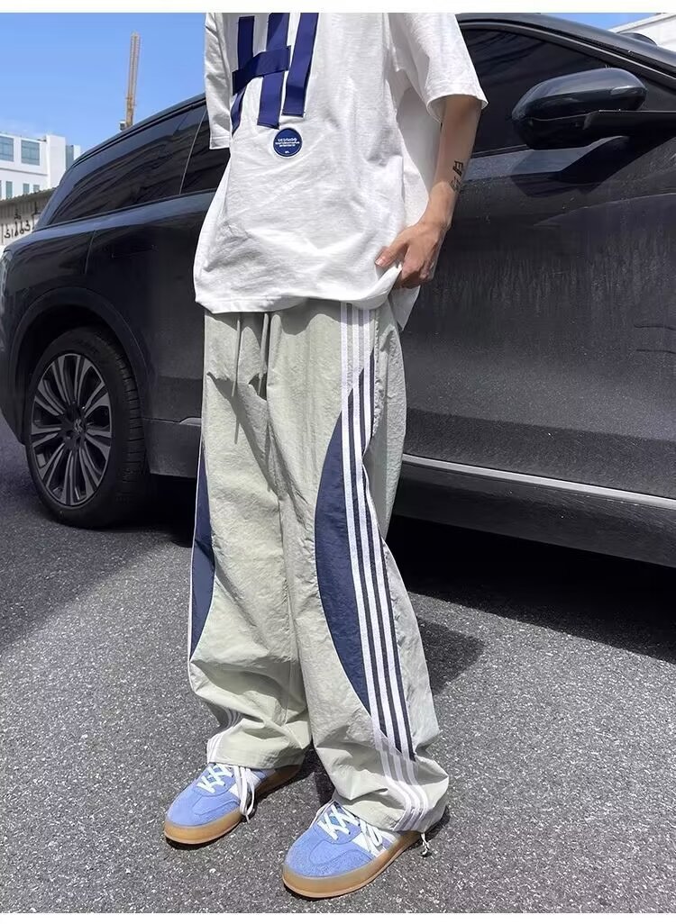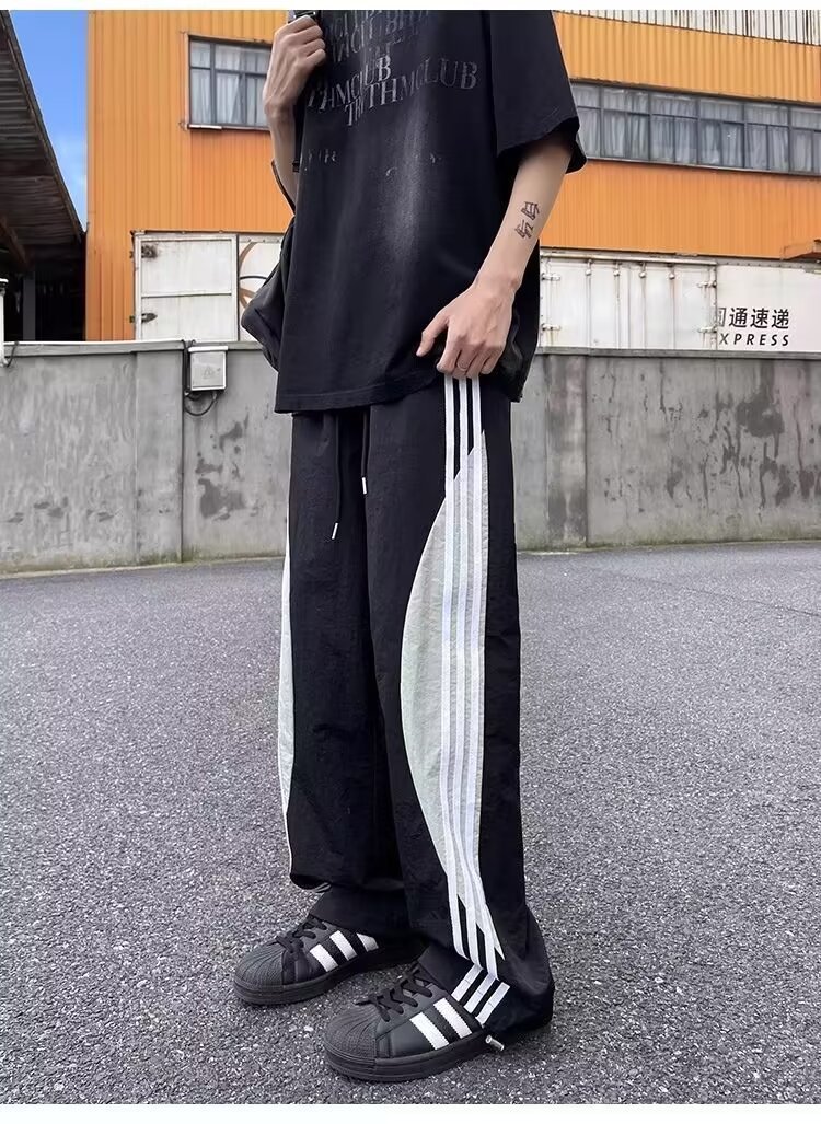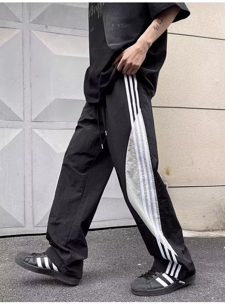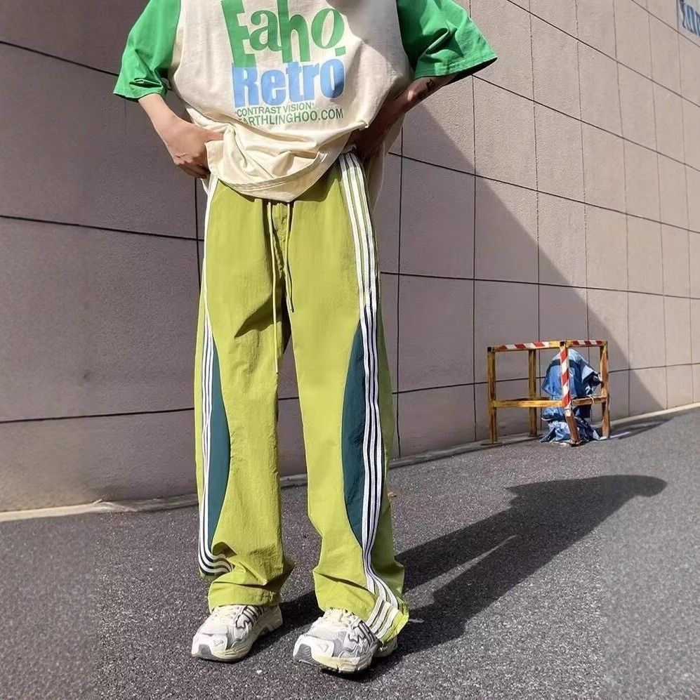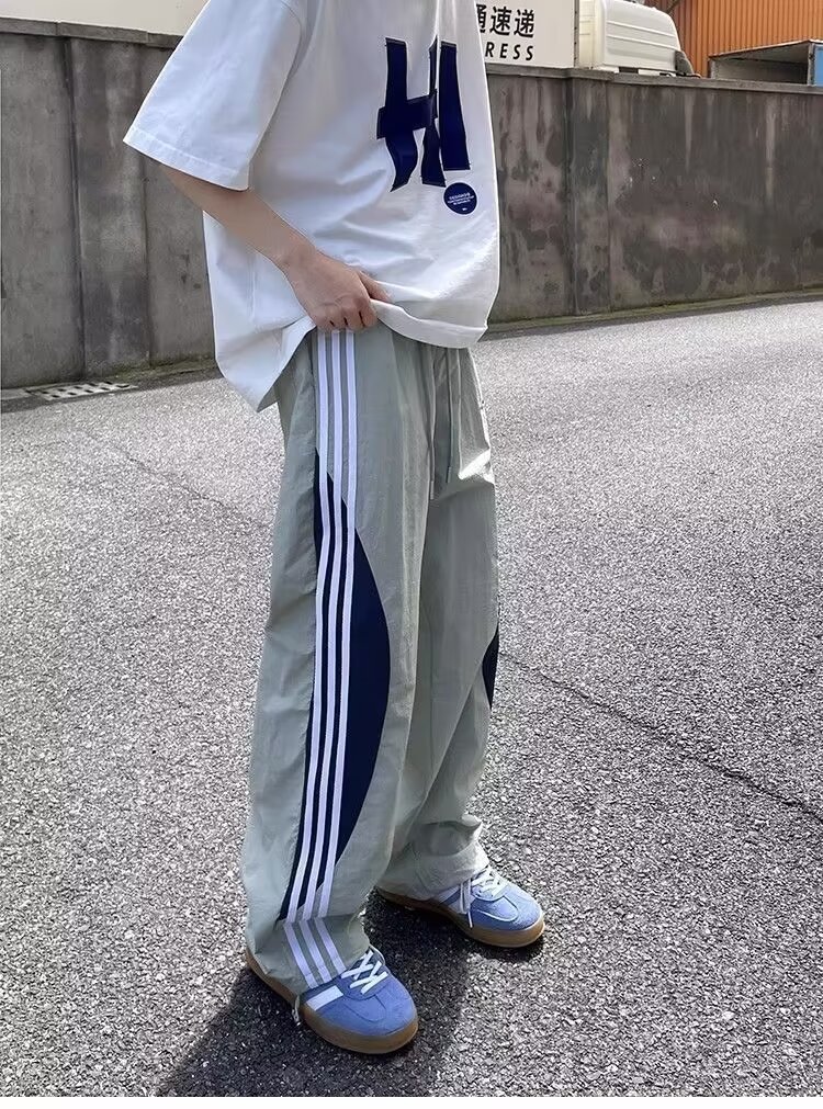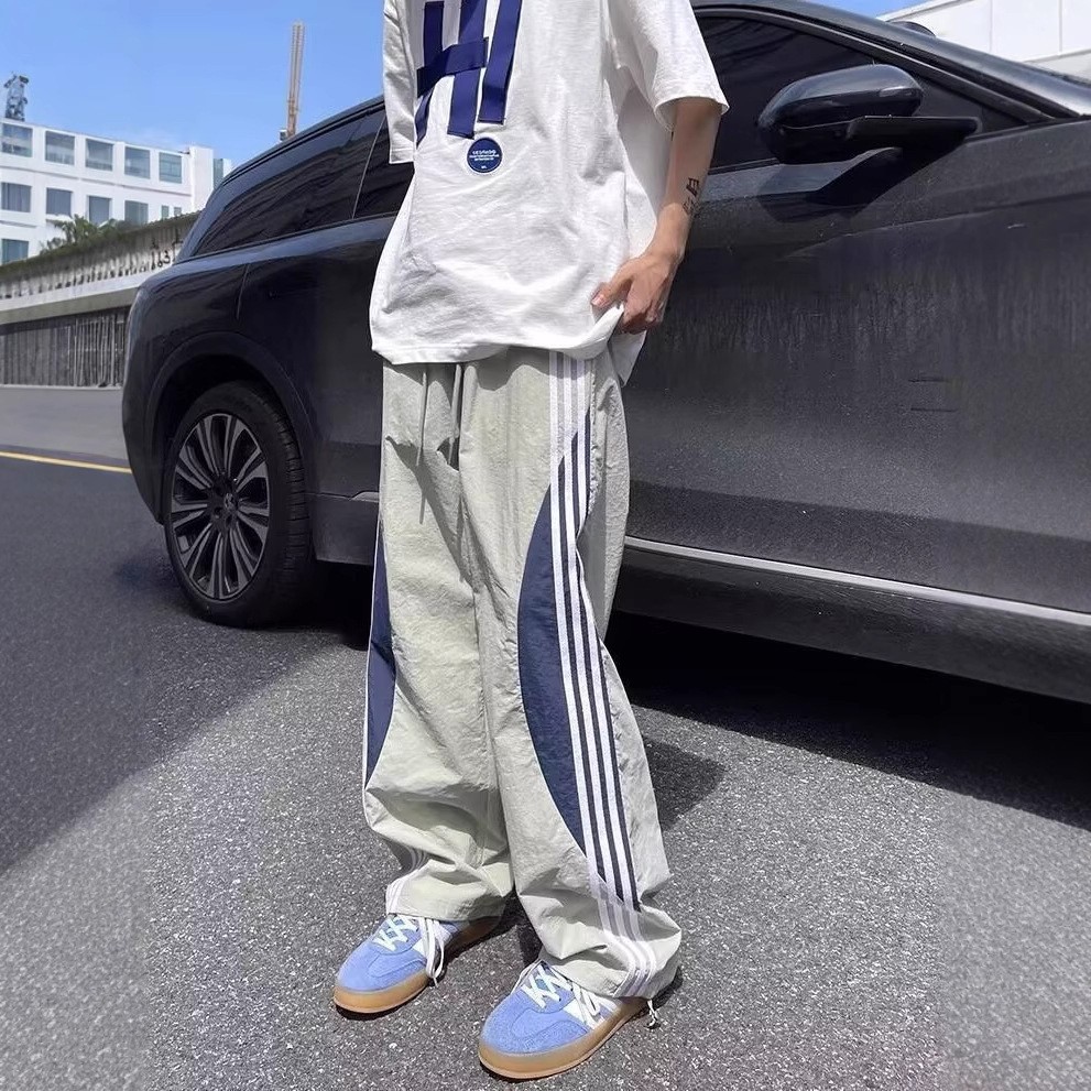 아메리칸 도파민 스트라이프 캐주얼 팬츠 남성 트렌디 3스트라이프 루즈 스트레이트 하이 스트리트 핸섬 스포츠 낙하산 바지