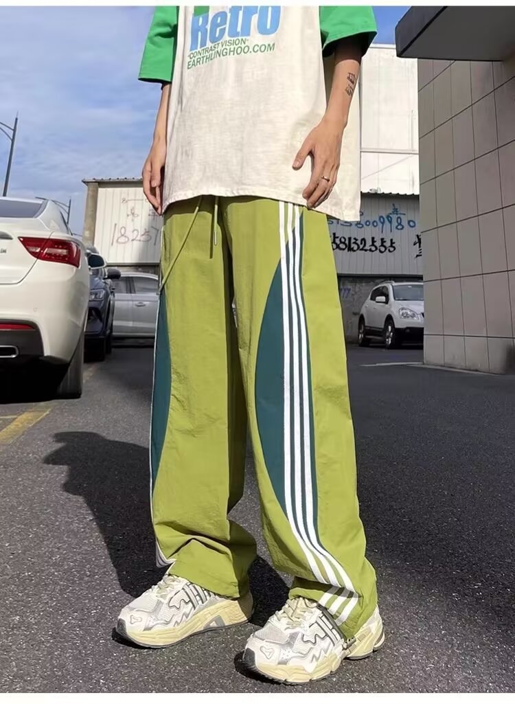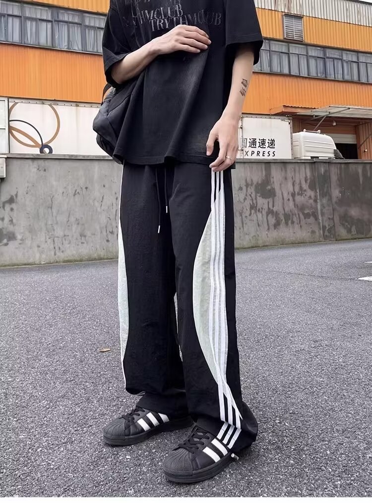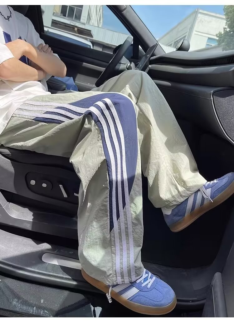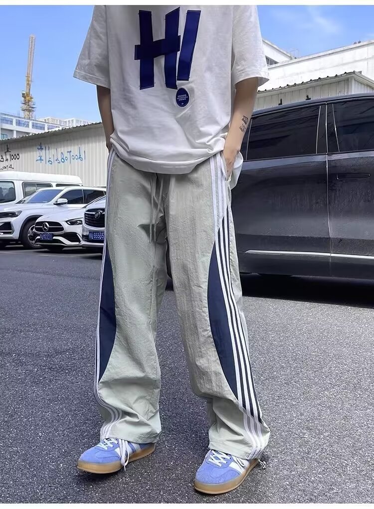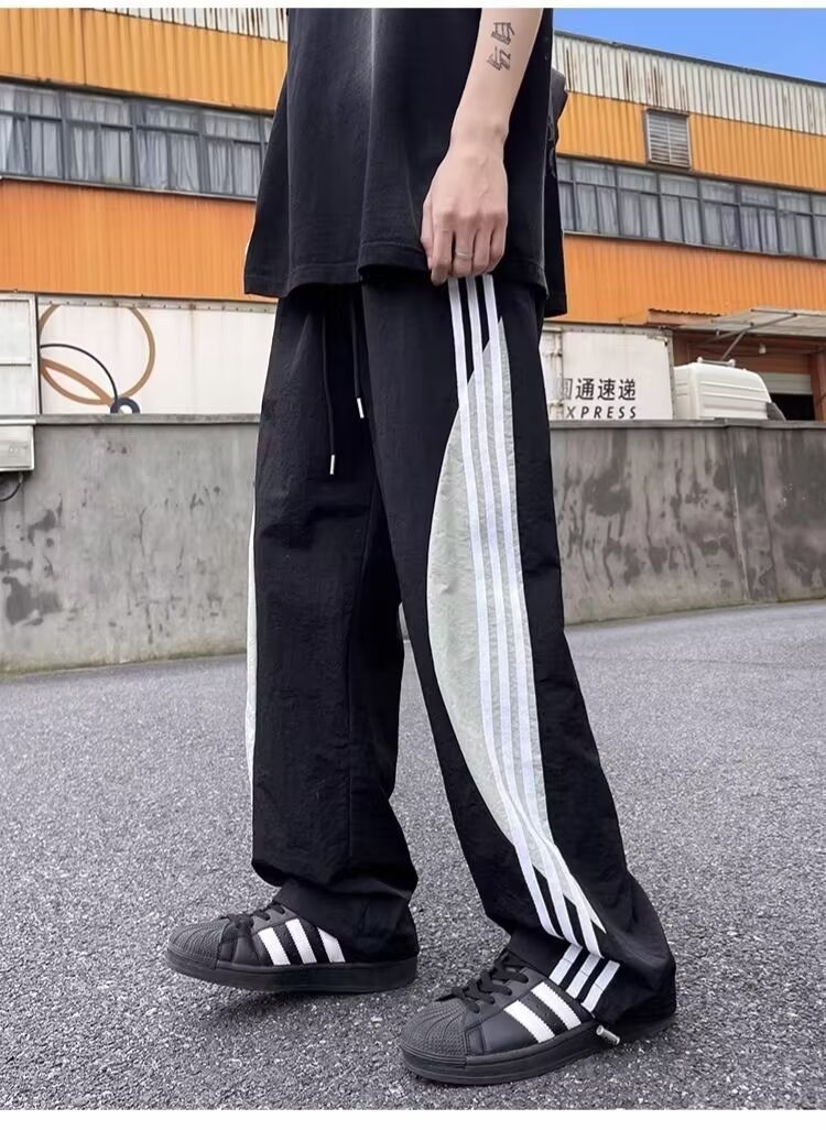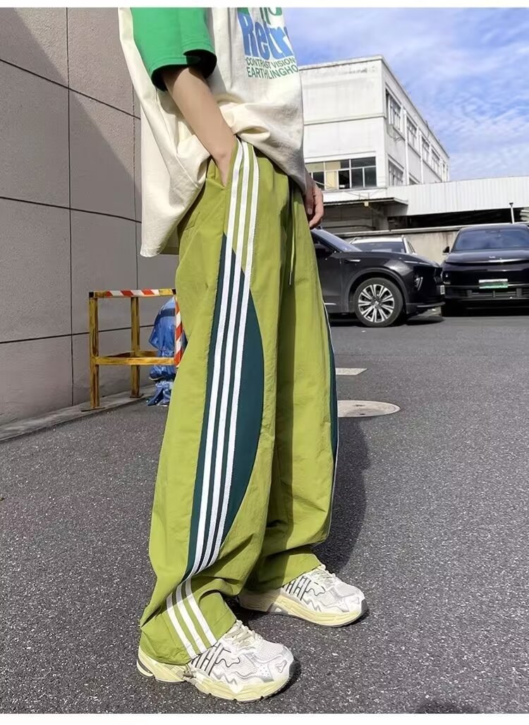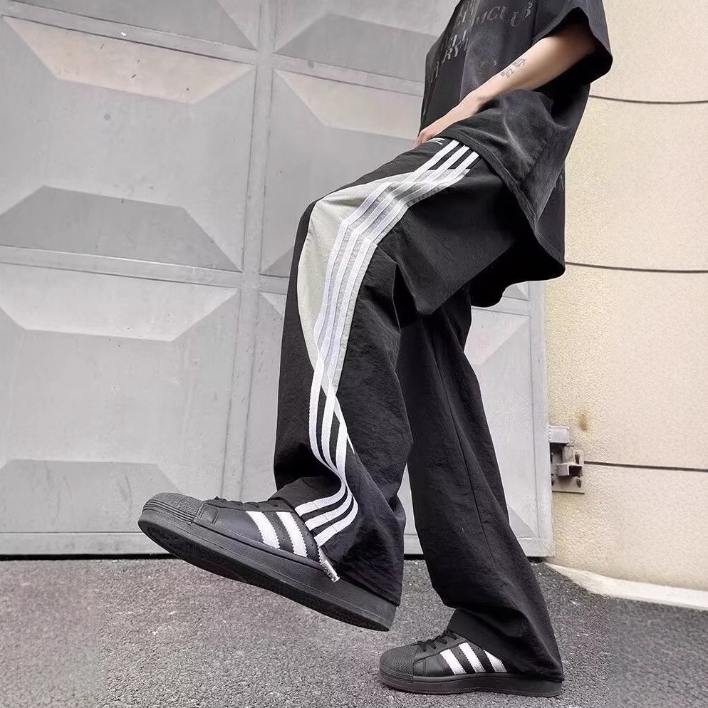 아메리칸 도파민 스트라이프 캐주얼 팬츠 남성 트렌디 3스트라이프 루즈 스트레이트 하이 스트리트 핸섬 스포츠 낙하산 바지